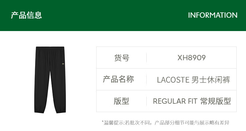 LACOSTE French crocodile men's 25 spring and summer new lightweight and comfortable sports trousers | XH8909 HD9/blue gray L 5