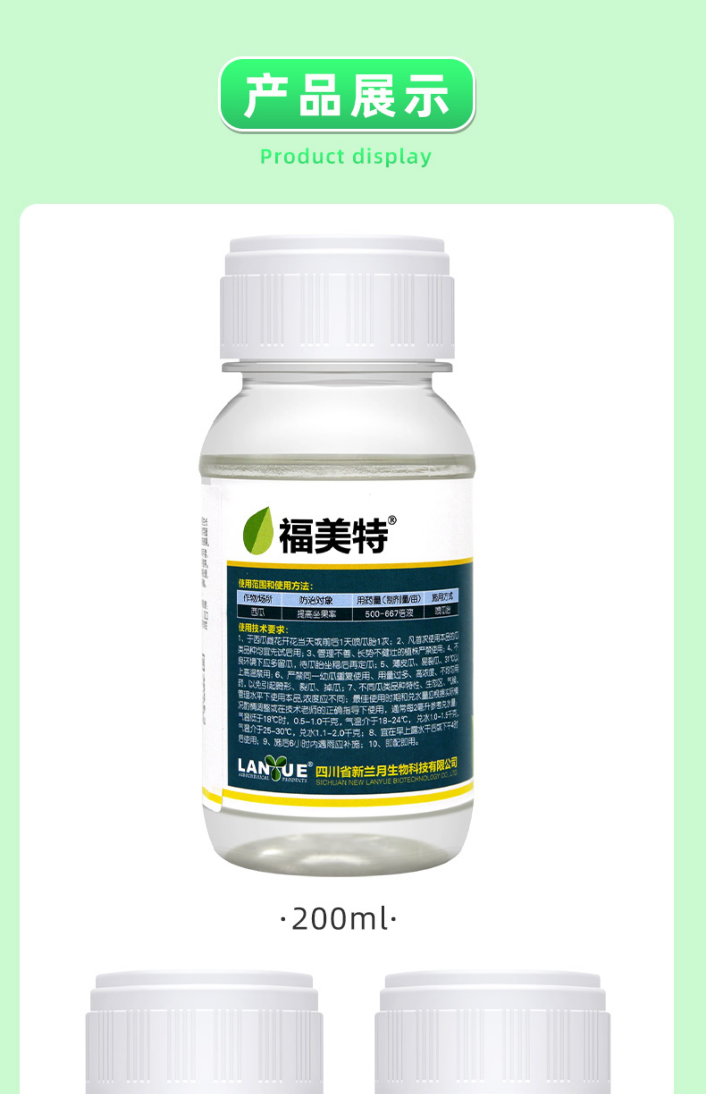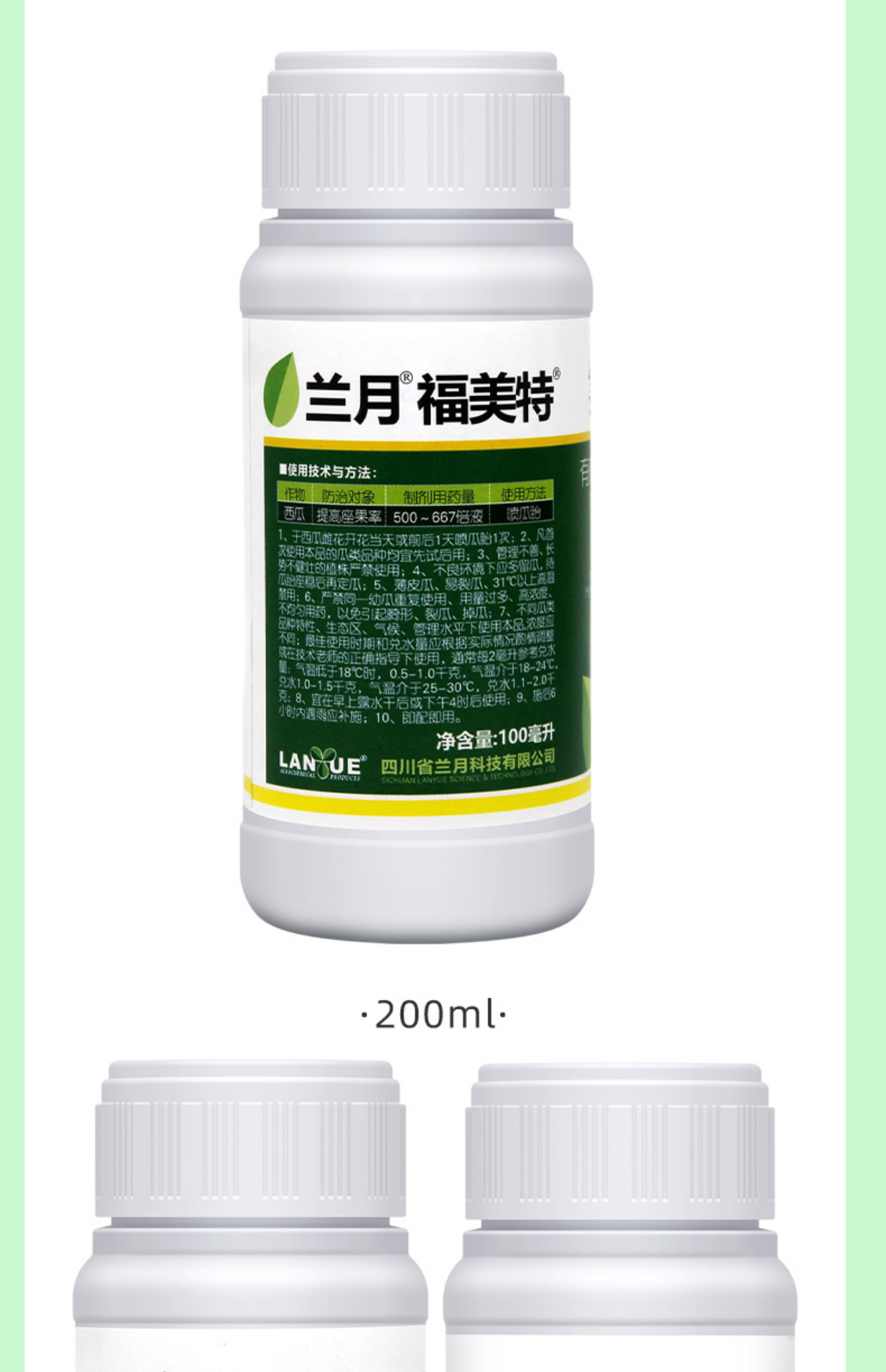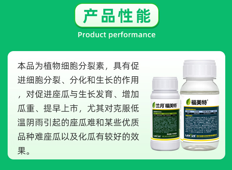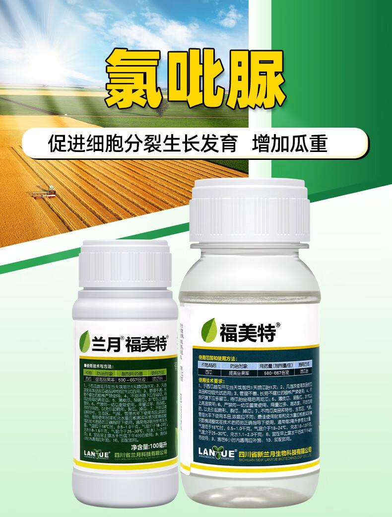 Lanyue Fumet 0.1% chlorfenuron is used to spot flowers and pollinate to increase fruit setting rate. Watermelon expansion hormone regulator pesticide 50ml 0.1% chlorfenuron