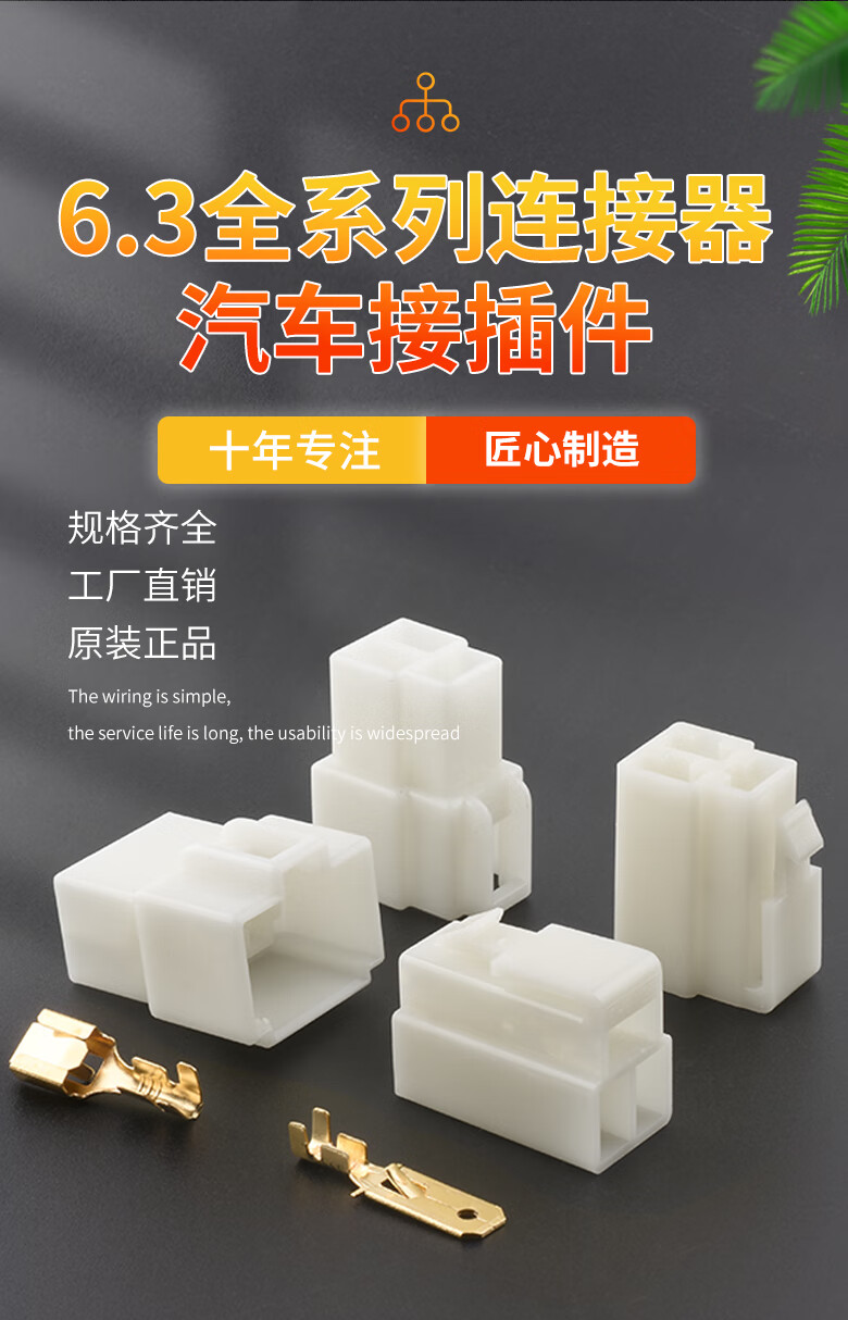 Automotive connector 6.3MM connector 1P2P3P4P high current male and female plug wire connector electric vehicle 6.3 series 4-hole female connector (10 pieces)