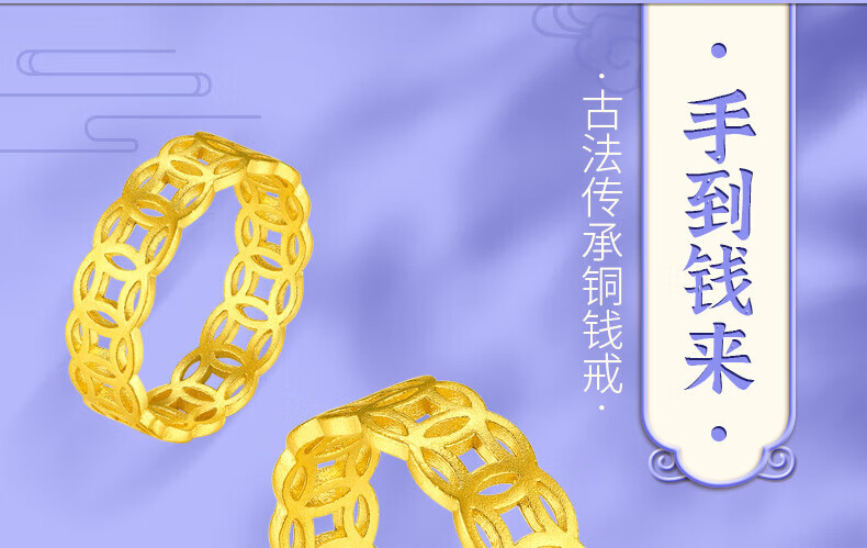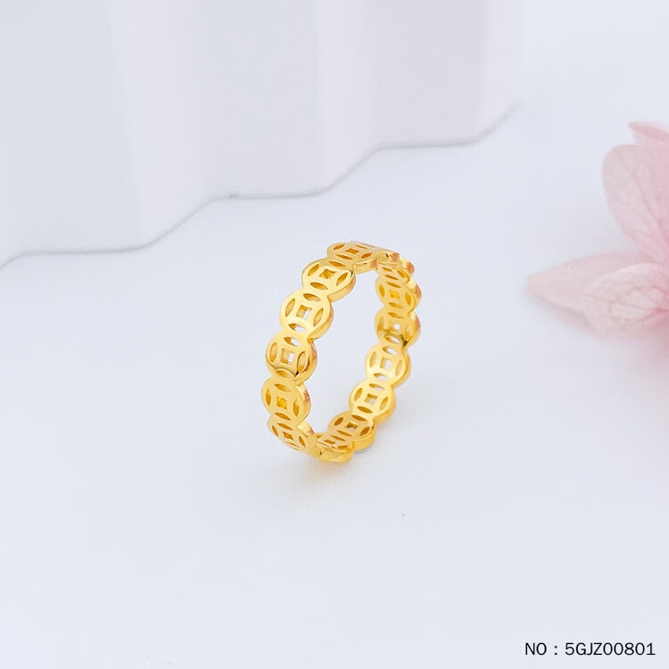 KREY old phoenix gold ring, wealth, copper coin ring, pure gold 999 fortune coin ring, female gift No. 22