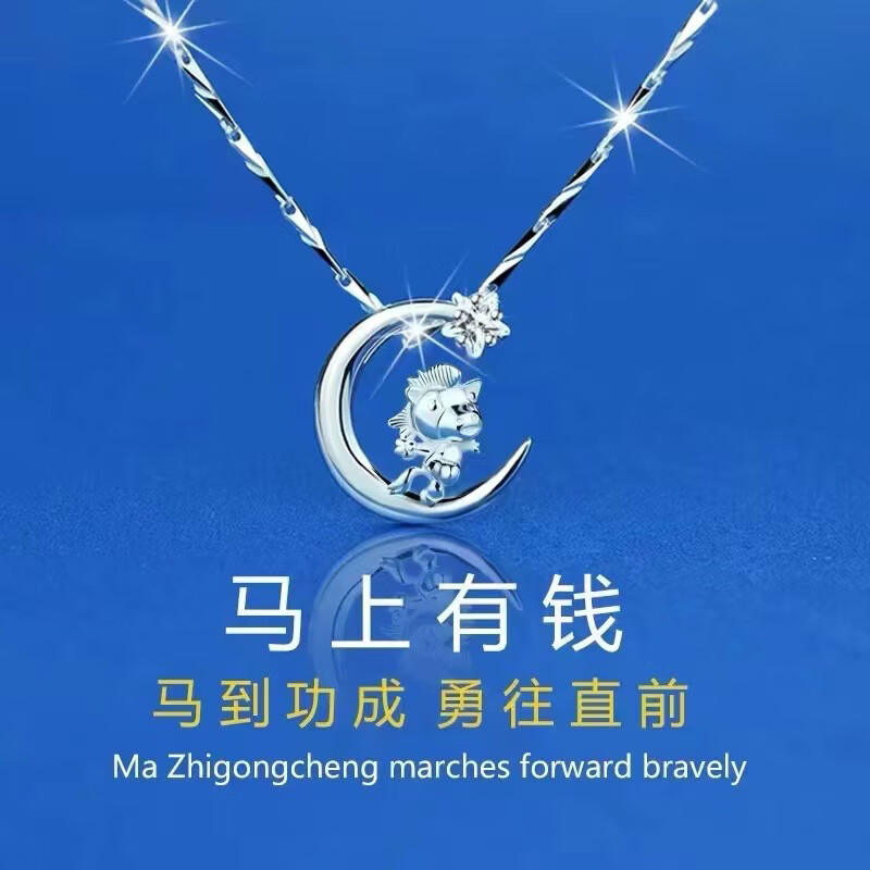 Fat Donglai same style platinum necklace with pendant PT950 and 18k gold diamond inlaid platinum zodiac necklace Pig