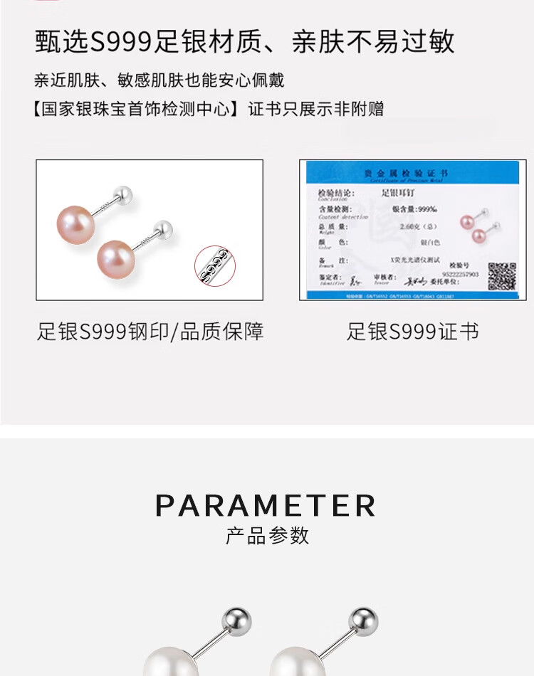 Qi Xiaomi s999 Pure Silver Freshwater Pearl Earrings for Women Screw Buttons to Support Ear Piercings High-end Small Earrings for Spring and Summer Popular Earrings 6mm White Pearl Earrings Pair 999 Pure Silver