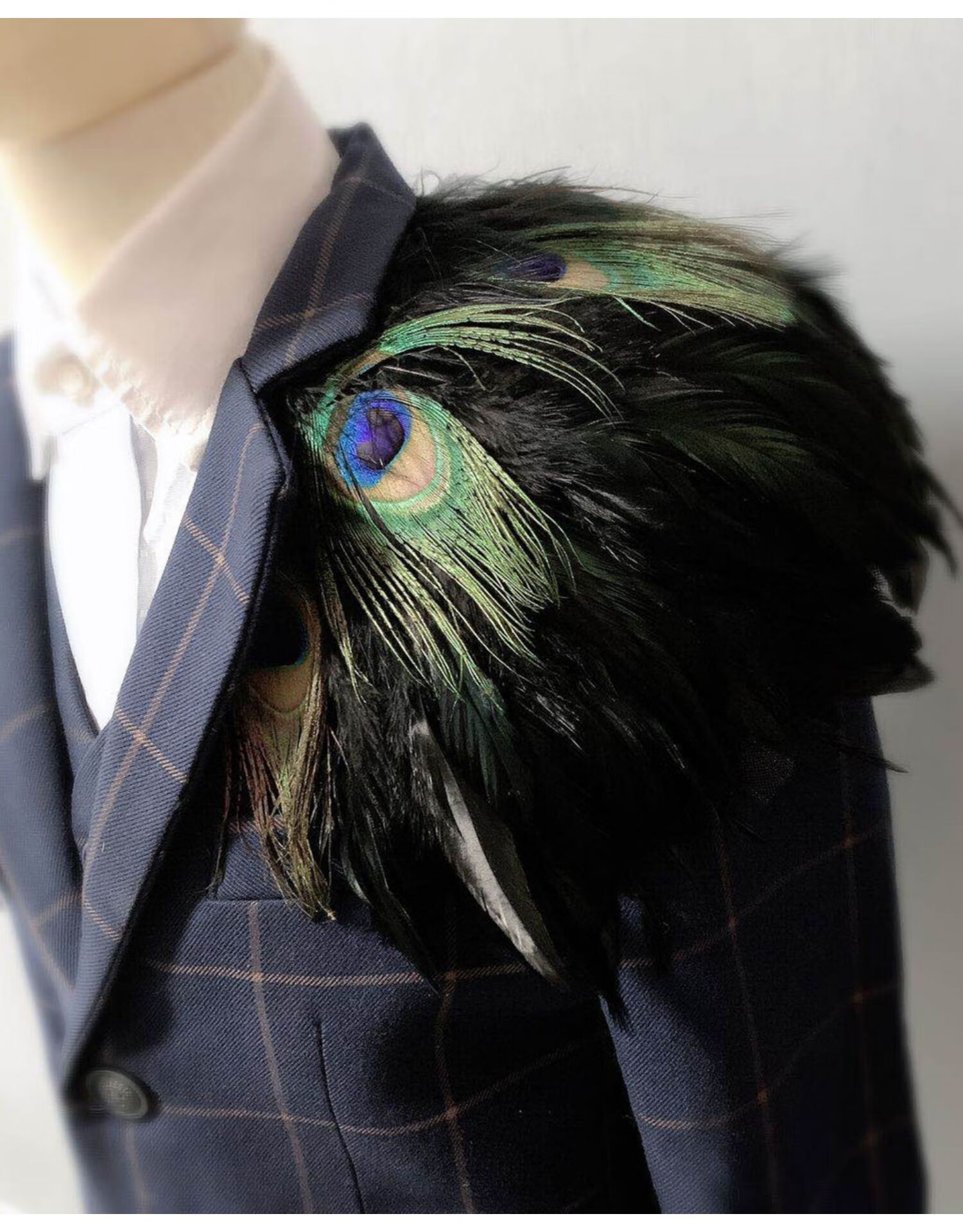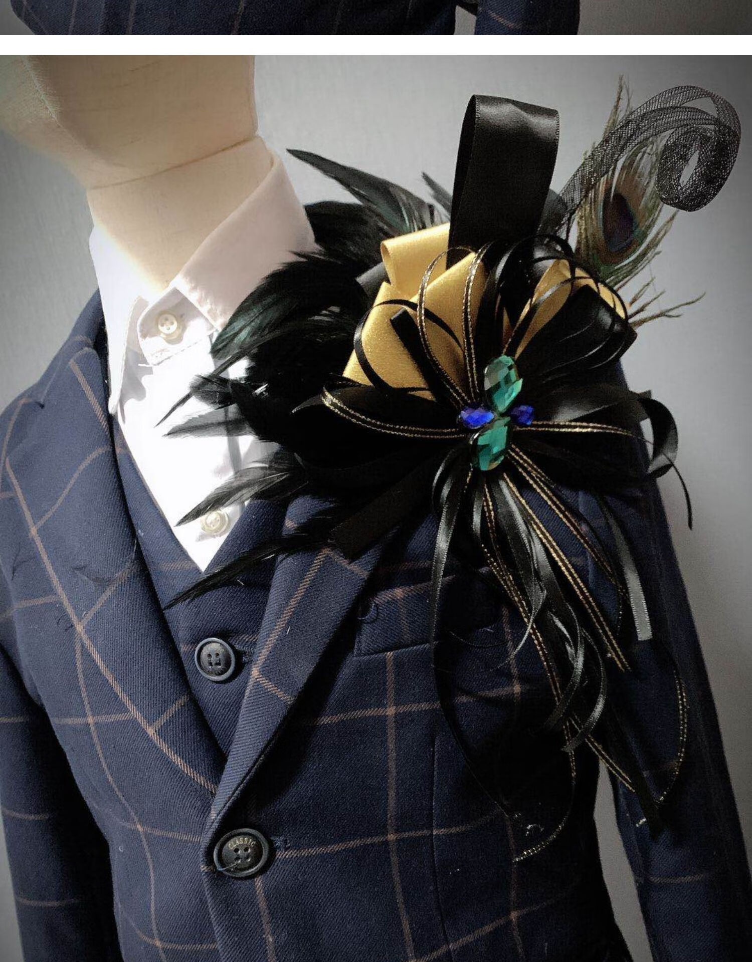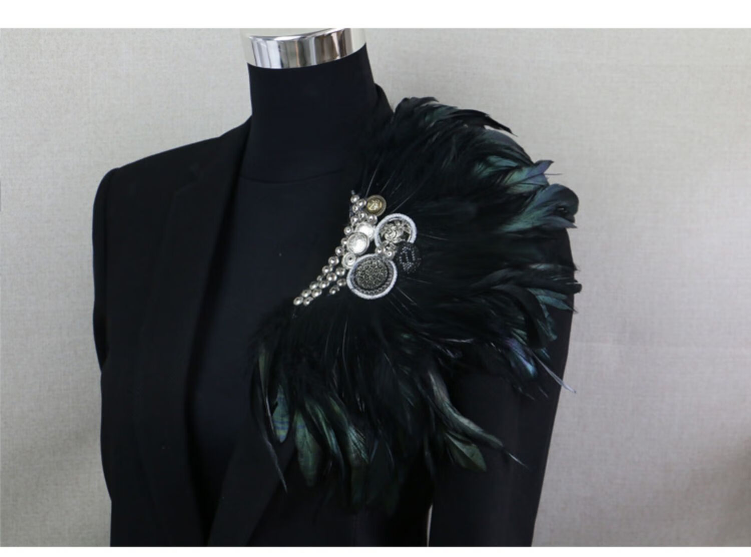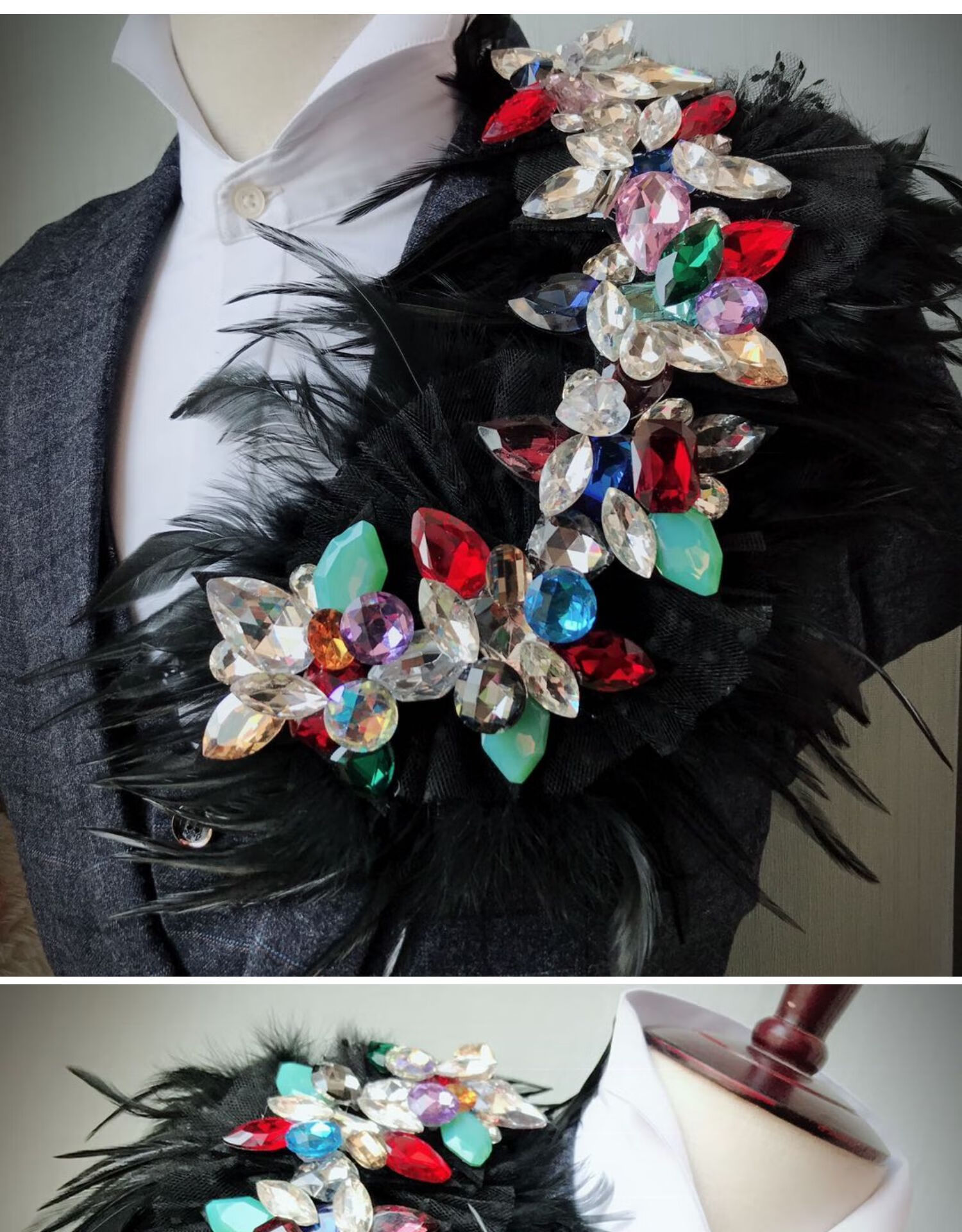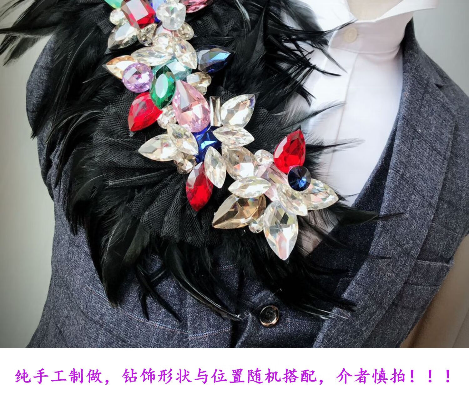 Library selection nightclub bar singer performance jewelry brooch feather corsage flash diamond retro competition exaggerated corsage badge for men picture color M15