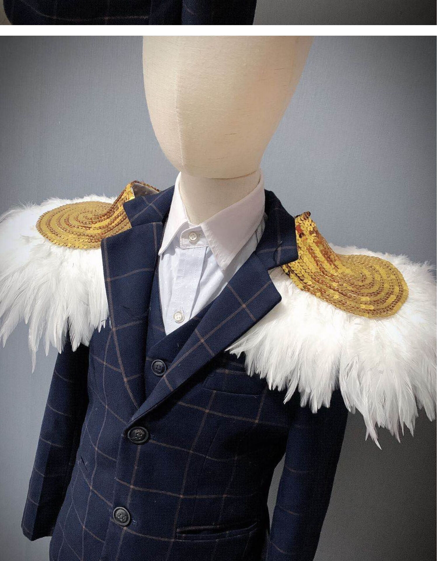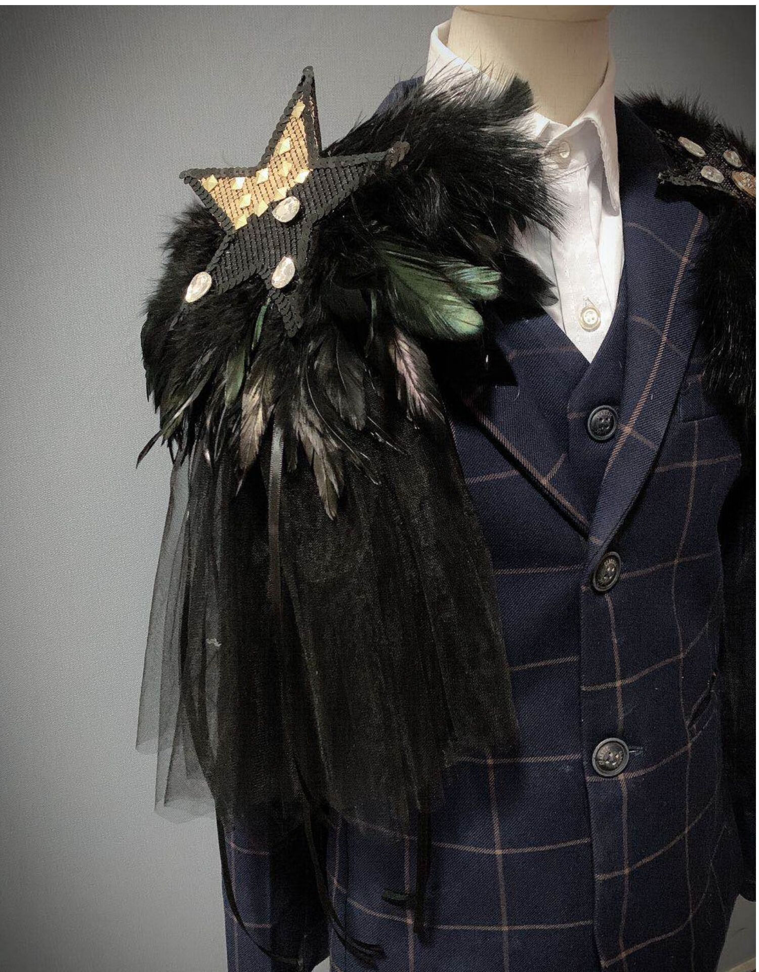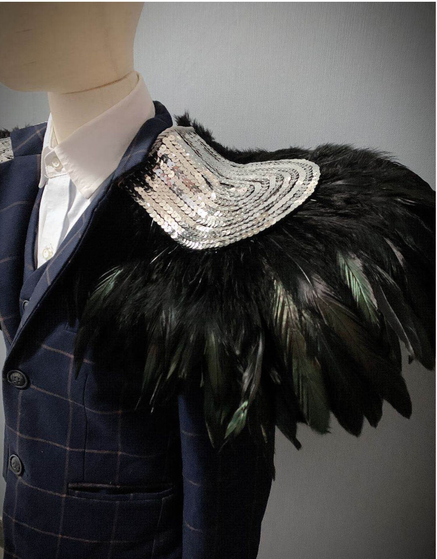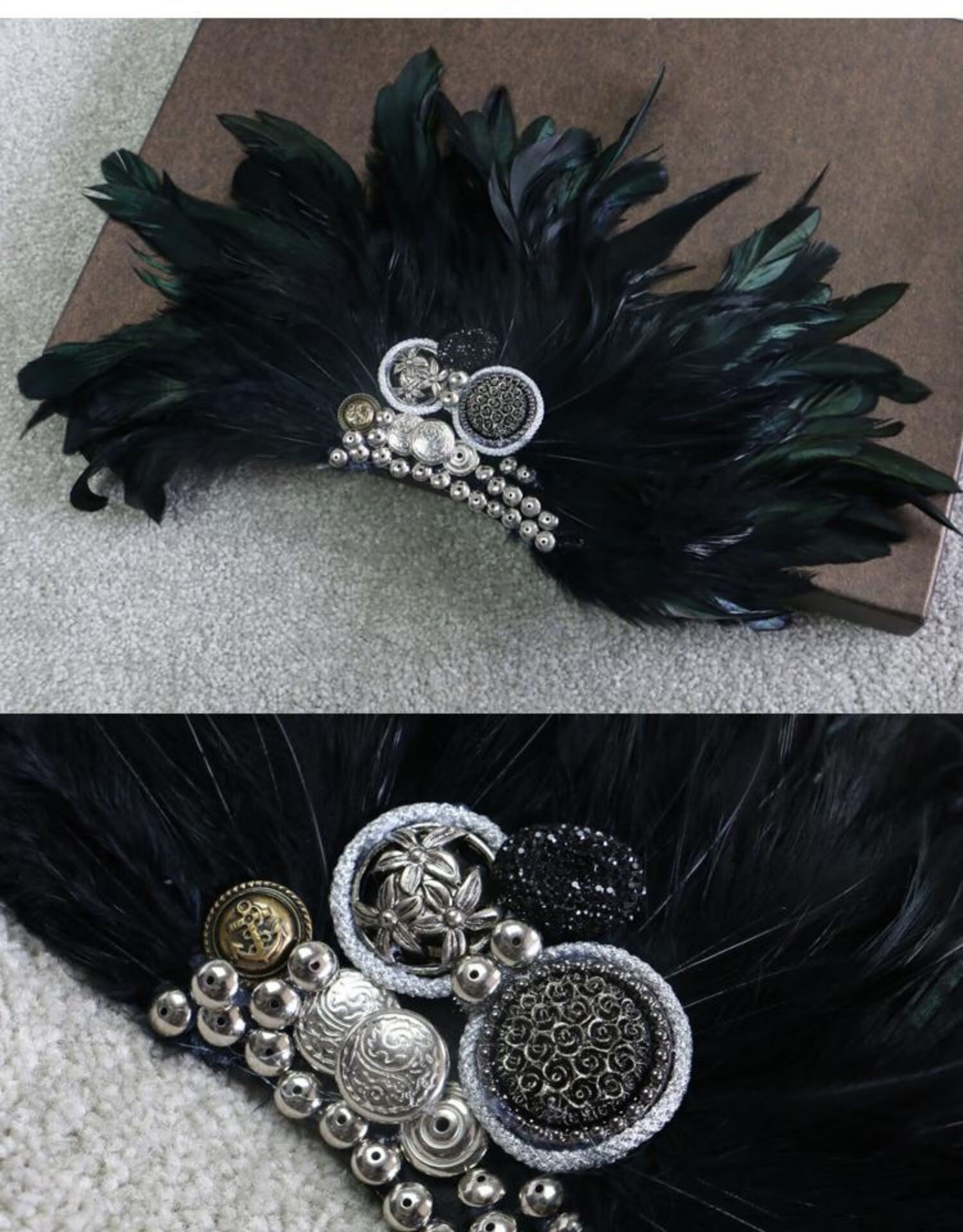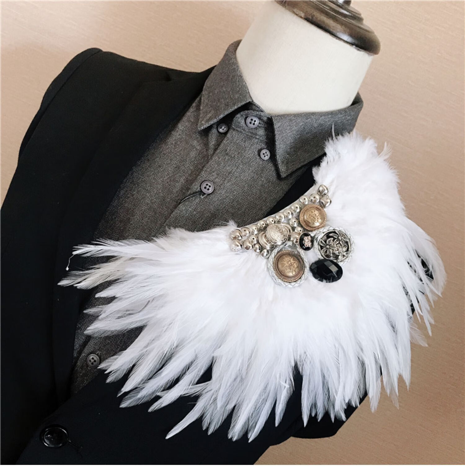 Library selection nightclub bar singer performance jewelry brooch feather corsage flash diamond retro competition exaggerated corsage badge for men picture color M15