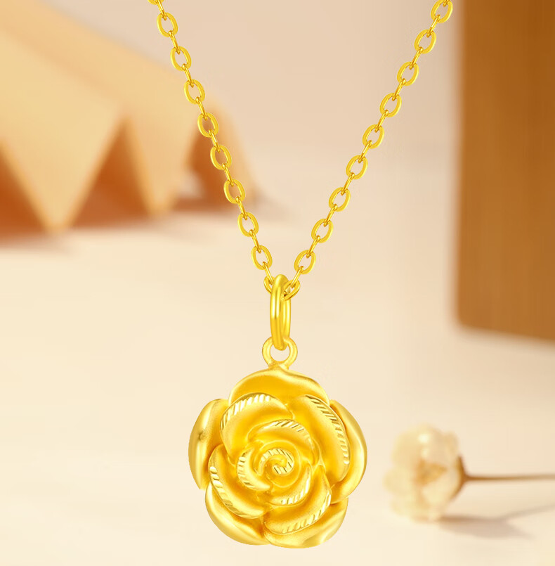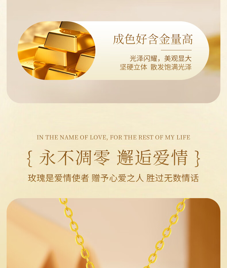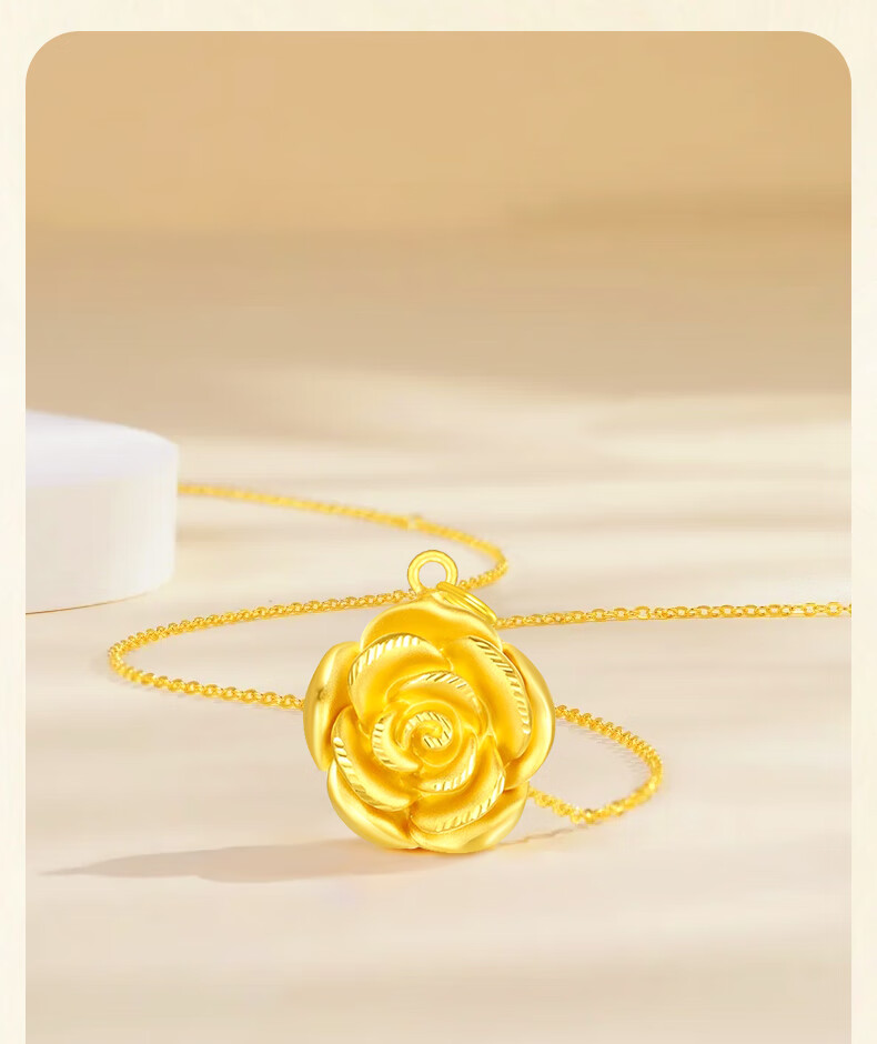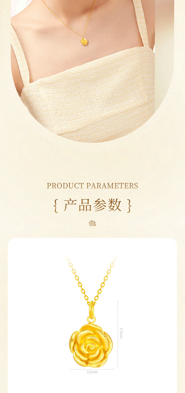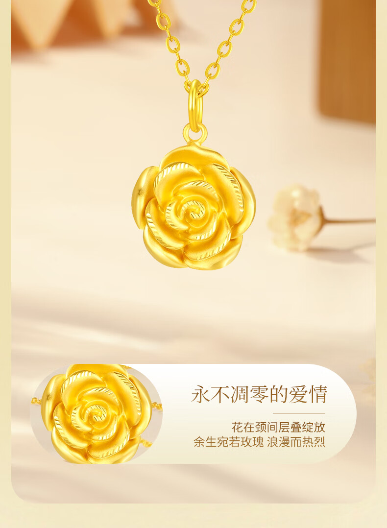 Lao Fengxiang Rose Gold Necklace Women's Pure Gold Pendant Wedding Anniversary Gift for Girlfriend and Wife's Birthday Pure Gold Happy Rose Pendant + Free 925 Silver Chain