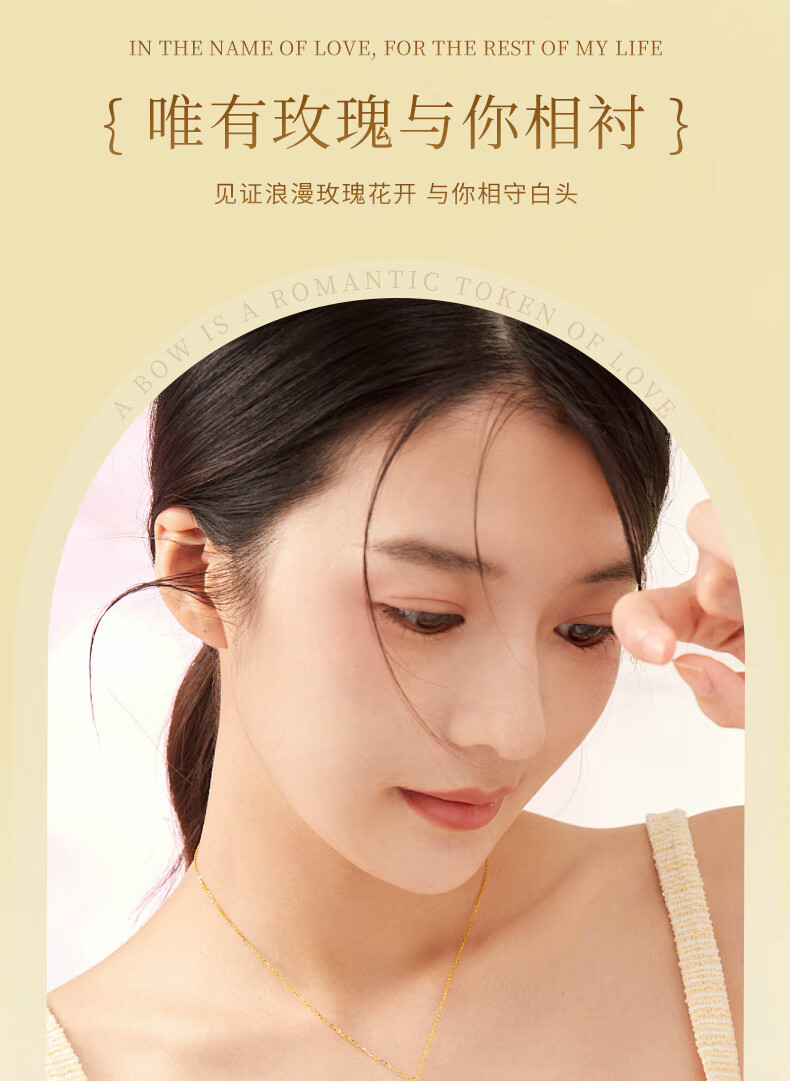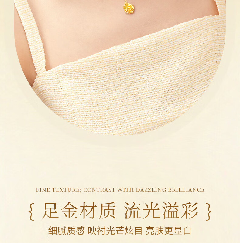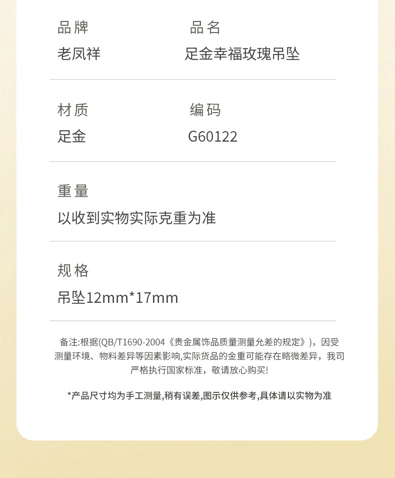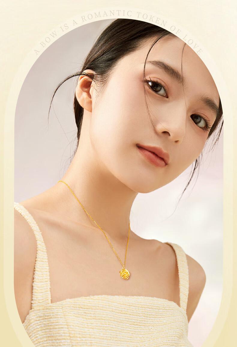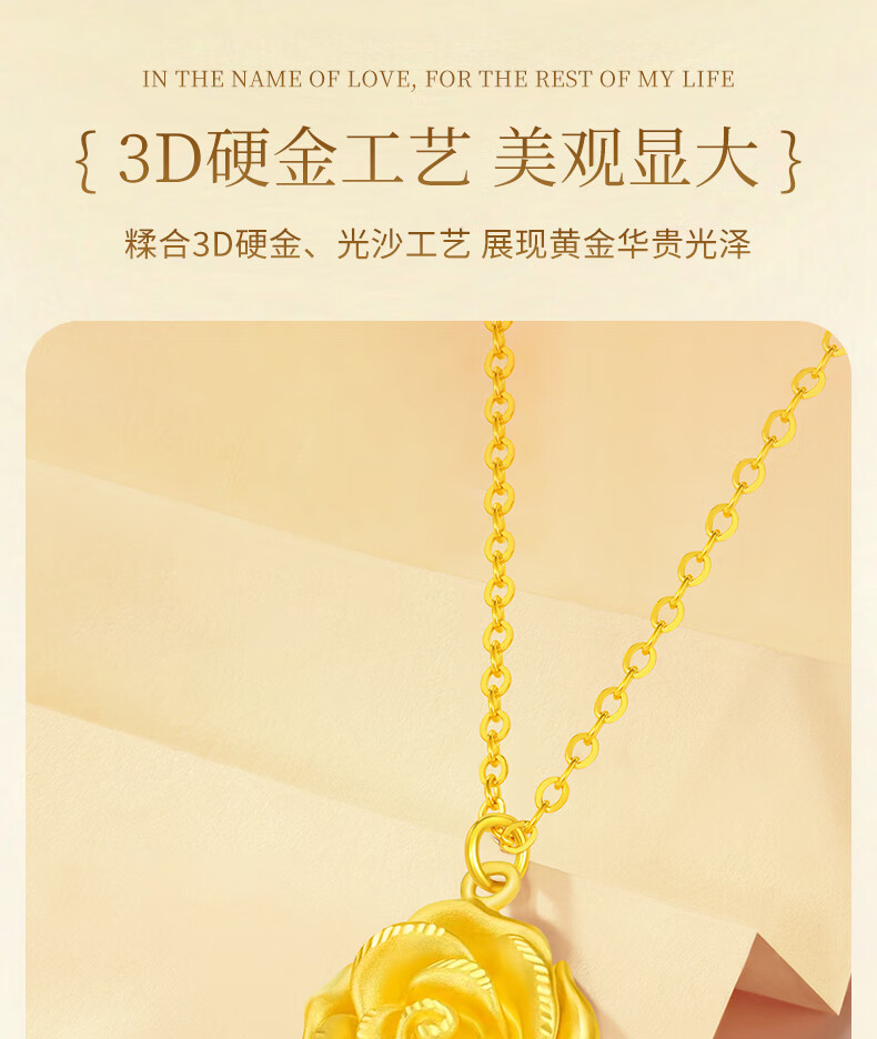 Lao Fengxiang Rose Gold Necklace Women's Pure Gold Pendant Wedding Anniversary Gift for Girlfriend and Wife's Birthday Pure Gold Happy Rose Pendant + Free 925 Silver Chain