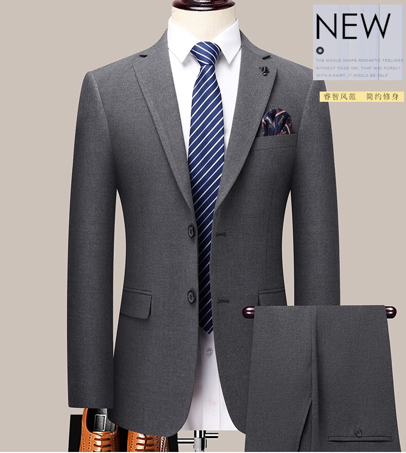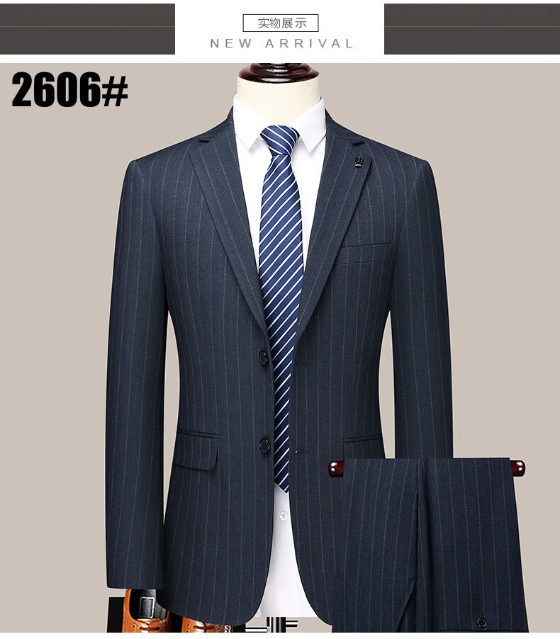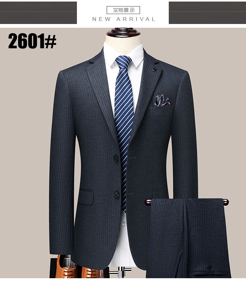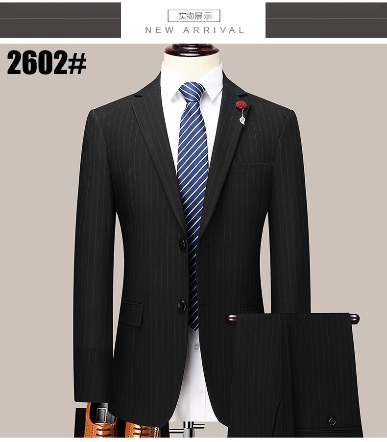 Angel Bird Suit Two-piece Men's Business Versatile Wedding Dress Wool Professional Suit Light Luxury Jacket 2602 Black Striped Suit + Trousers Double Slit 50 180/52 Recommendation 1-165 Jin Jin equals 0.5 kg