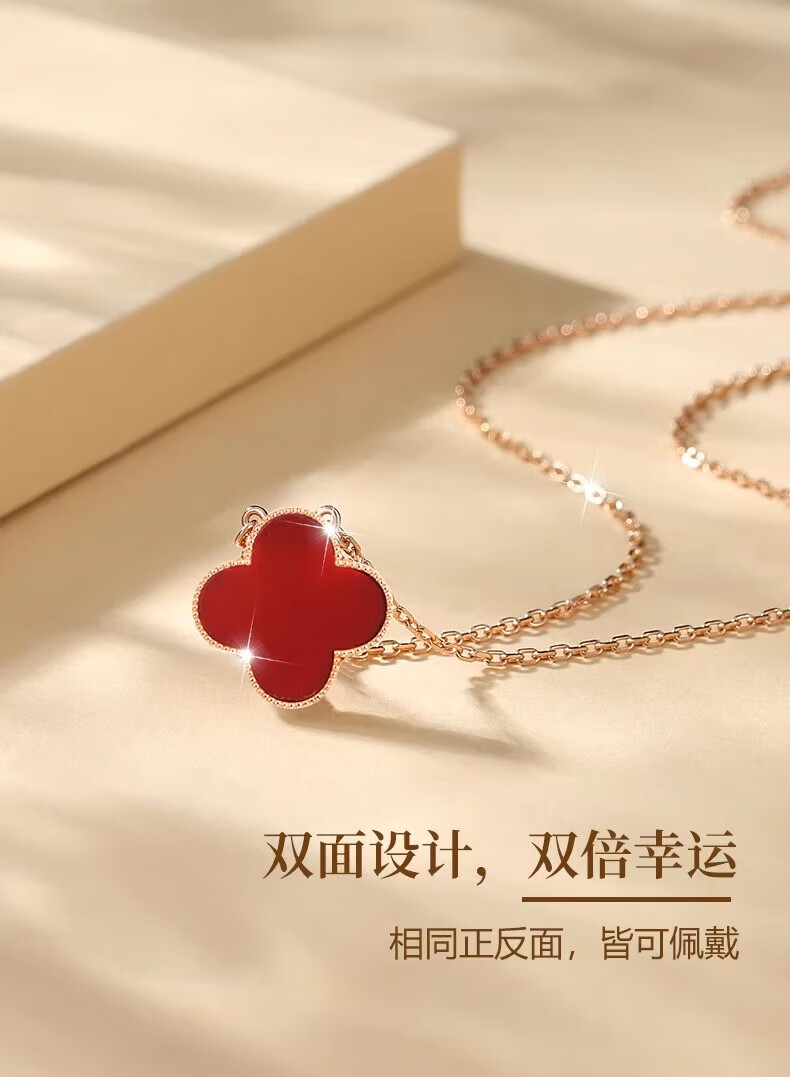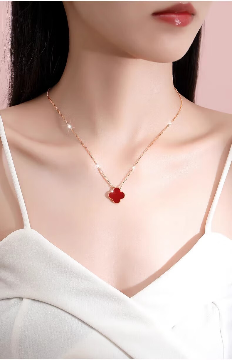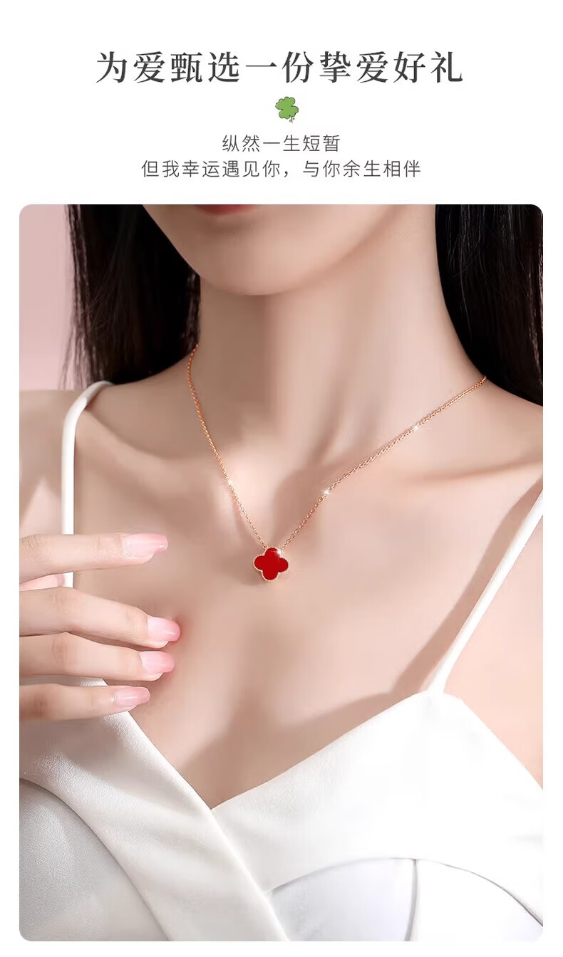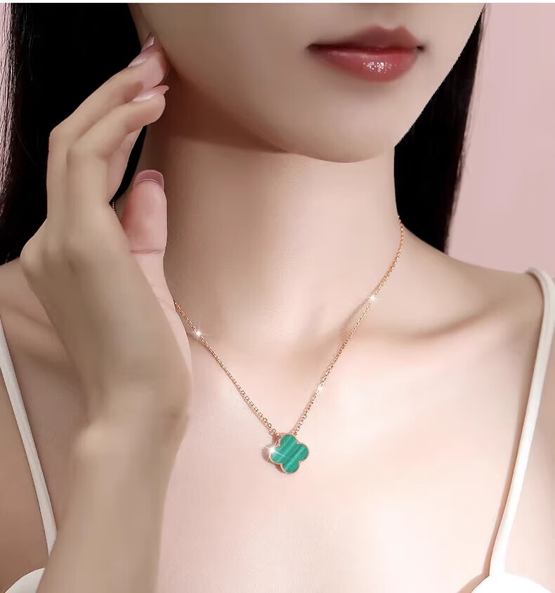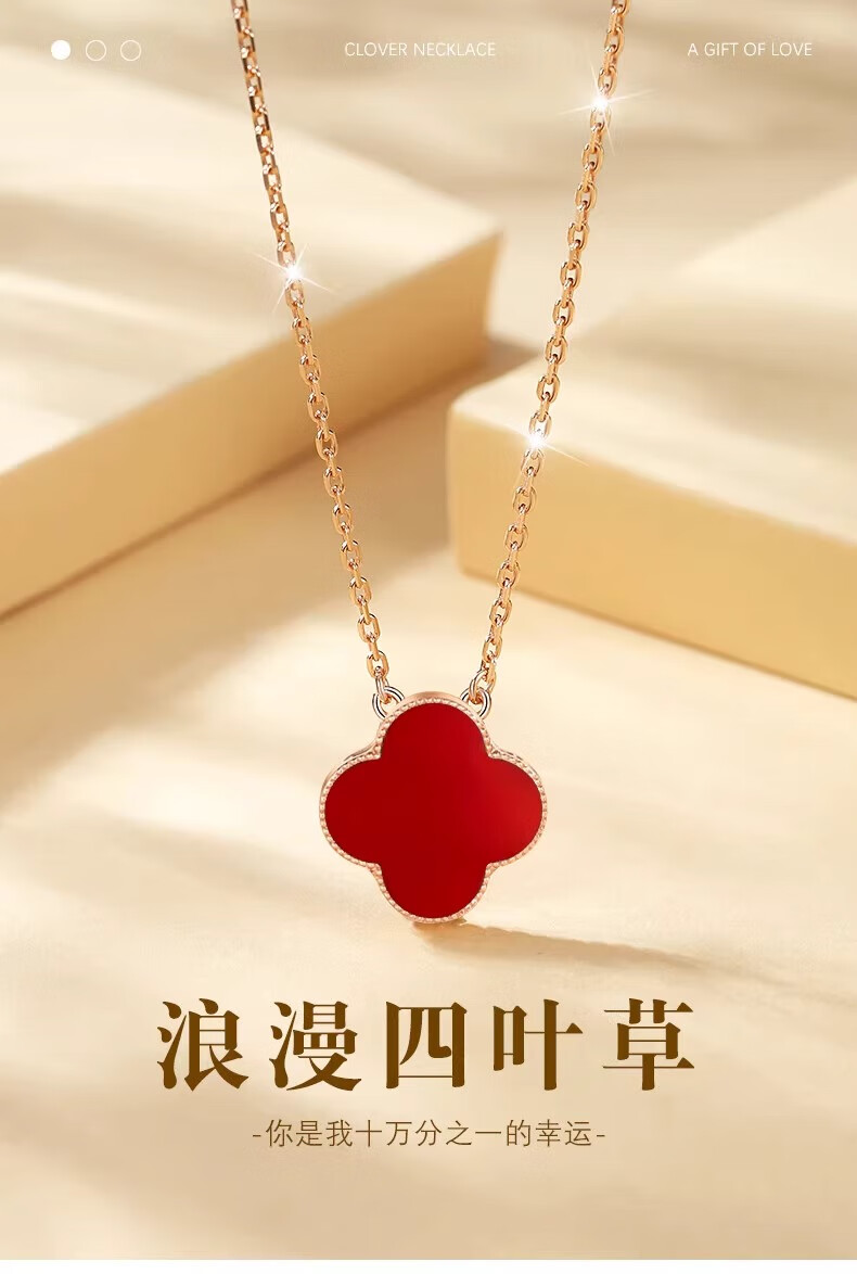 Fanzhe Poetry Light Luxury Four-leaf Clover Necklace for Women 2026 New High-end Malachite Bracelet Valentine's Day Birthday Gift for Girlfriend Elegant Red-Four-leaf Clover Necklace Shipped from Qicang