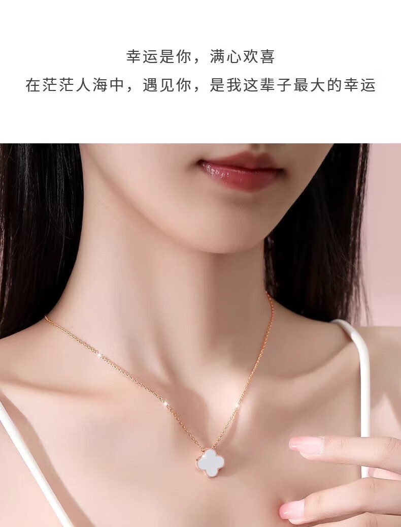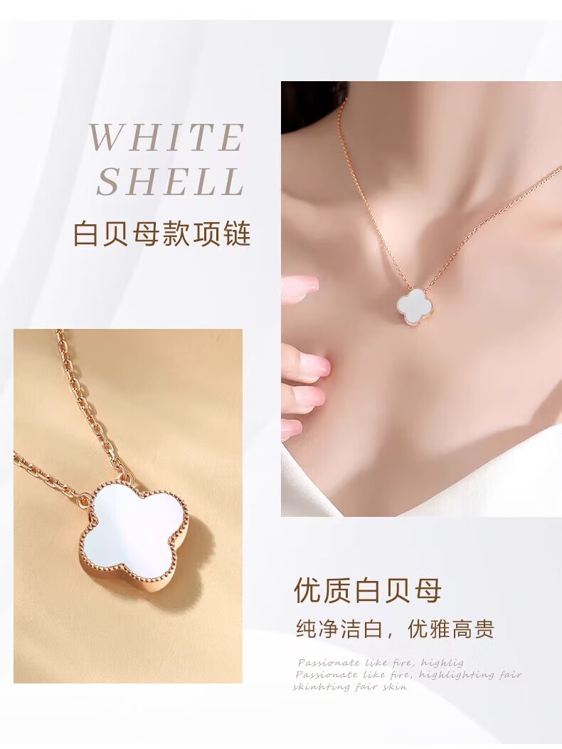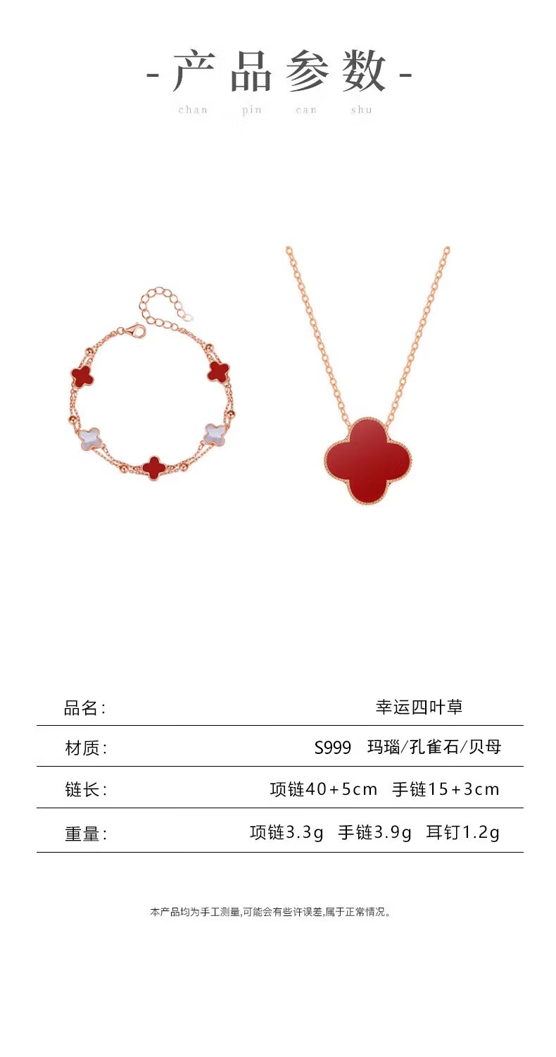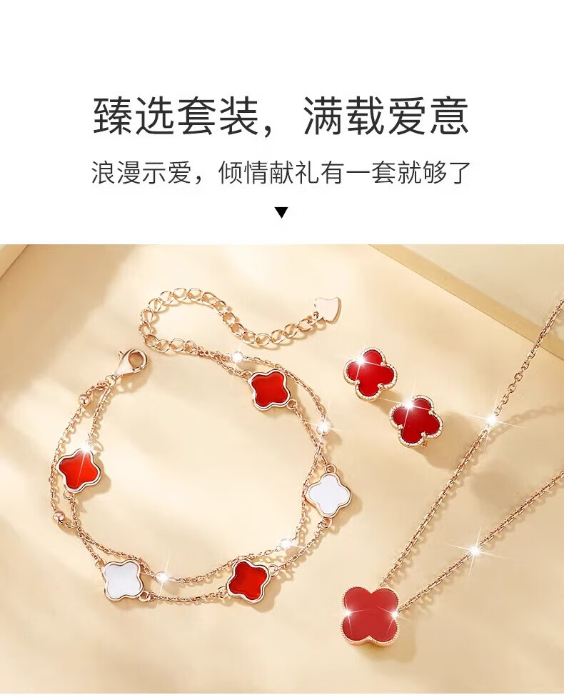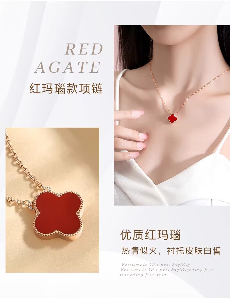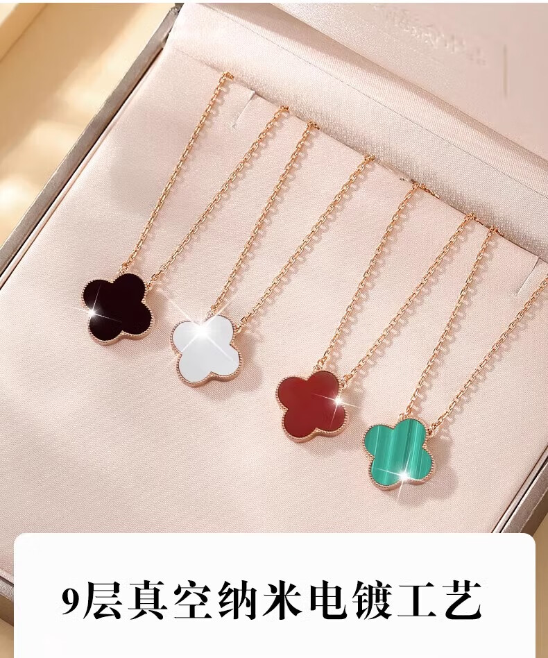 Fanzhe Poetry Light Luxury Four-leaf Clover Necklace for Women 2026 New High-end Malachite Bracelet Valentine's Day Birthday Gift for Girlfriend Elegant Red-Four-leaf Clover Necklace Shipped from Qicang