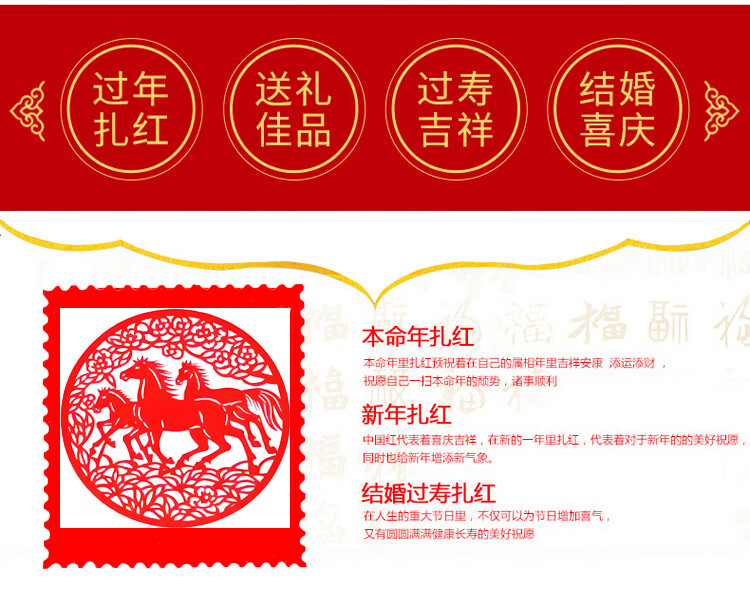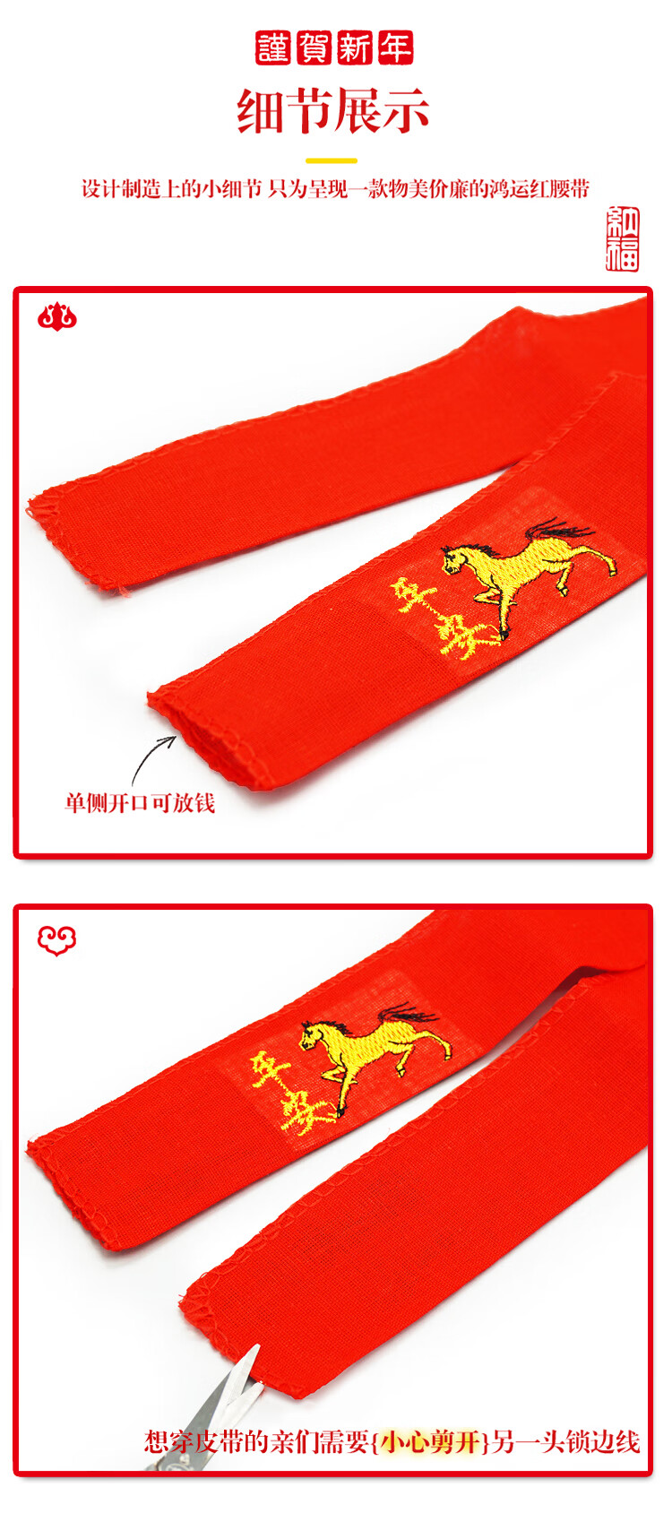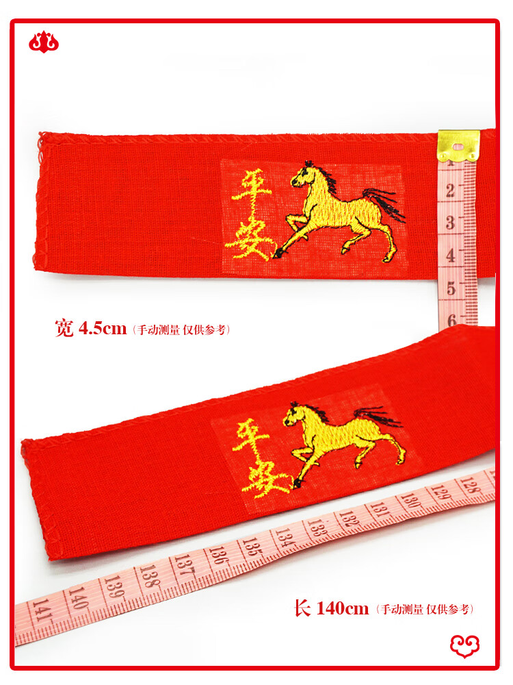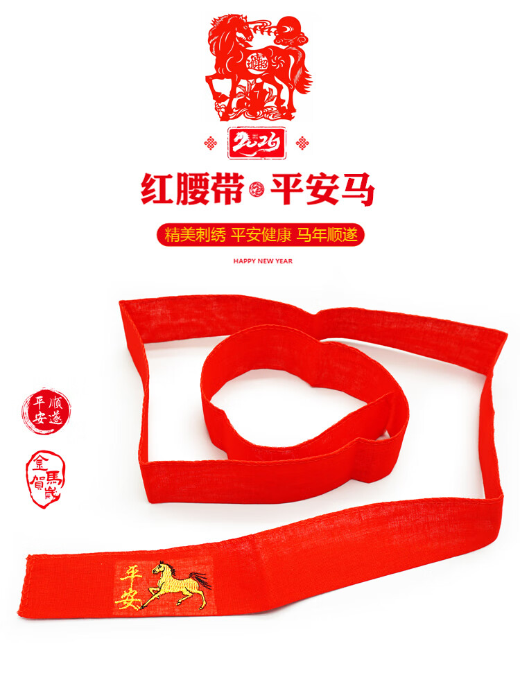 New Year of the Horse red belt, zodiac year, belt embroidery, peace and happiness, belt set for men and women, belt set for the elderly, a peace horse, 140 cm long, 4.5 cm wide