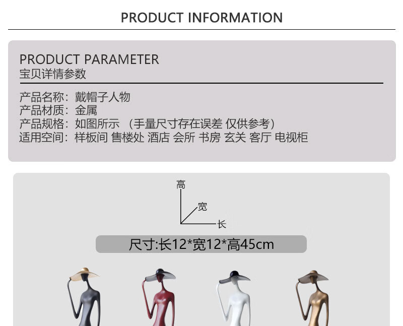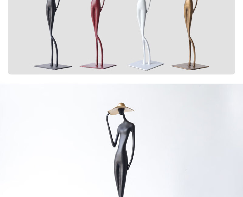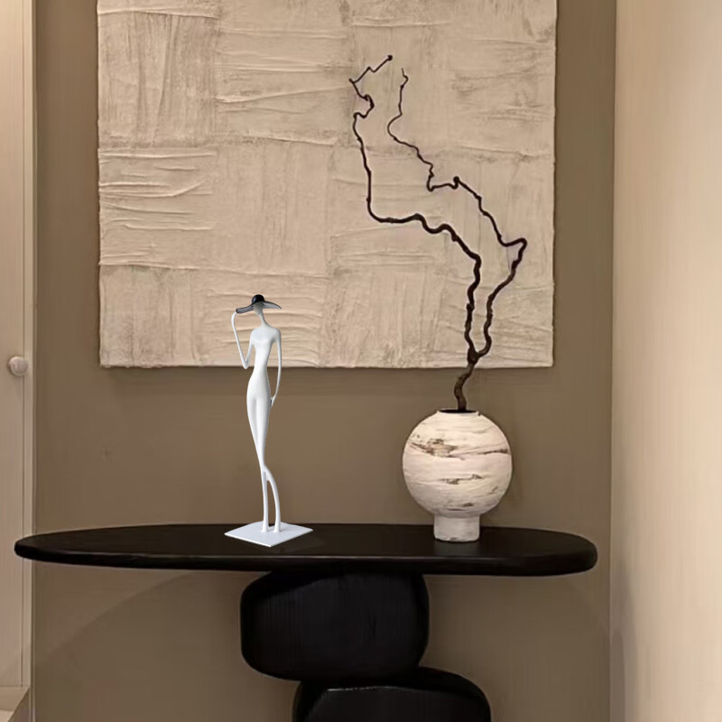 Wen Yijia light luxury abstract figure wearing hat and long legs sculpture ornaments model room hotel TV cabinet living room entrance hall art figure wearing hat black