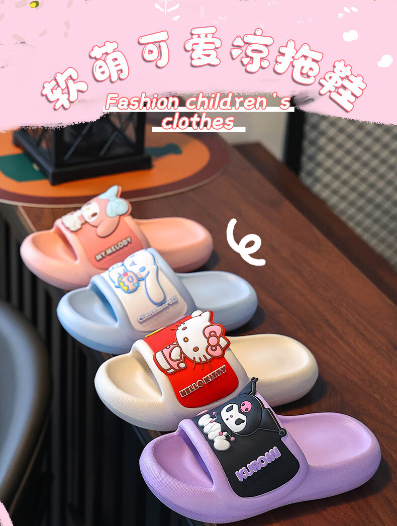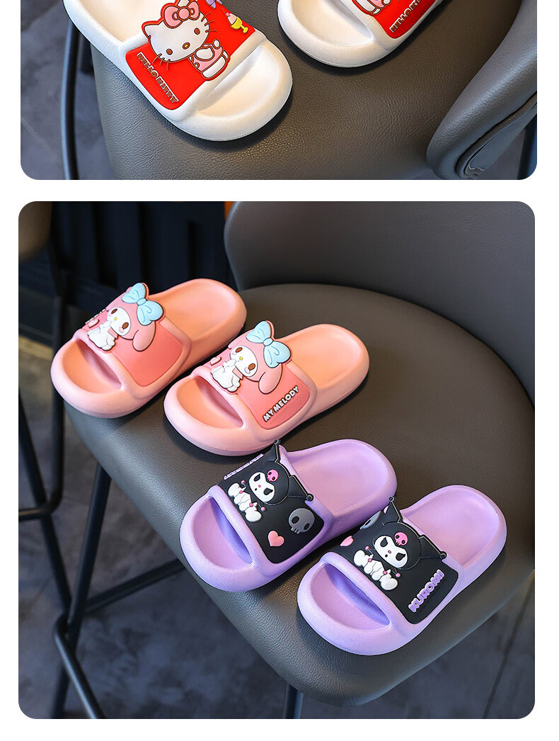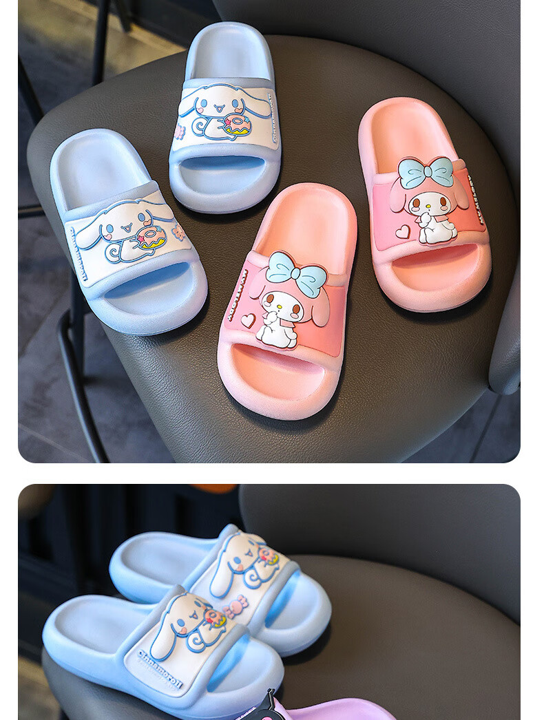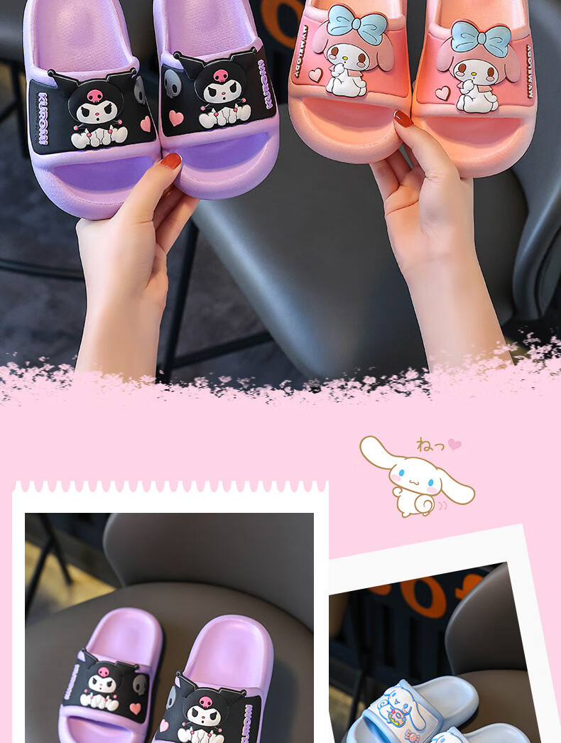 Натуральные детские тапочки Sanrio, летние новые стильные милые нескользящие тапочки с героями мультфильмов для девочек, розовые мелодии для мальчиков, размеры 32-33, внутренняя длина 20 см