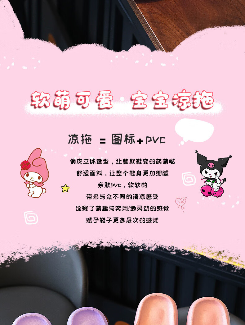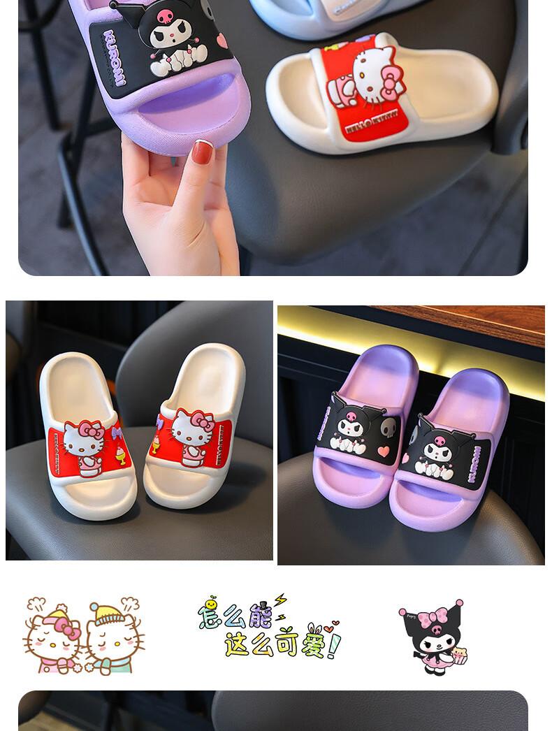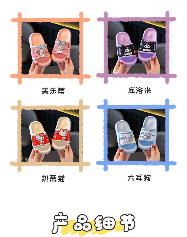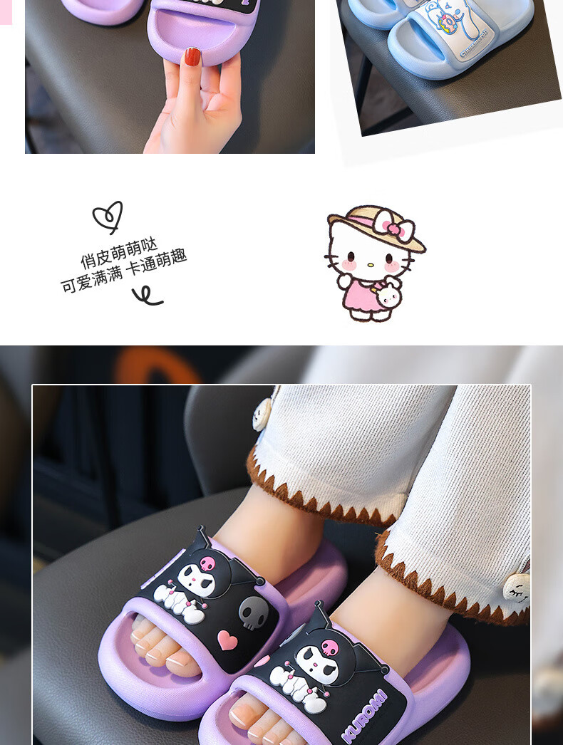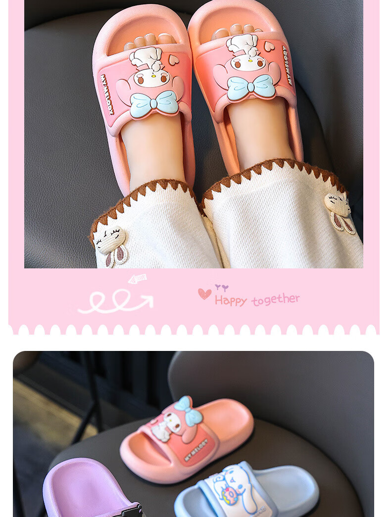 Натуральные детские тапочки Sanrio, летние новые стильные милые нескользящие тапочки с героями мультфильмов для девочек, розовые мелодии для мальчиков, размеры 32-33, внутренняя длина 20 см