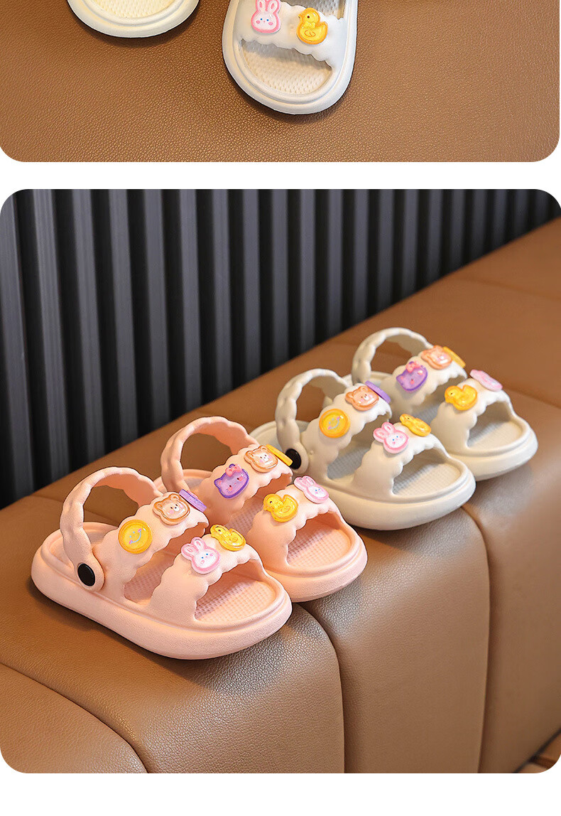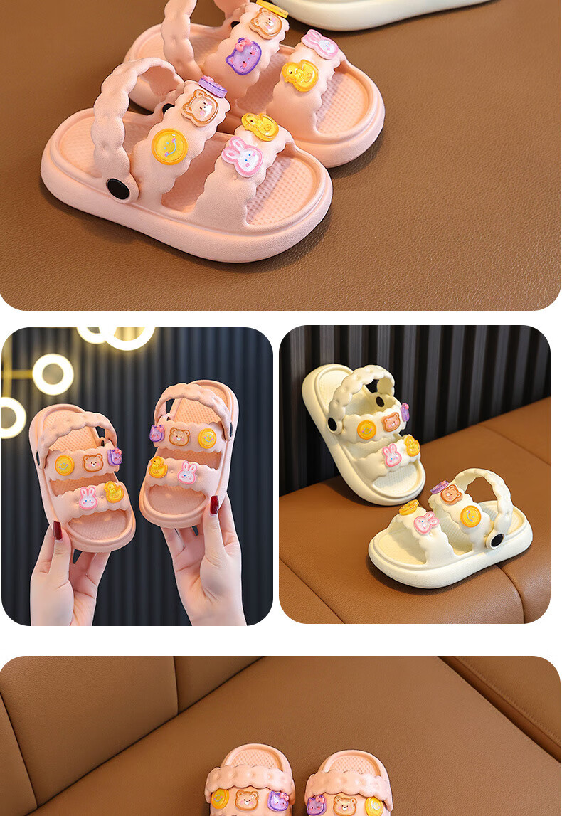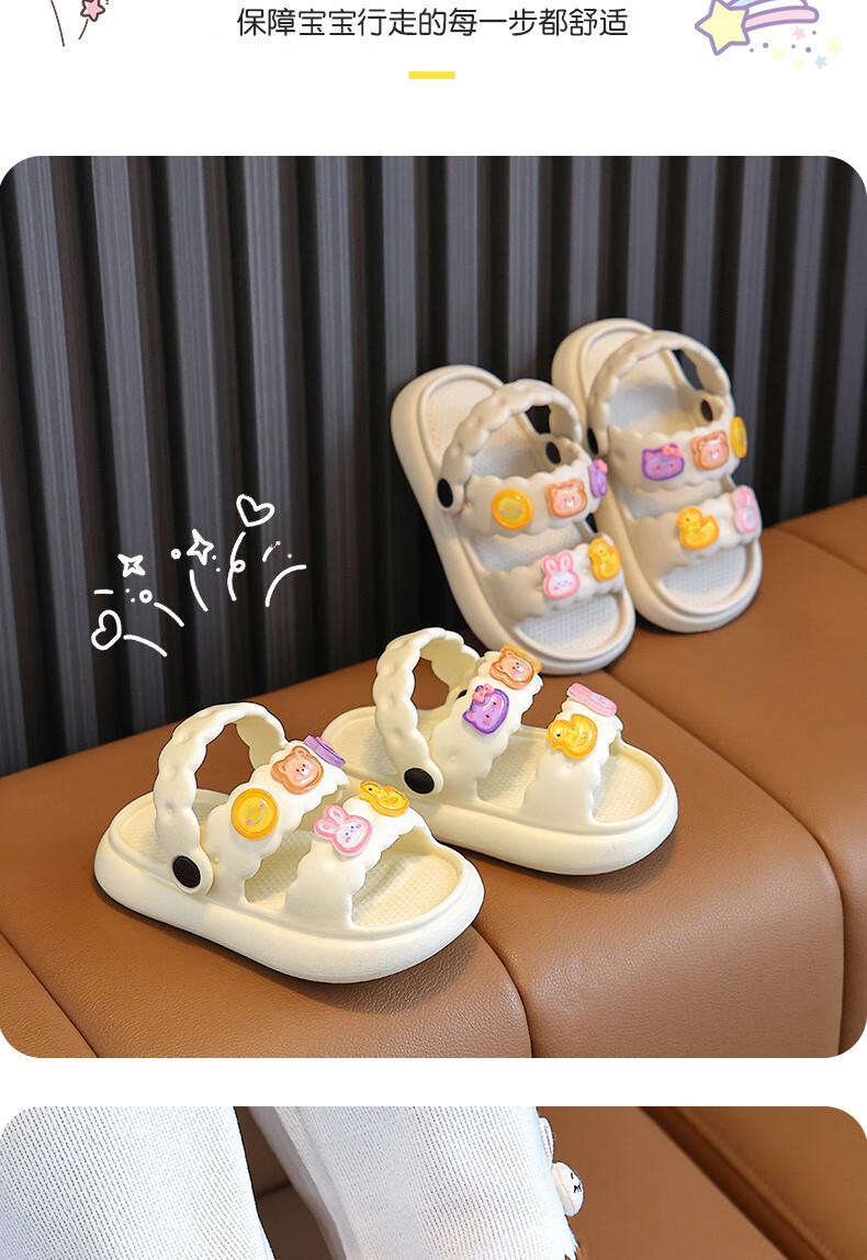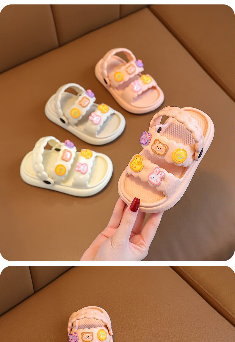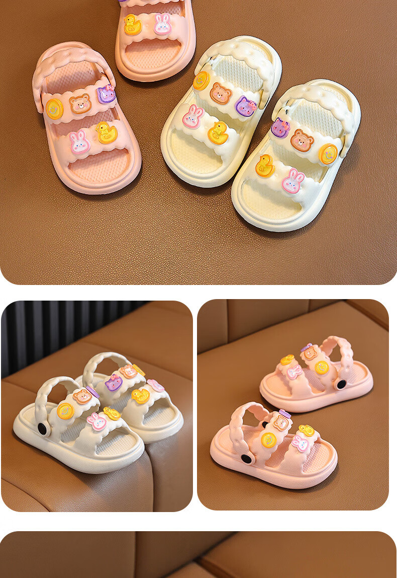 Children's sandals, girls' summer new soft-soled non-slip beach shoes for boys and babies, cute cartoon bear sandals, pink, size 34-35