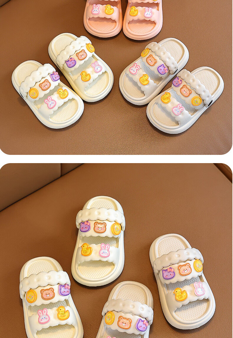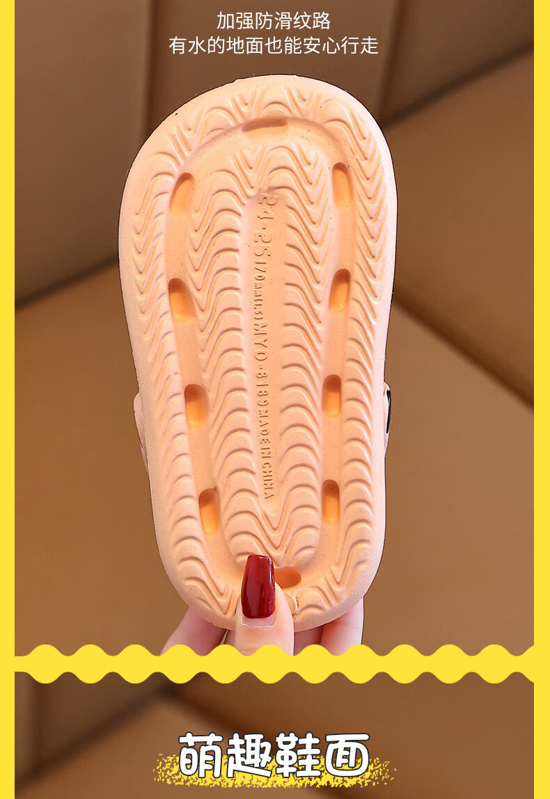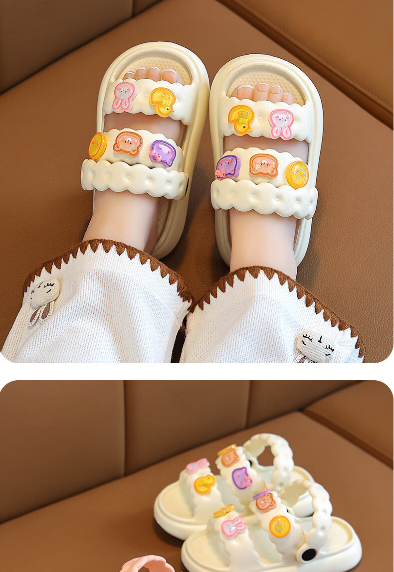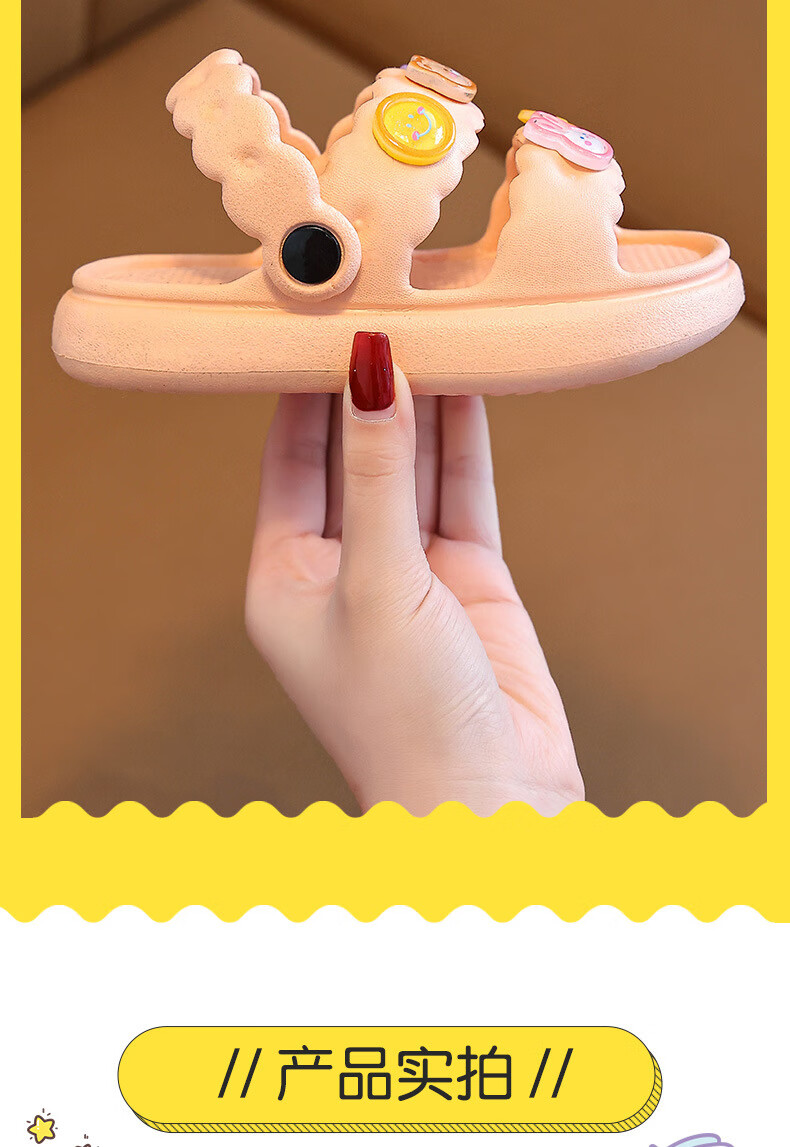 Children's sandals, girls' summer new soft-soled non-slip beach shoes for boys and babies, cute cartoon bear sandals, pink, size 34-35