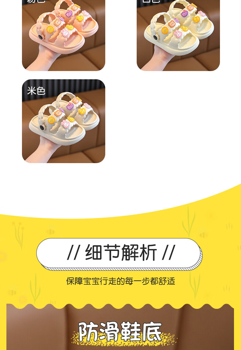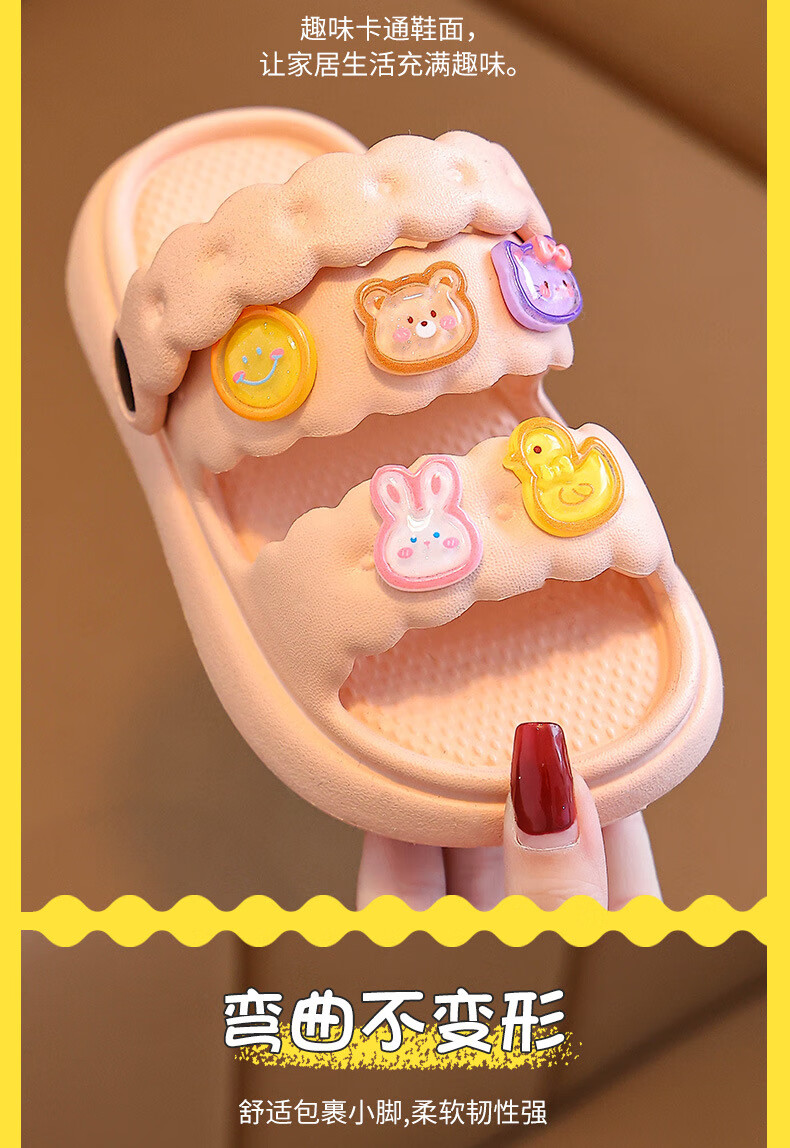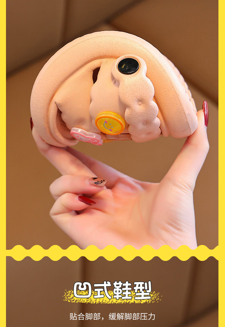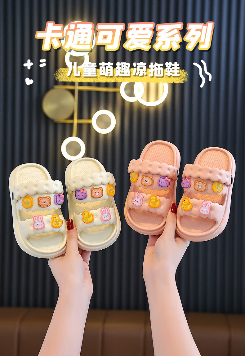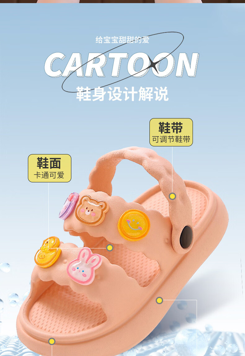 Children's sandals, girls' summer new soft-soled non-slip beach shoes for boys and babies, cute cartoon bear sandals, pink, size 34-35