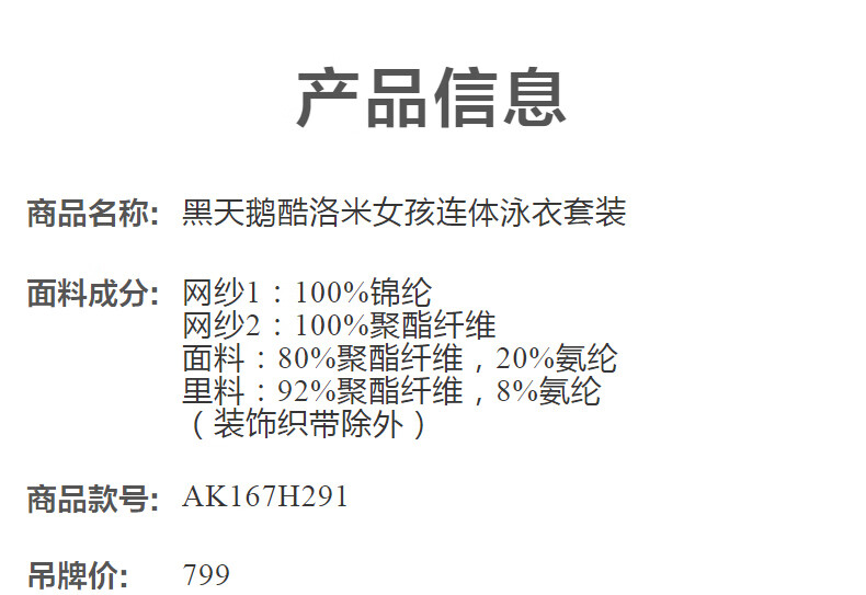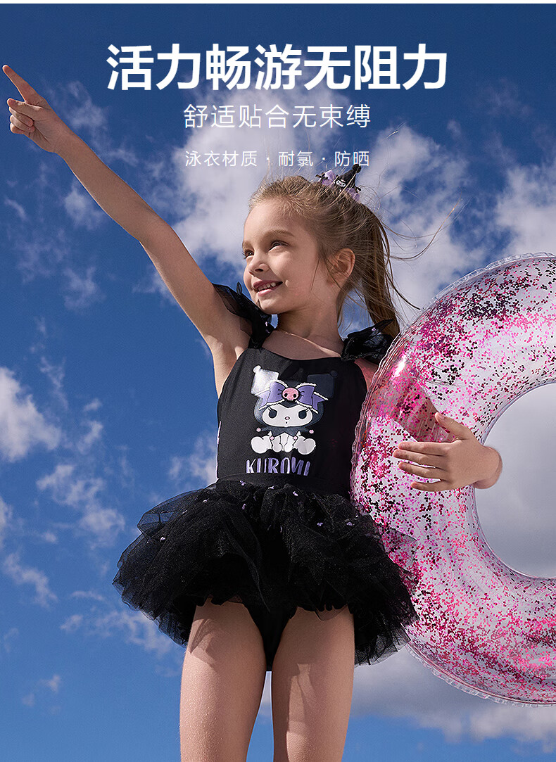 Adore Children's Spring New Product Girls' Cute and Cool Black Swan Coolomi One-piece Swimsuit Set Professional Sunscreen and Chlorine Resistant Swimwear Black Swan Coolomi 120 (34-48Jin Jin equals 0.5kg)