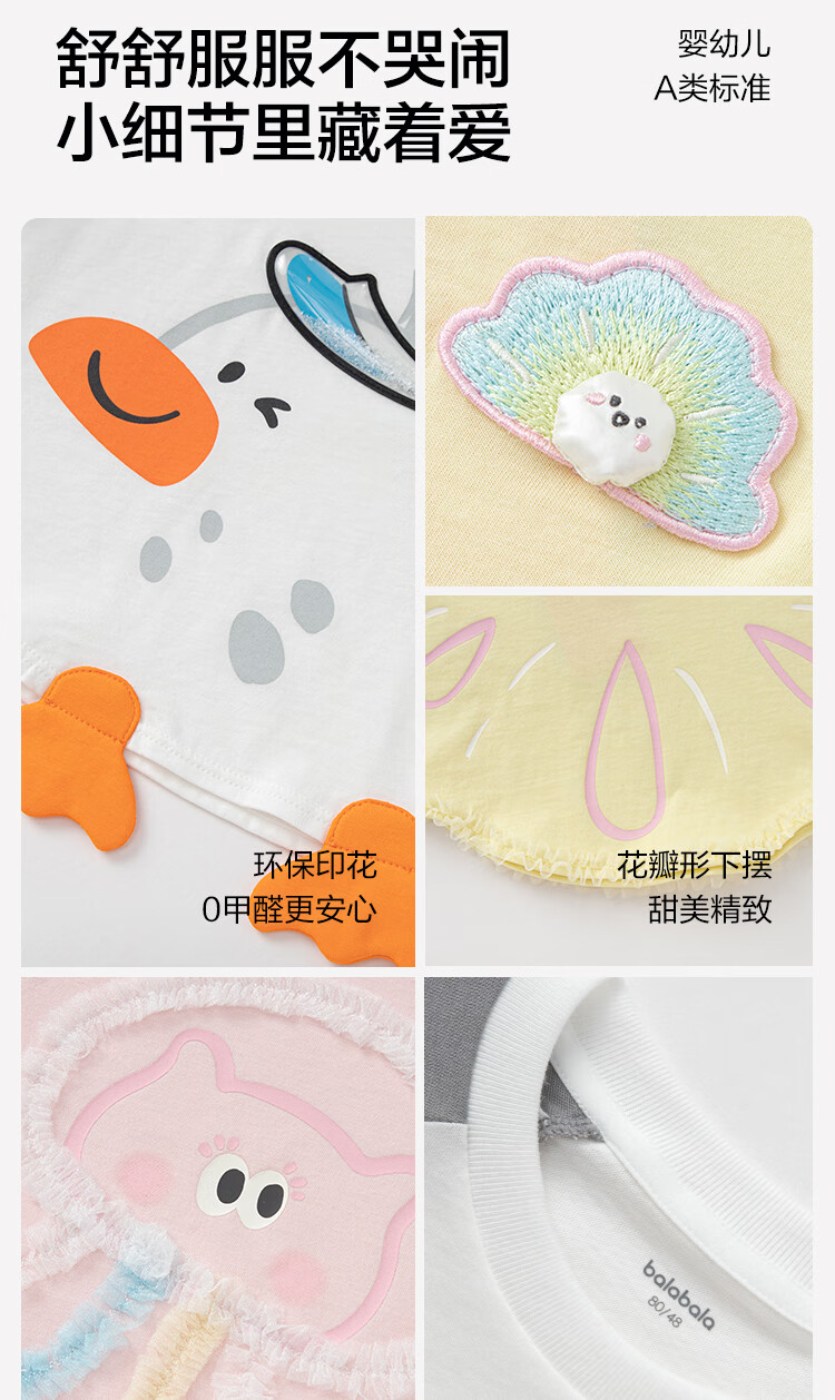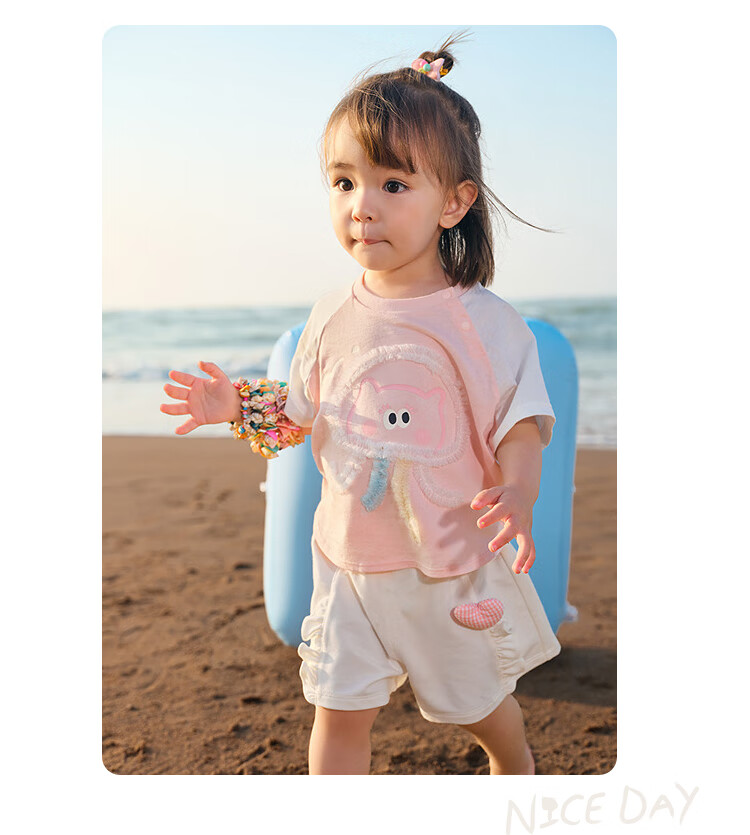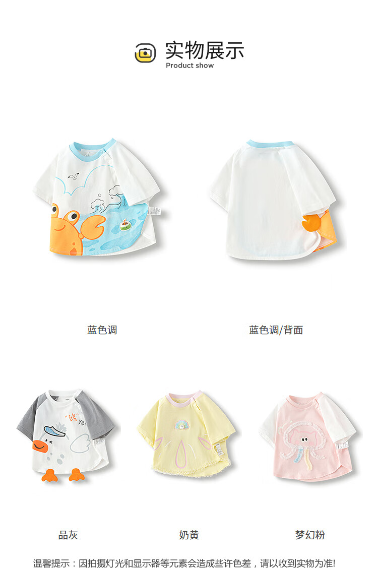 Balabala baby t-shirt baby tops girls clothes boys short sleeves 2025 new summer clothes cute and cute dream pink 60334 120