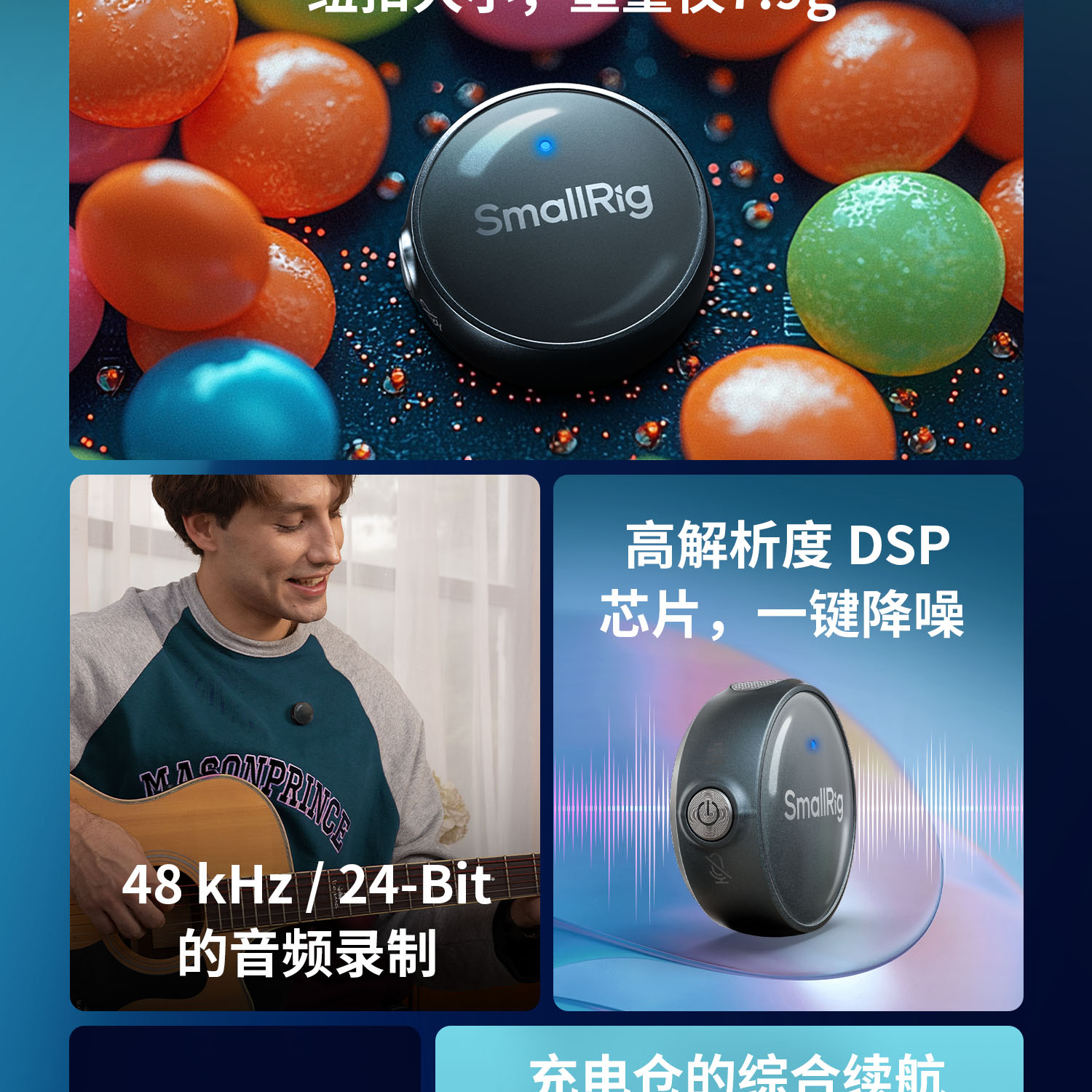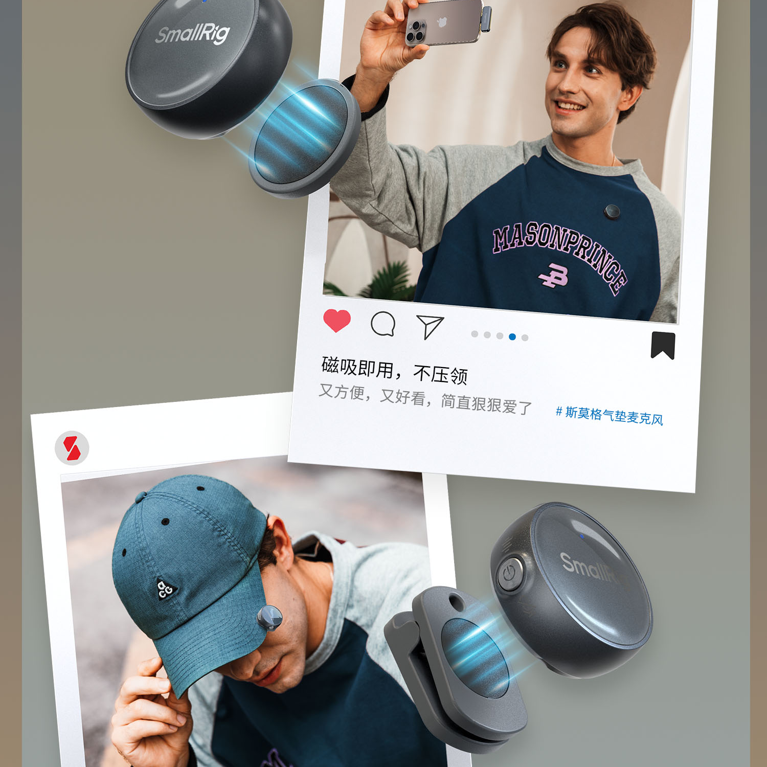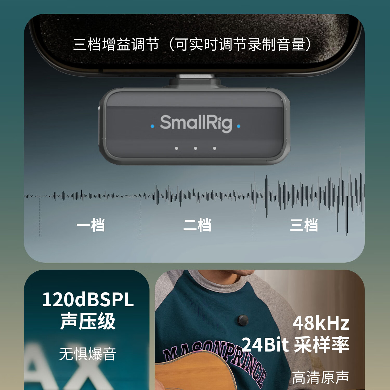 SmallRig Wireless Lavalier Microphone Magnetic Sound Absorption Button Microphone One-to-Two Mobile Camera Live Vlog Recording Radio Interview Equipment Noise Reduction TypeC Interface White One-to-Two Microphones