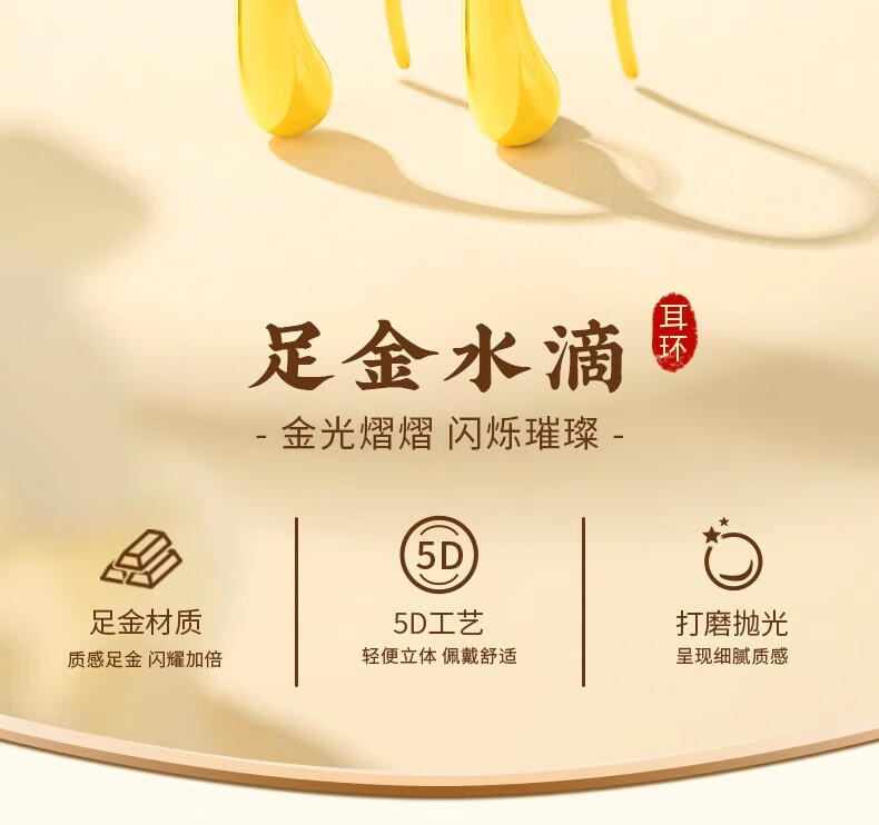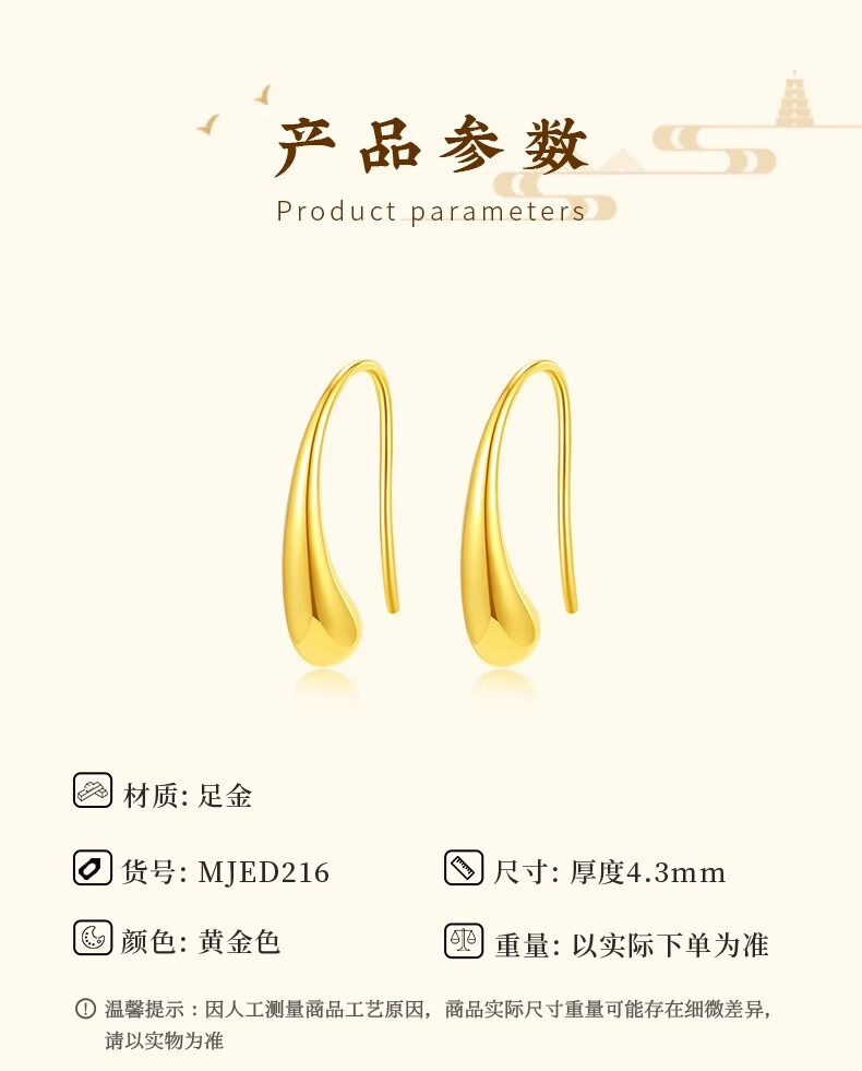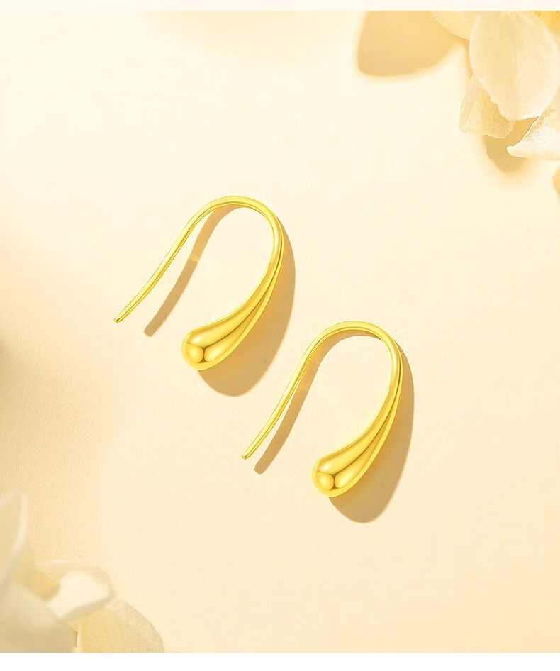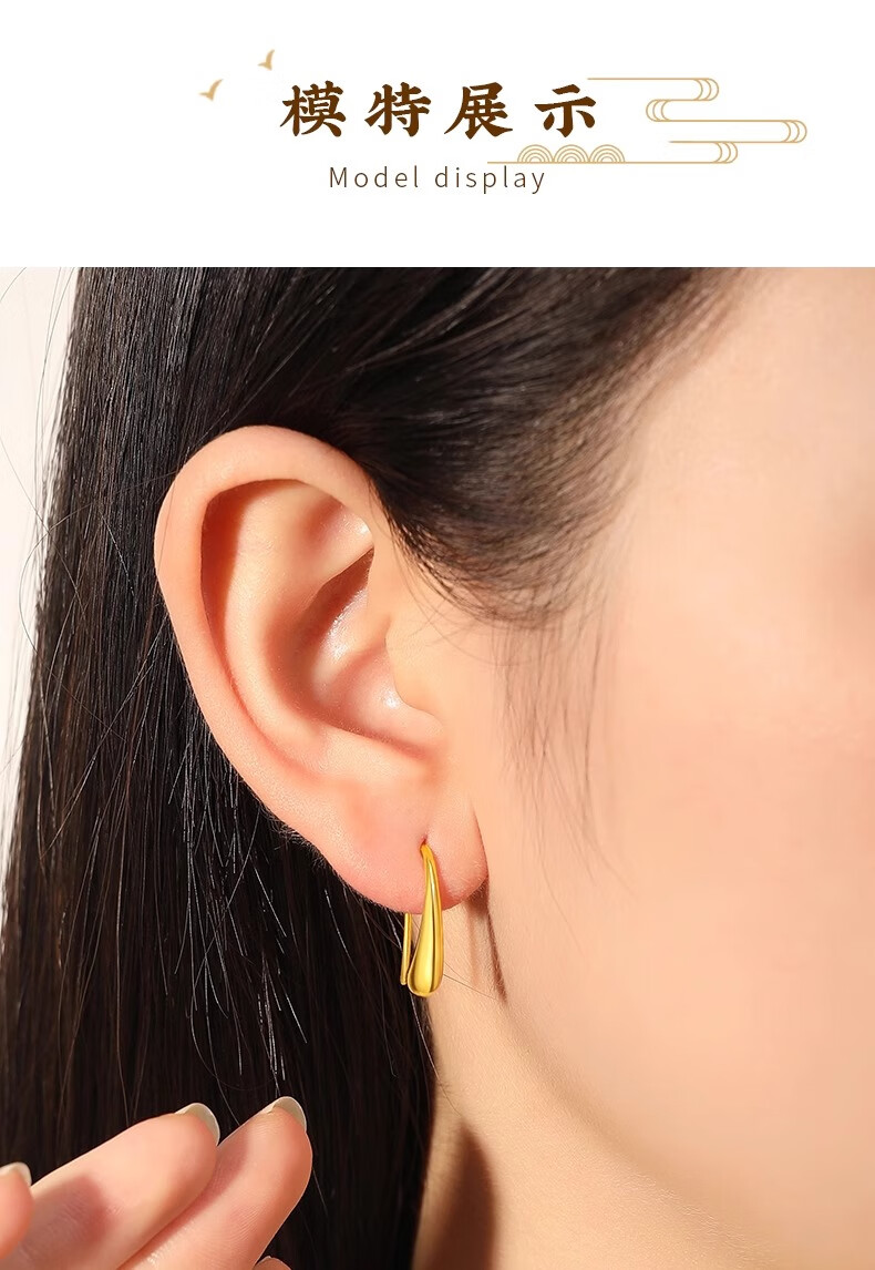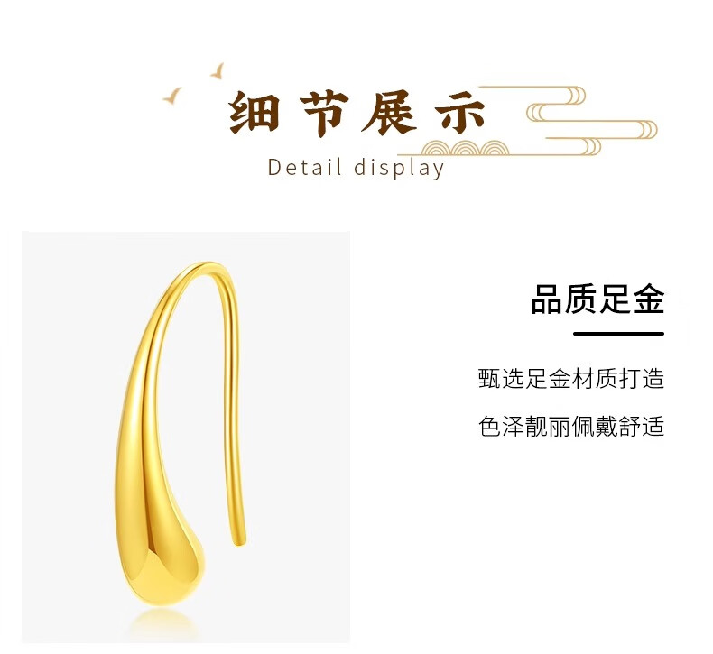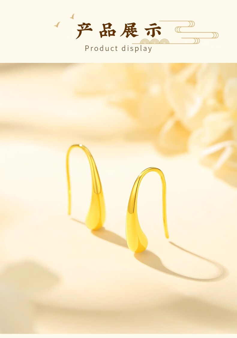 China Gold (CHINA GOLD) Water Drop Gold Earrings Women's Pure Gold Earrings Festival Birthday Gift for Girlfriend and Wife Pure Gold Water Drop Earrings Gold Weight Approximately 1.4g