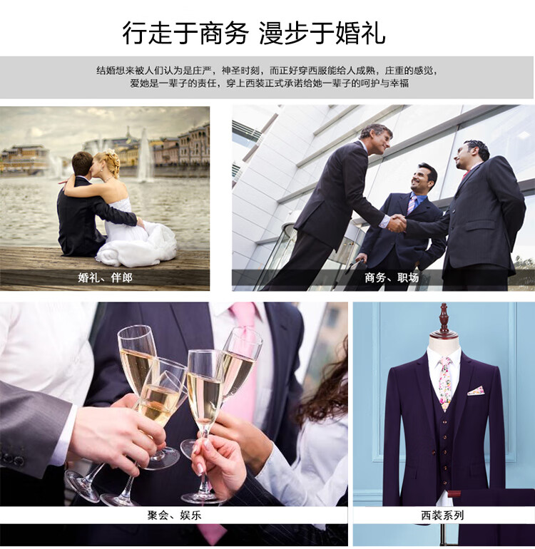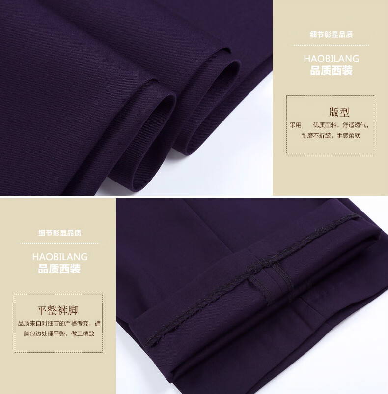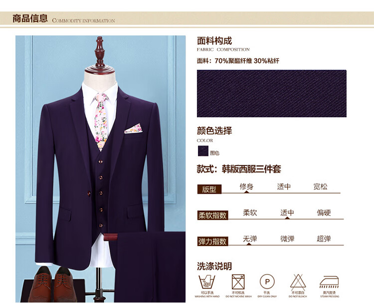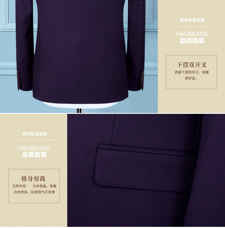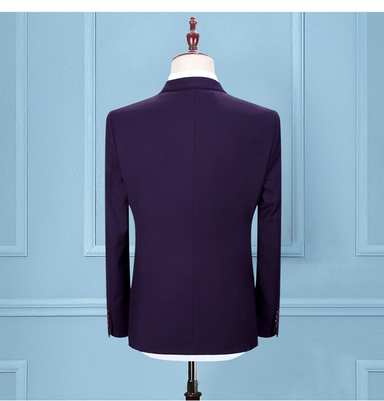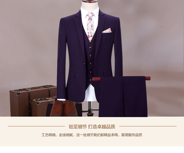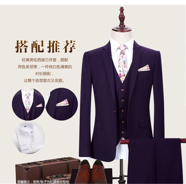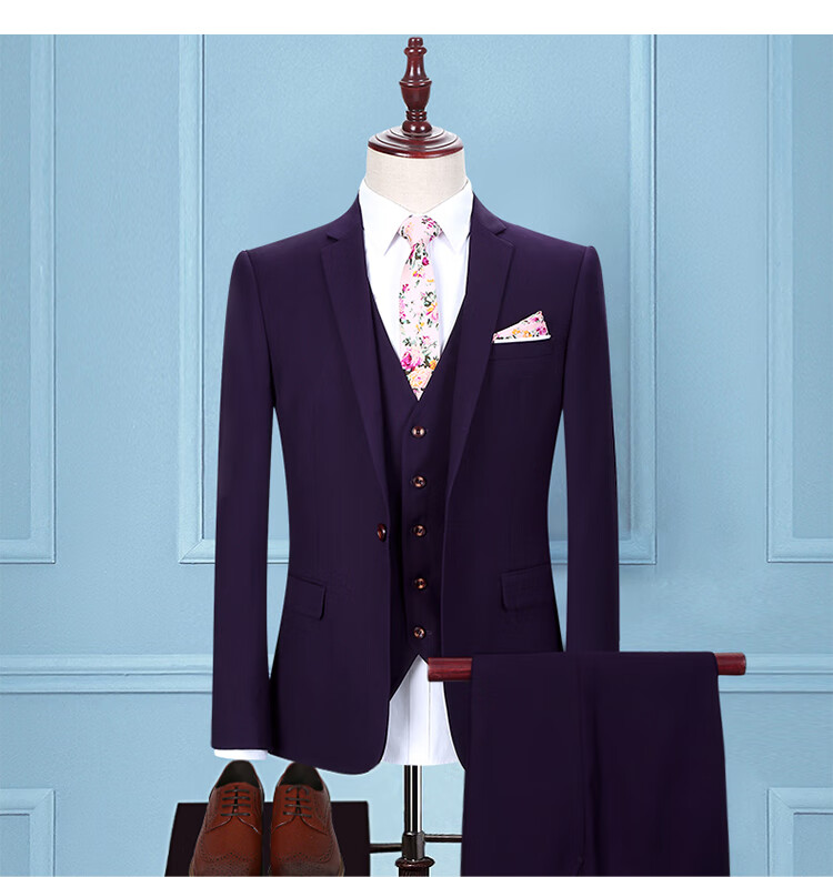 Hengyuanxiang Comfortable Four Seasons Violet Men's Suit Three-piece Small Suit Korean Slim Groom Wedding Dress One-button Violet Suit + Western Pants XS 160/