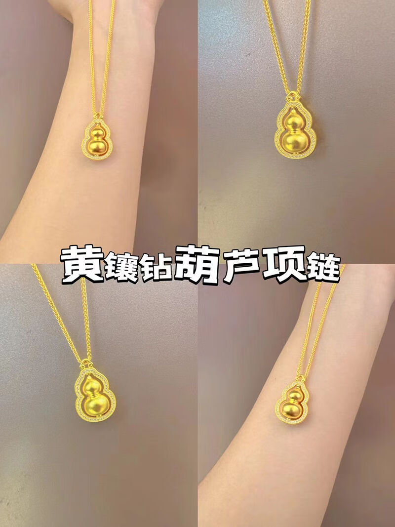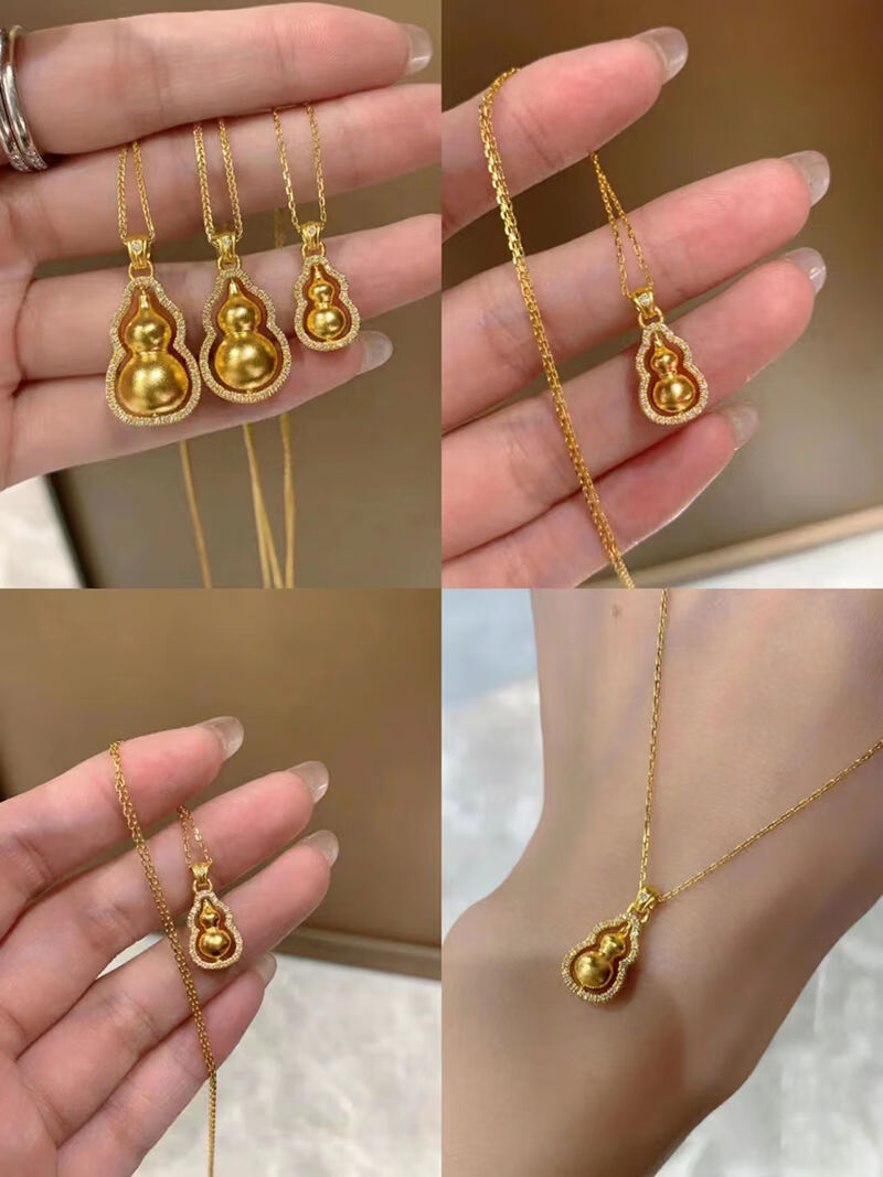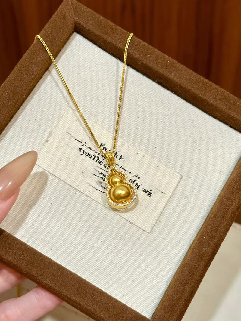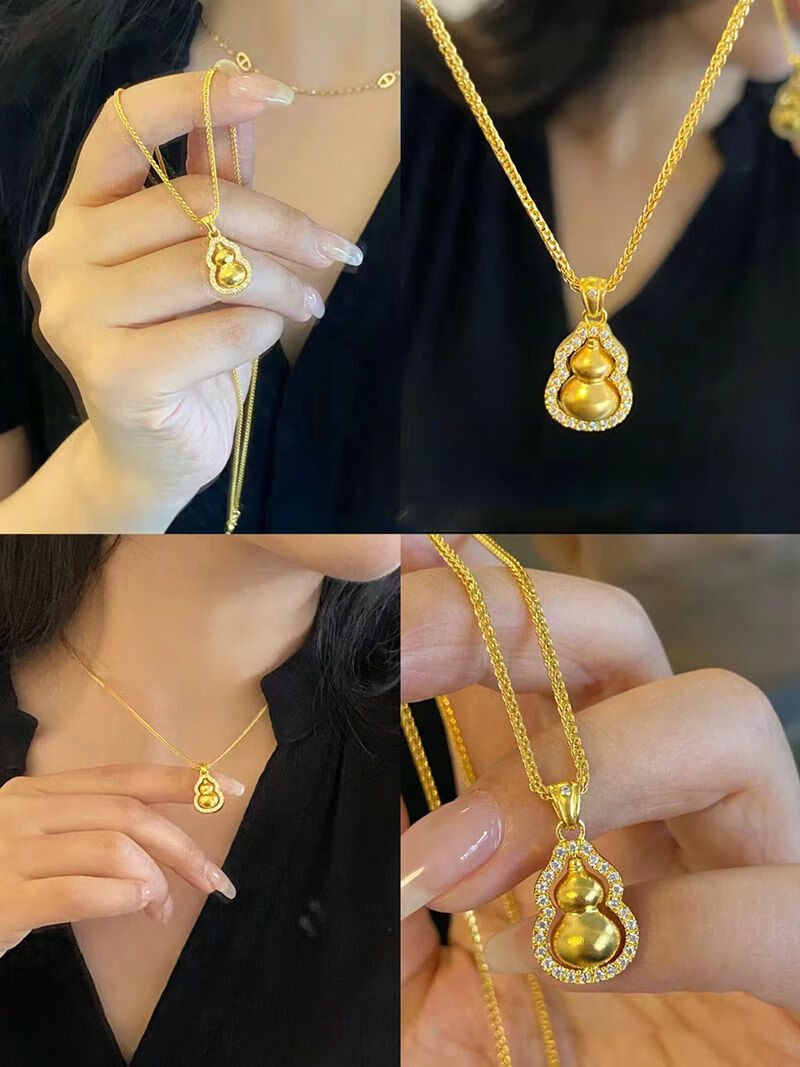 Shien 18K new gold Chopard necklace women's fashion 3D hard gold ancient method set with double-sided diamond Fulu rotating gourd pendant 2024 Chopard chain + gourd pendant