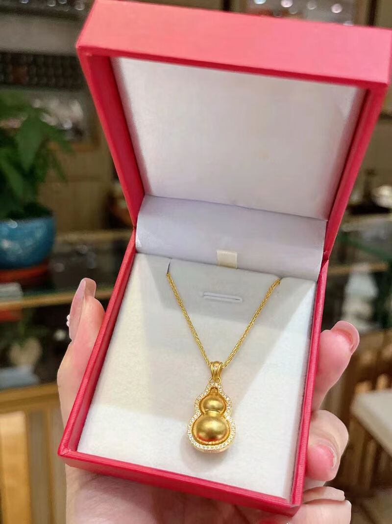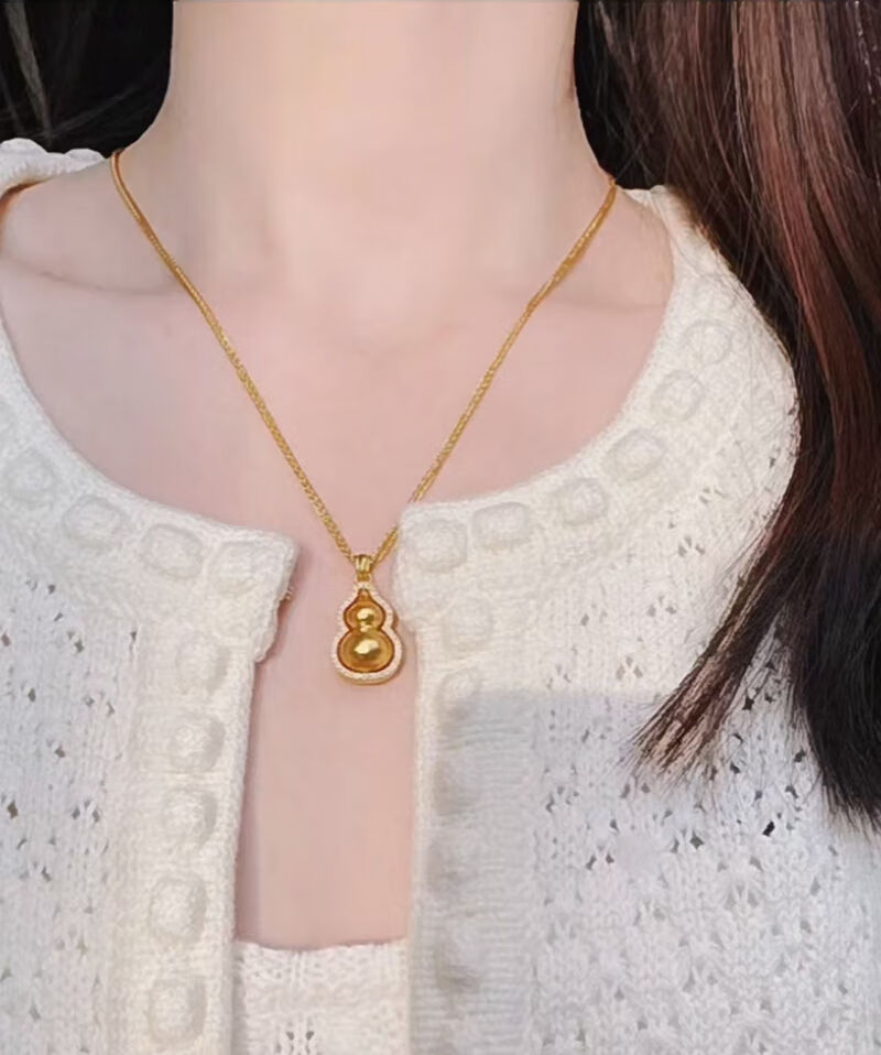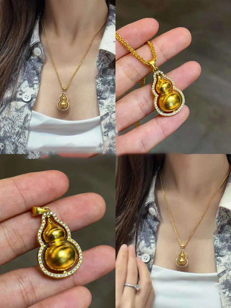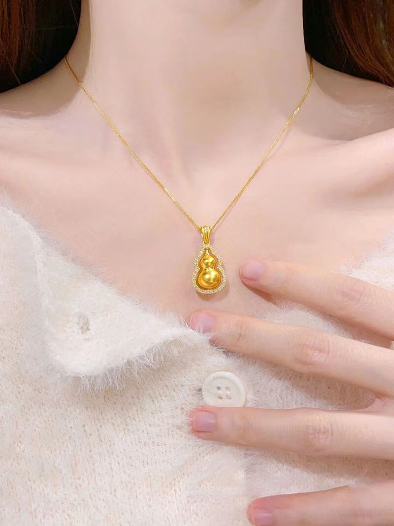 Shien 18K new gold Chopard necklace women's fashion 3D hard gold ancient method set with double-sided diamond Fulu rotating gourd pendant 2024 Chopard chain + gourd pendant