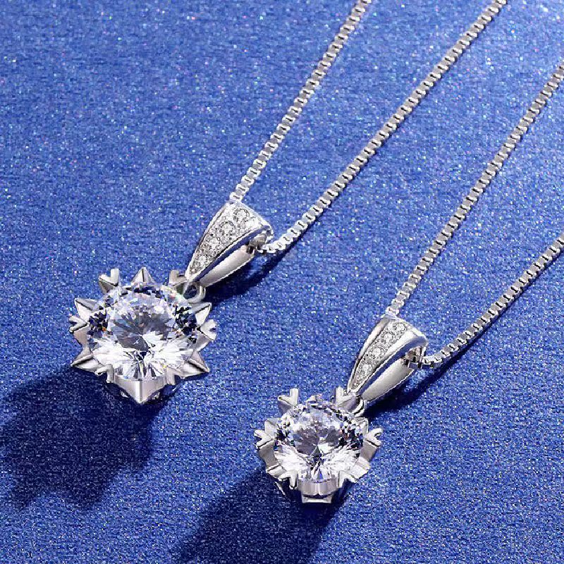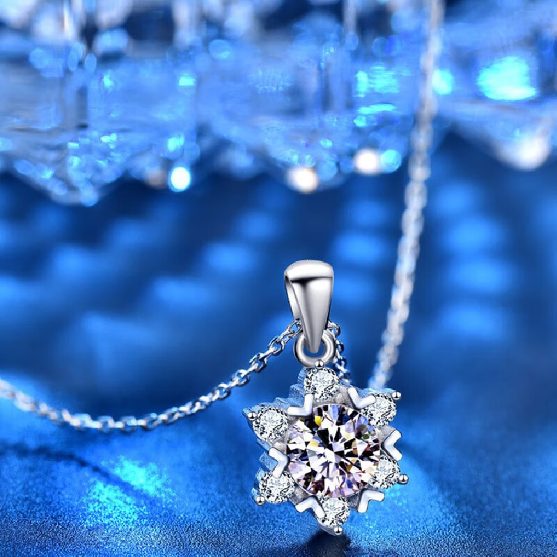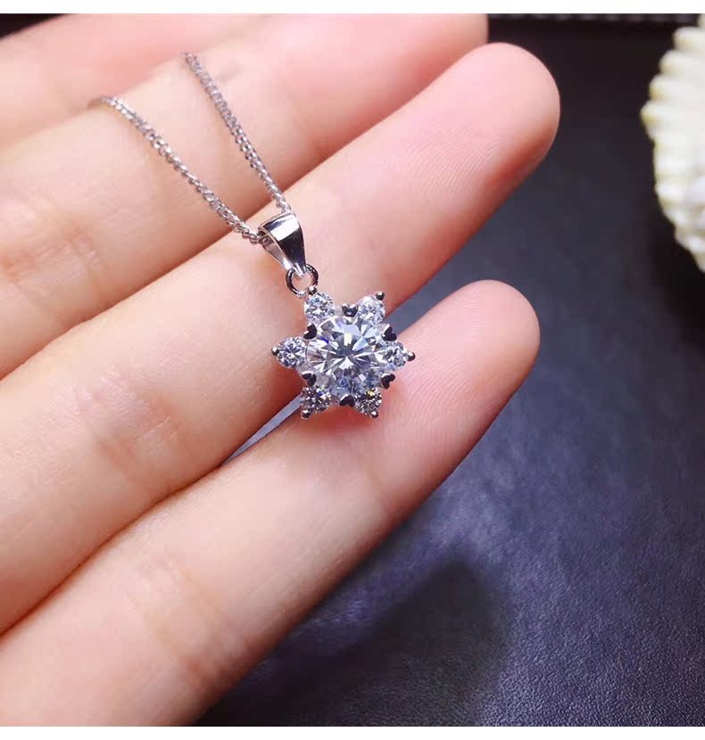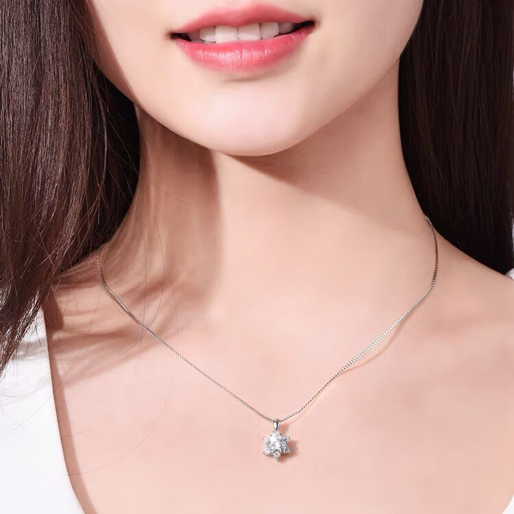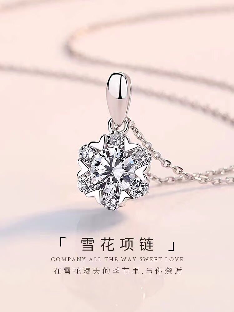 Shien 18K gold inlaid with moissanite new snowflake necklace classic rose gold clavicle pendant broken romantic gift PT950 platinum 2 carat necklace