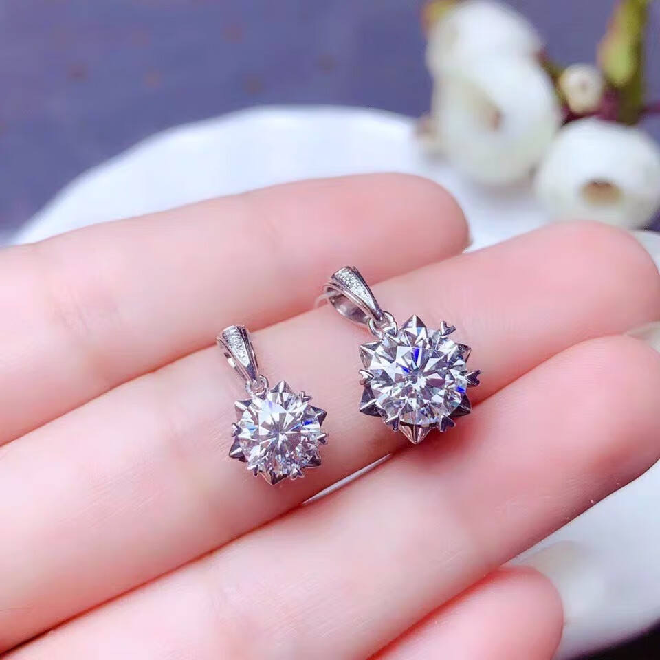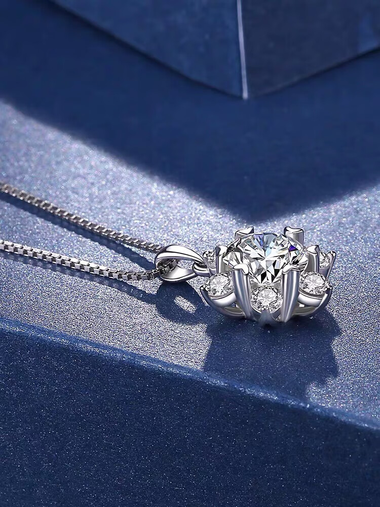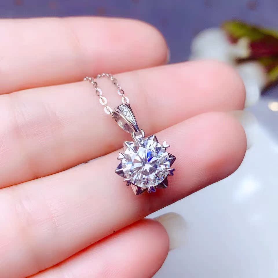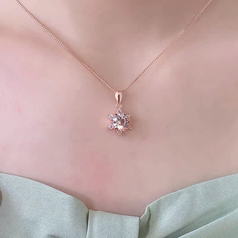 Shien 18K gold inlaid with moissanite new snowflake necklace classic rose gold clavicle pendant broken romantic gift PT950 platinum 2 carat necklace