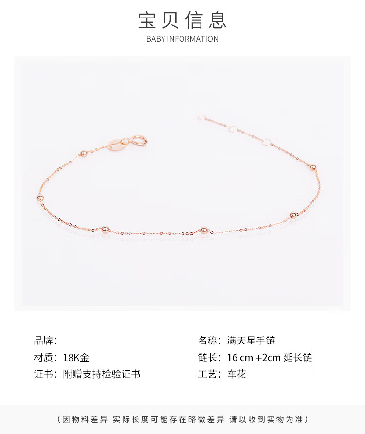Shien 18k rose gold bracelet K gold thin bracelet color gold bracelet au750 bracelet for women 18k gold fashion gold bracelet for women 18K rose gold baby's breath bracelet