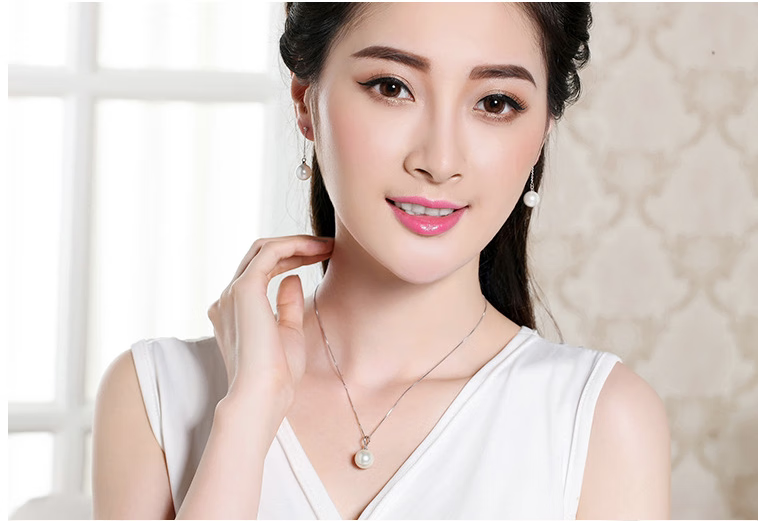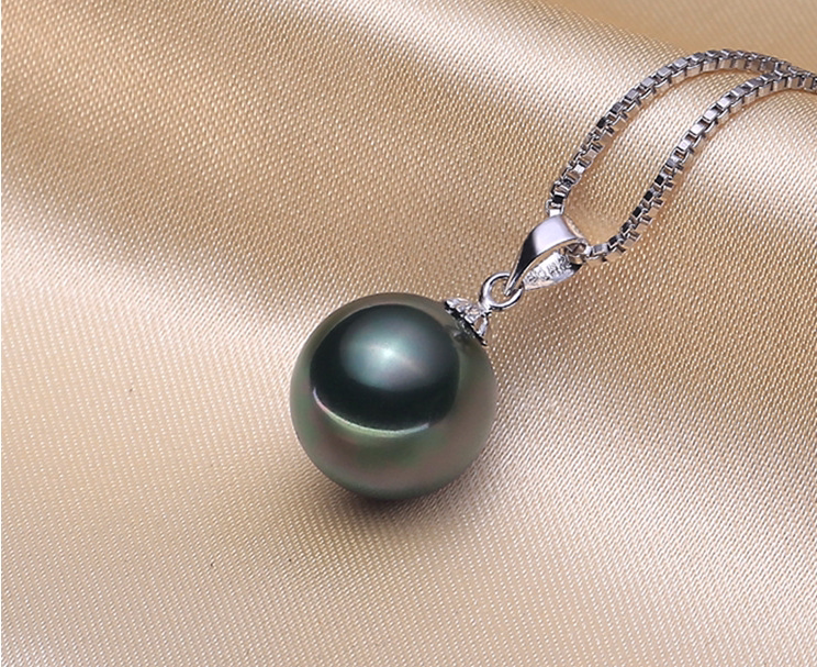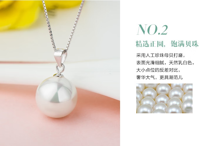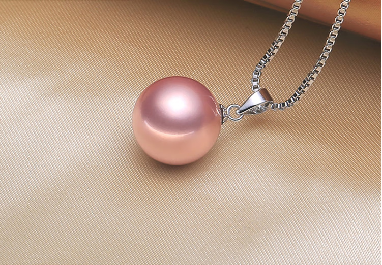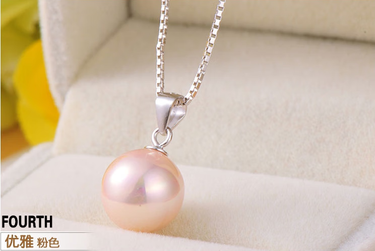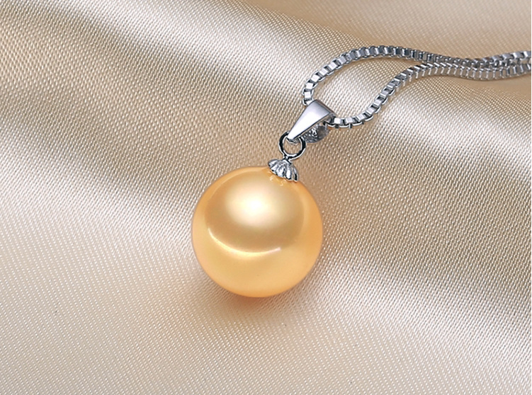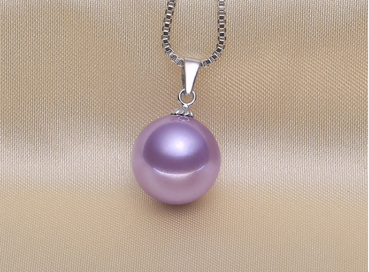 Shumo S925 sterling silver natural seawater mother-of-pearl round pearl pendant women's pearl necklace Korean version white 12 mm with chain