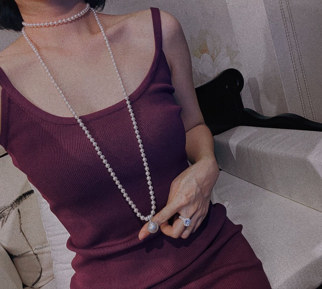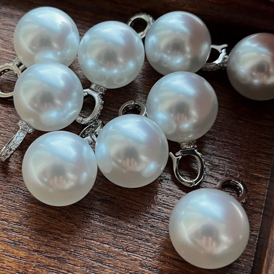 Shumo S925 silver cold light pearl pendant buckle can be opened and delivered with a long chain 12mm