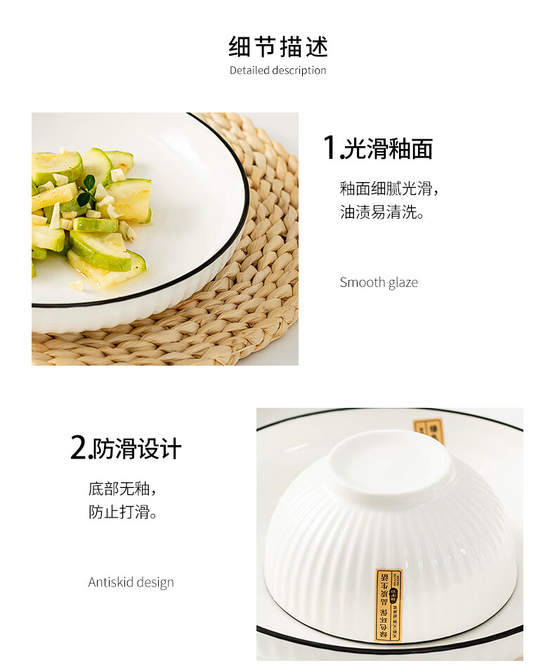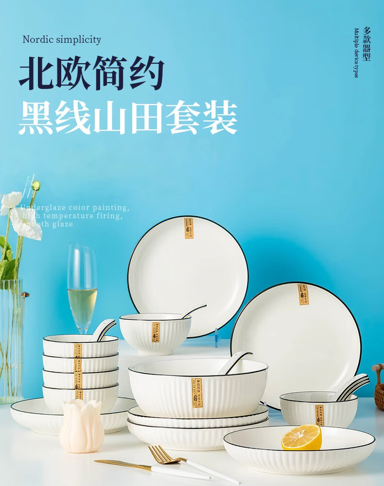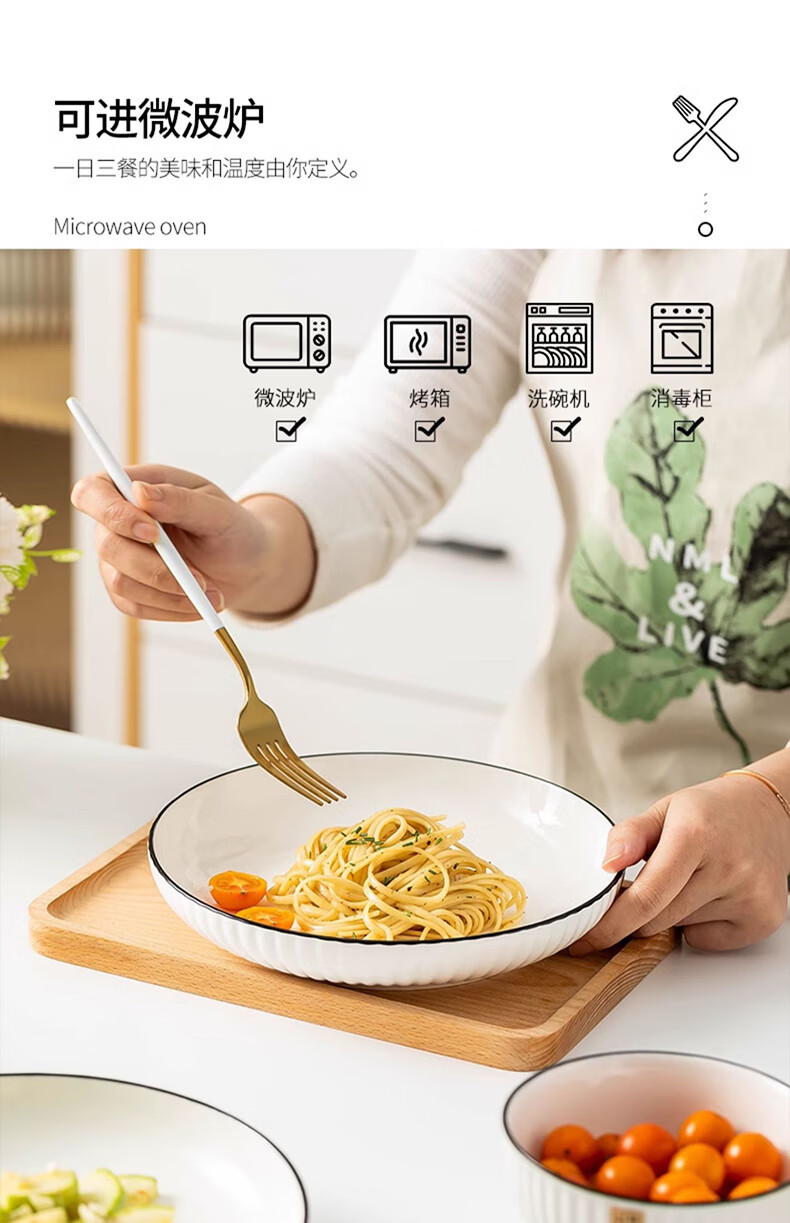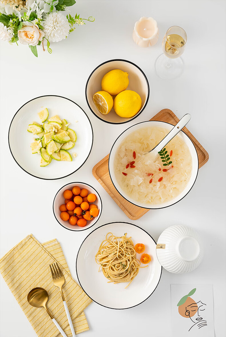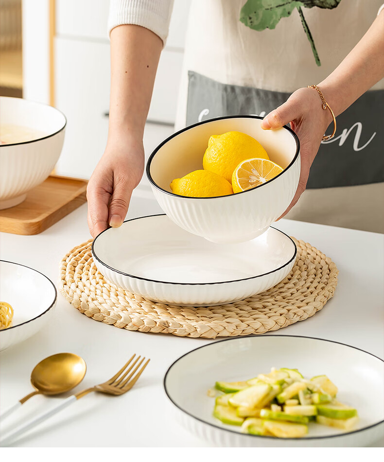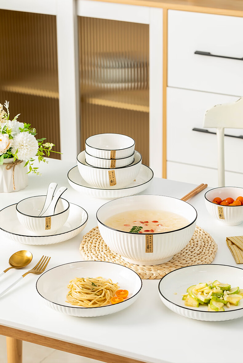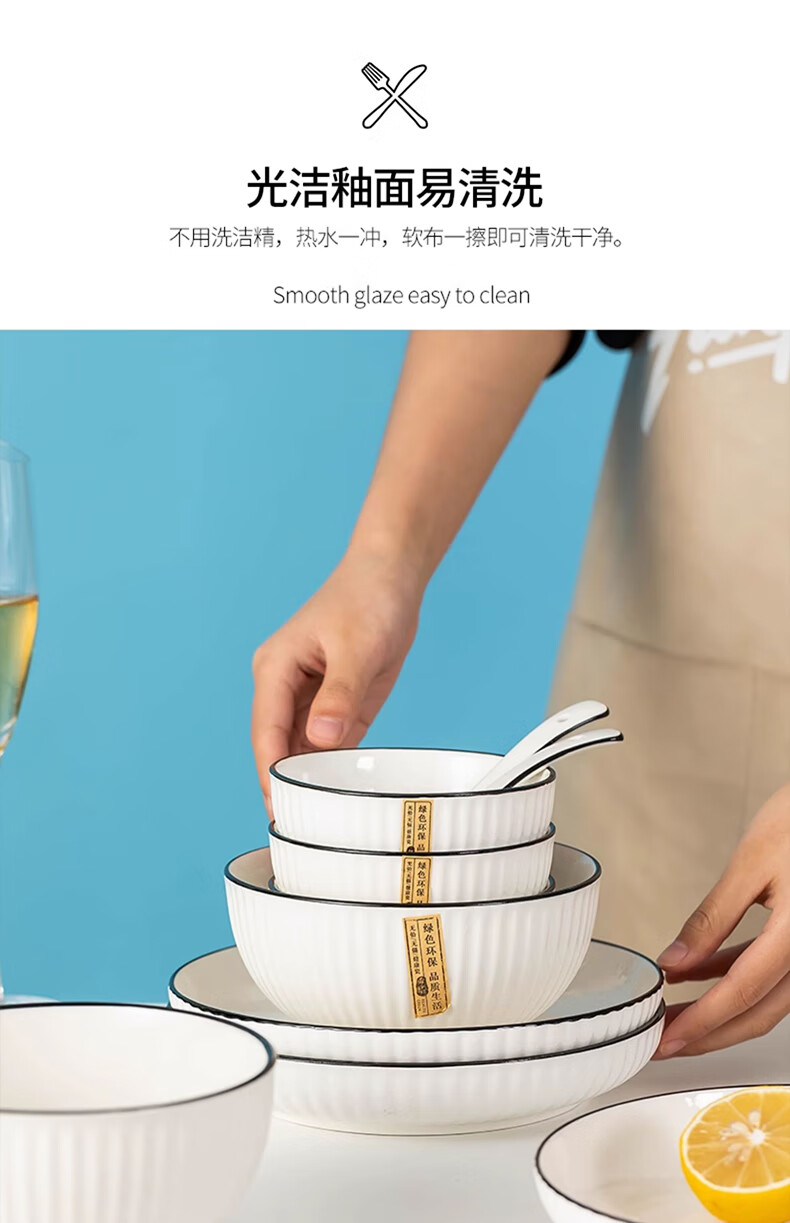 Eight-piece set of bowls and plates for household dishes Nordic style modern creative ceramic bowls and chopsticks combination plate spoon rice bowl tableware Eight-piece set of bowls and plates (2 bowls, 2 plates, 2 spoons, 2 chopsticks)