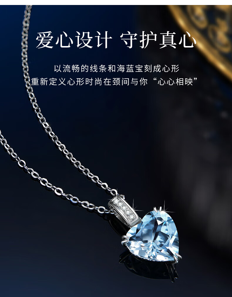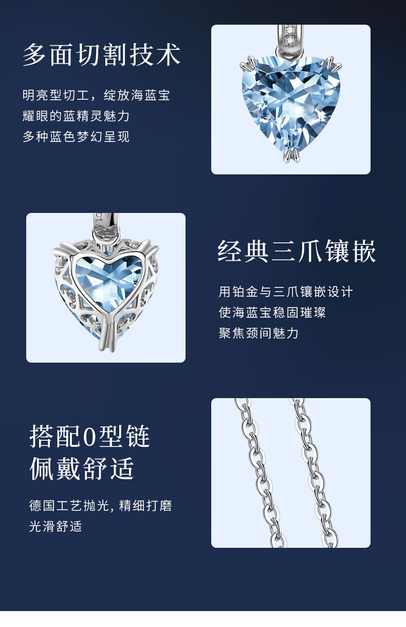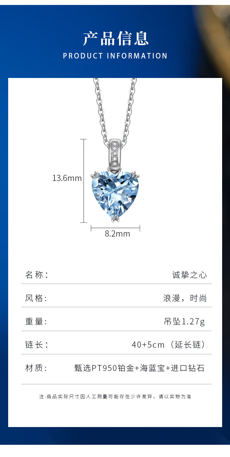 Fanzheshi Platinum pt950 Heart of the Ocean Necklace for Girls Aquamarine Pendant Diamond Valentine's Day Gift Platinum Topaz Necklace-Brand Gift Box