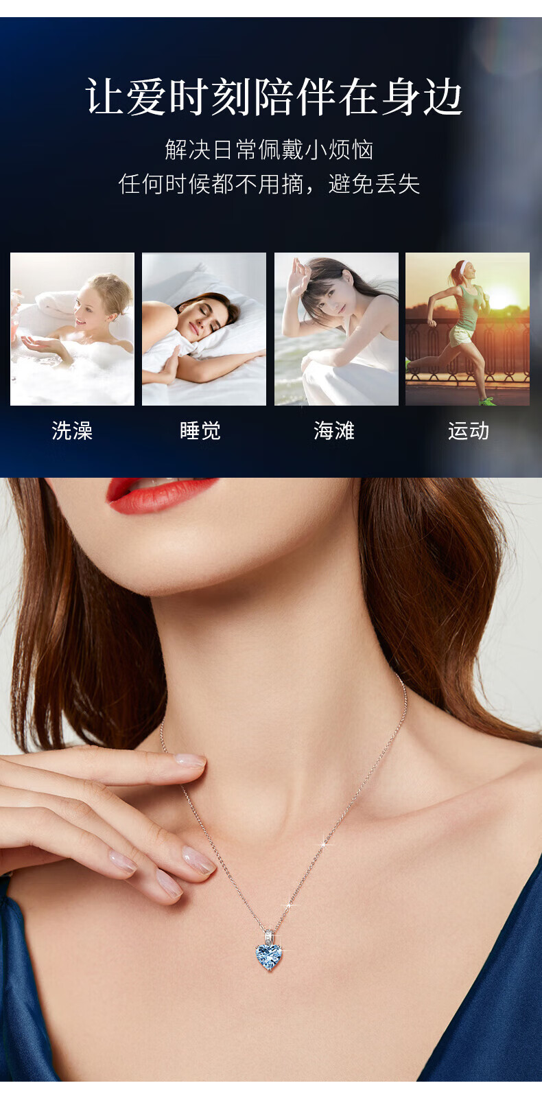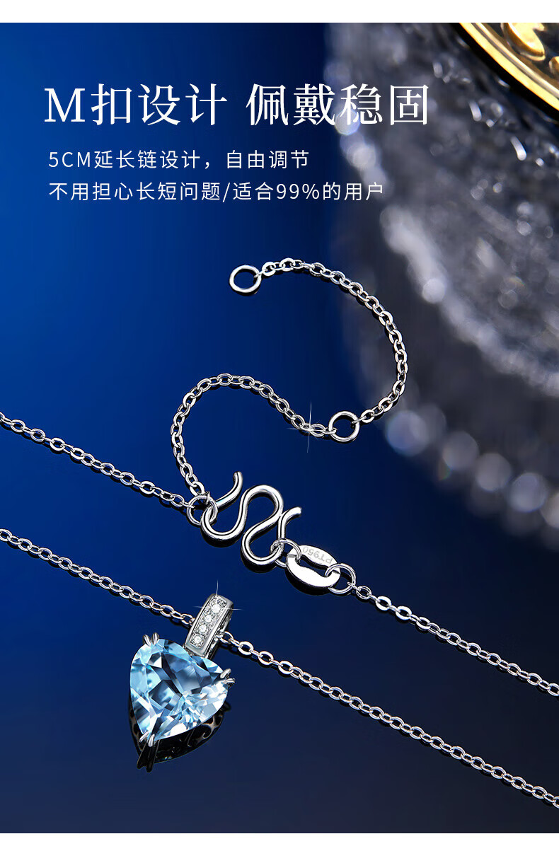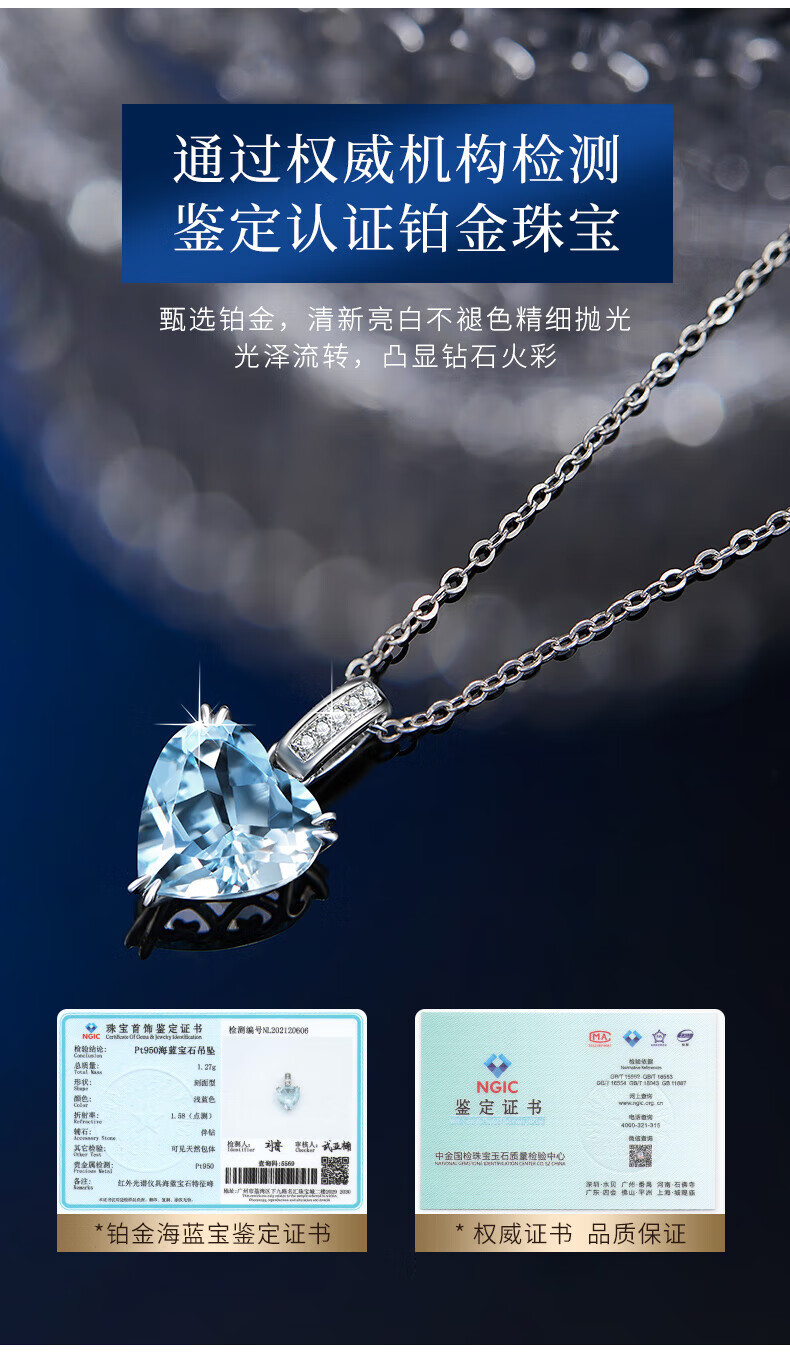 Fanzheshi Platinum pt950 Heart of the Ocean Necklace for Girls Aquamarine Pendant Diamond Valentine's Day Gift Platinum Topaz Necklace-Brand Gift Box