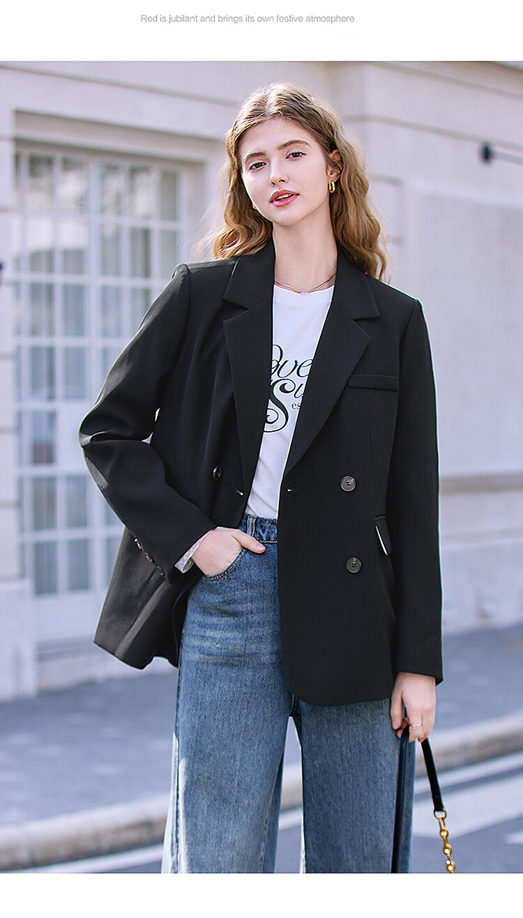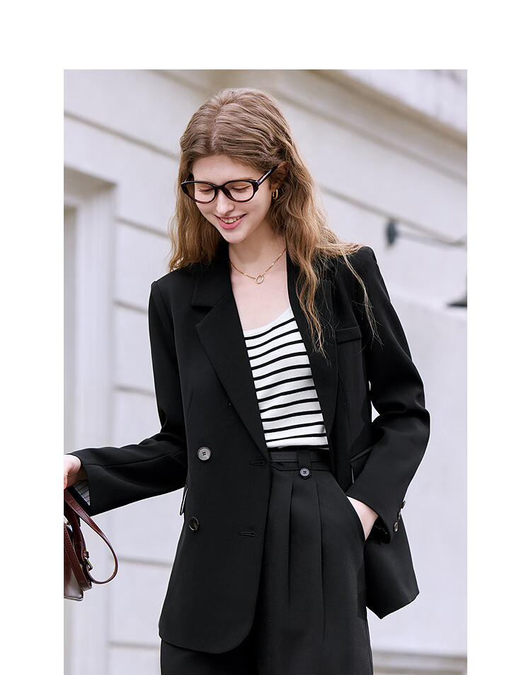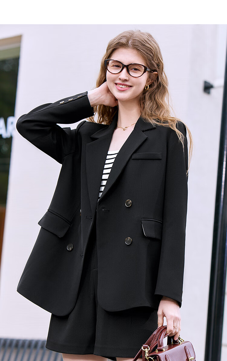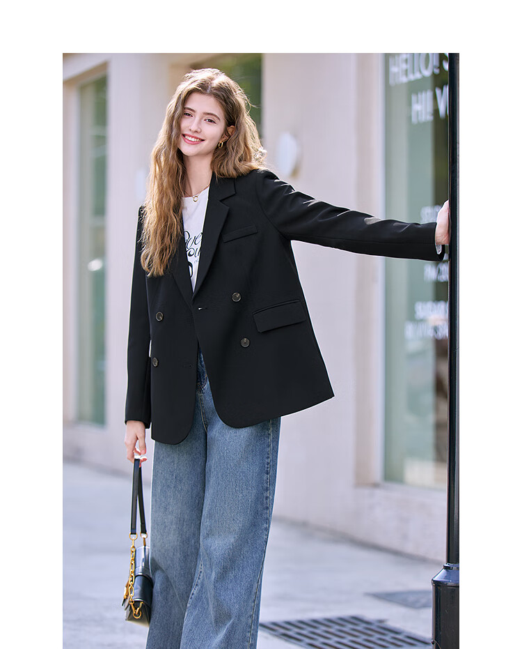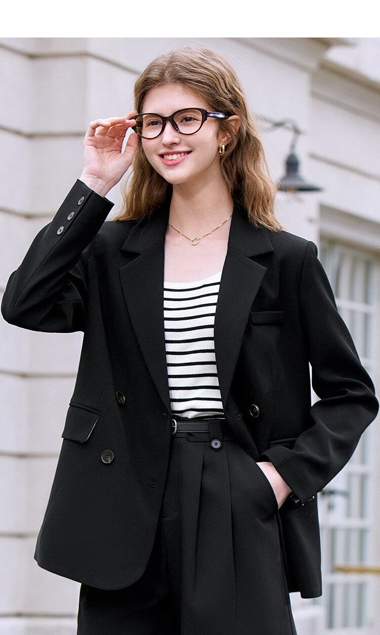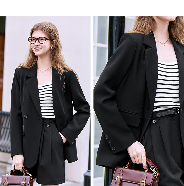 Betu Women's 2025 Spring New Suit Versatile Fashion Commuting Casual Suit Jacket Women 2502T55 Black M