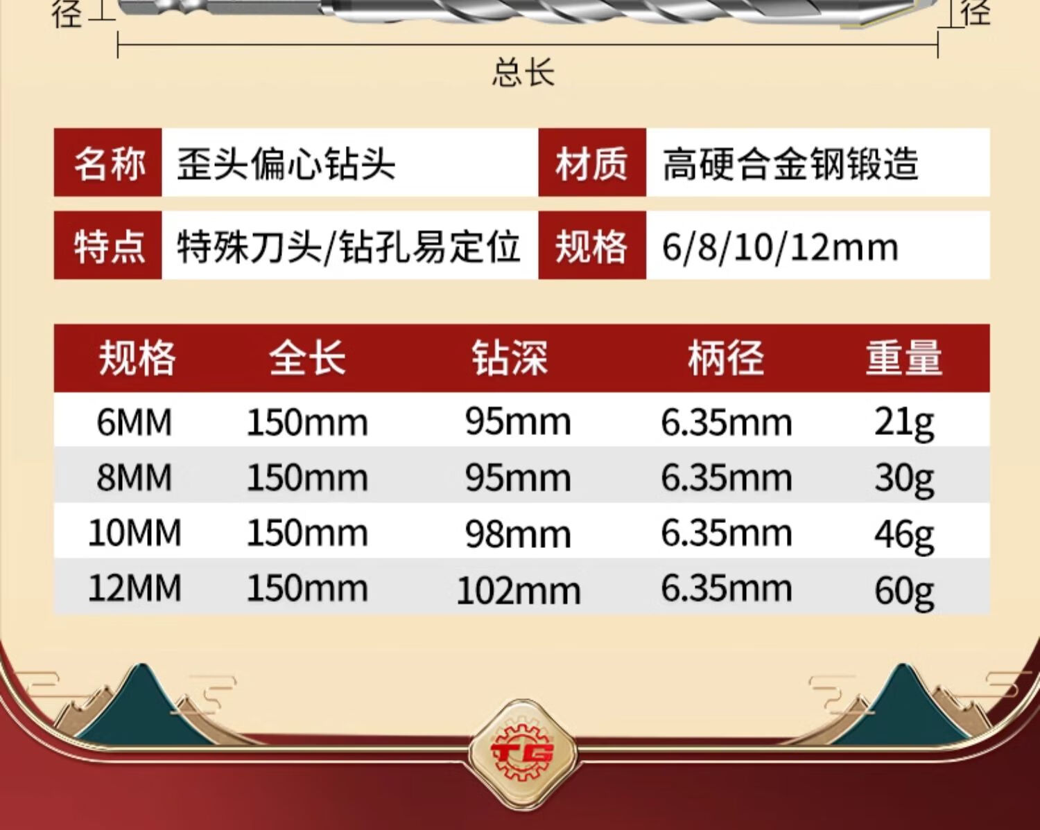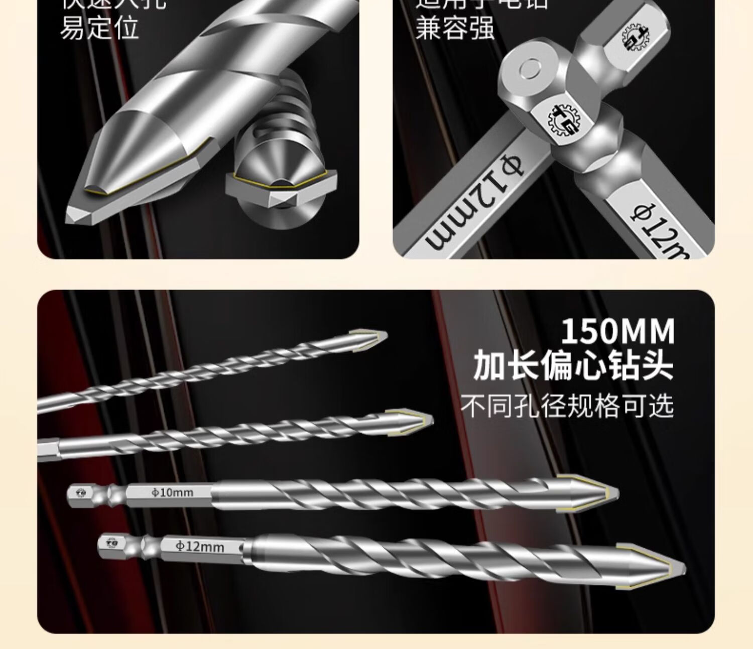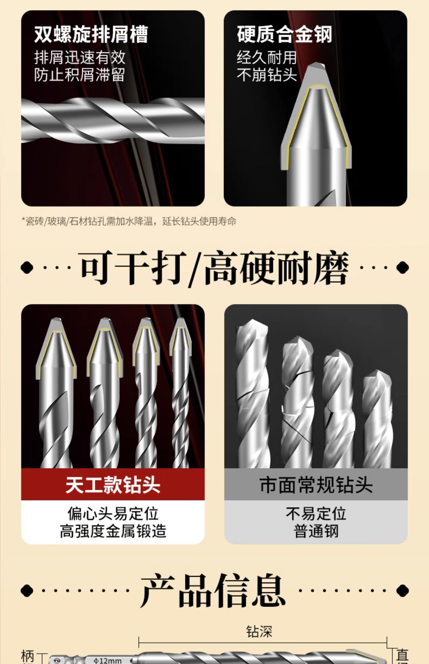 TIANGONG extended super-hard tilted head eccentric drill bit for drilling ceramic tile concrete dry-drilling ceramic glass drill bit alloy steel super hard alloy 8mm 1 piece No Specifications