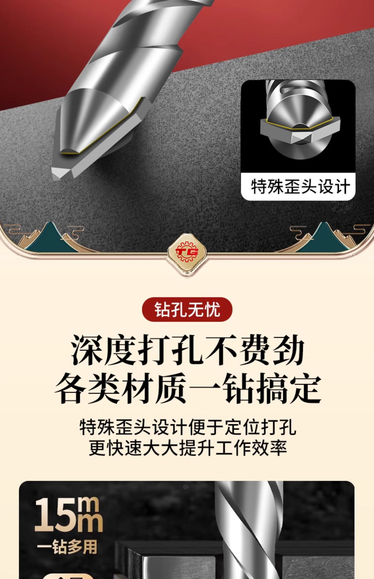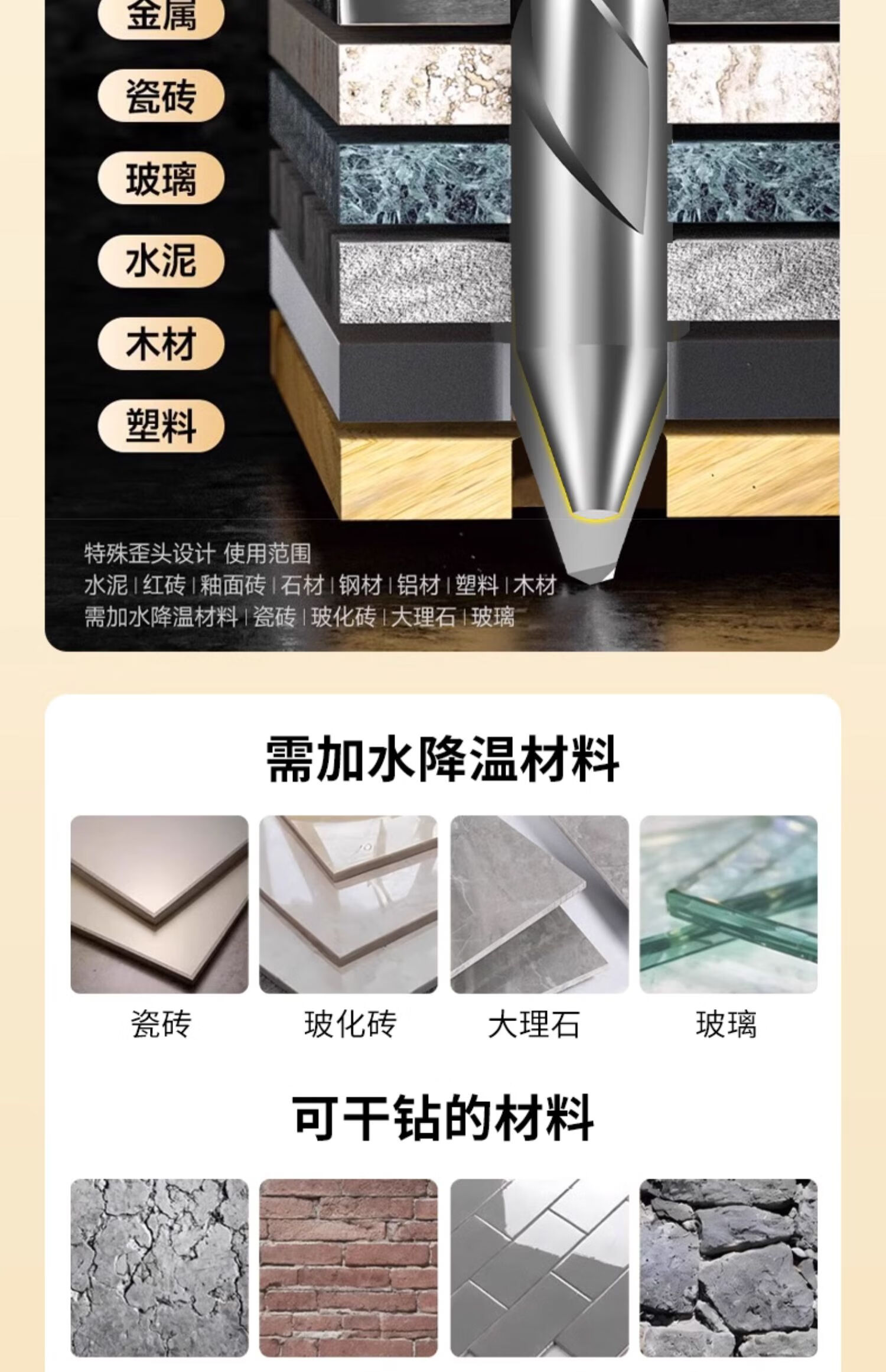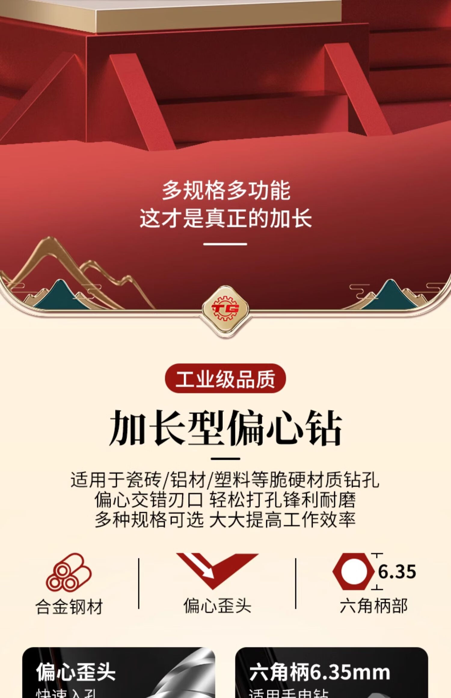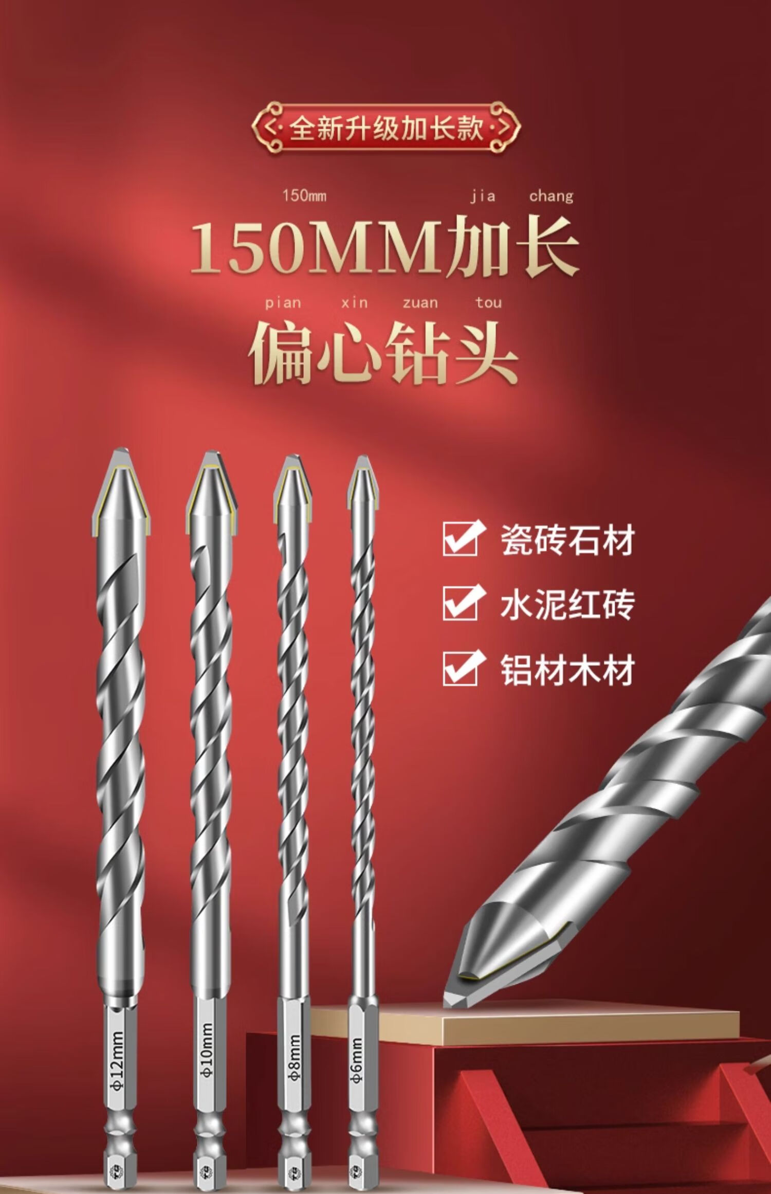 TIANGONG extended super-hard tilted head eccentric drill bit for drilling ceramic tile concrete dry-drilling ceramic glass drill bit alloy steel super hard alloy 8mm 1 piece No Specifications