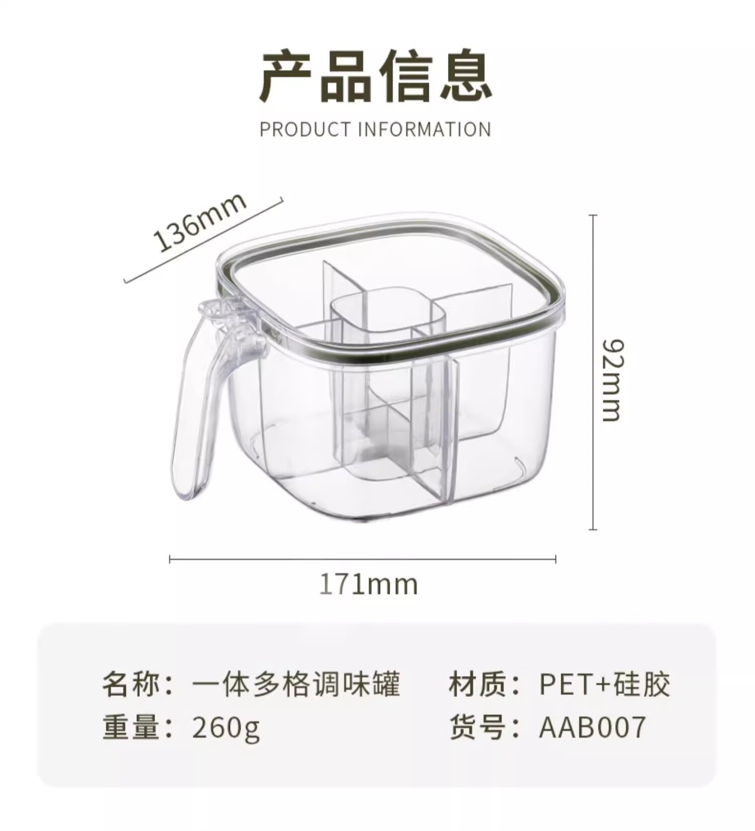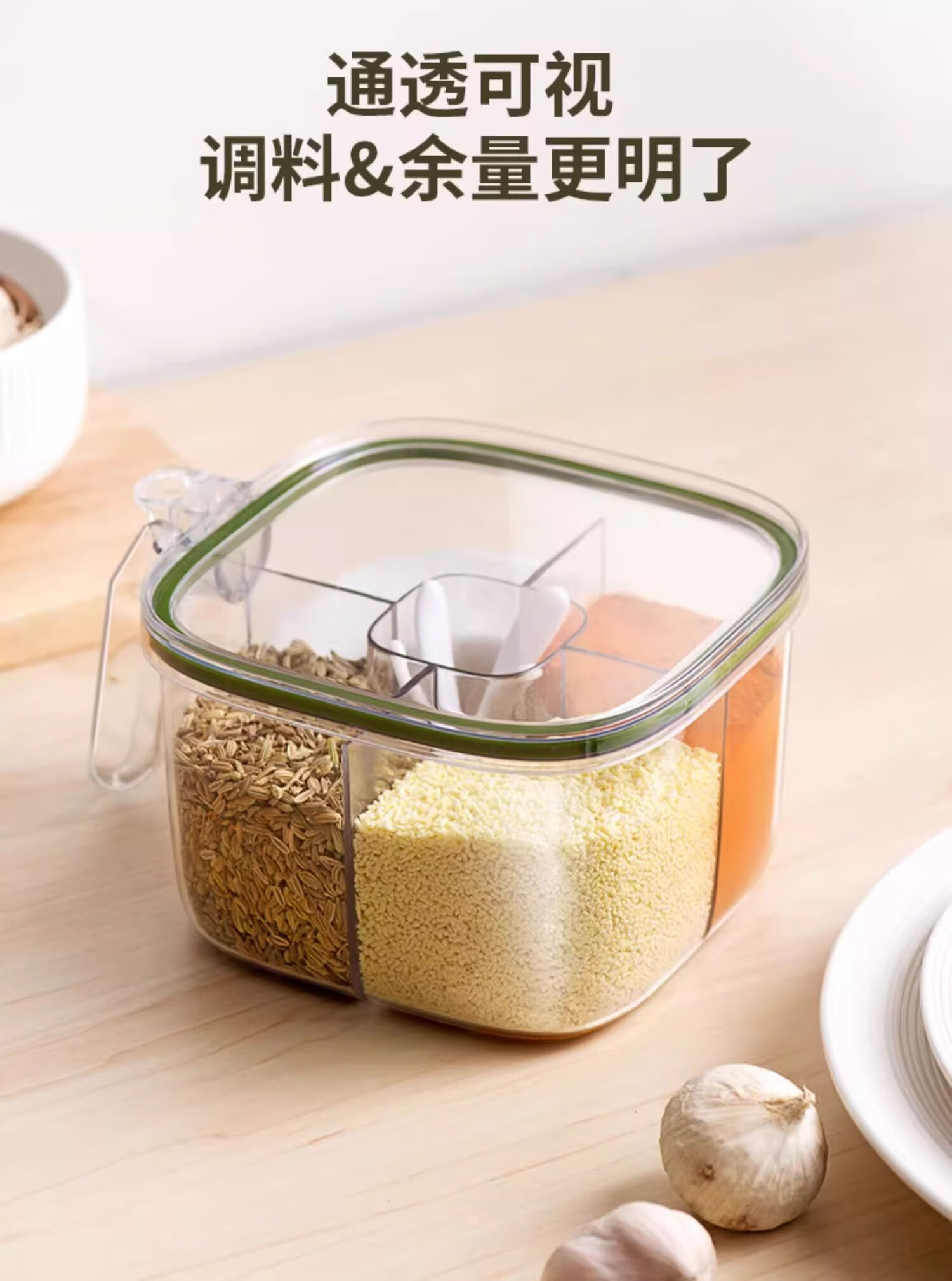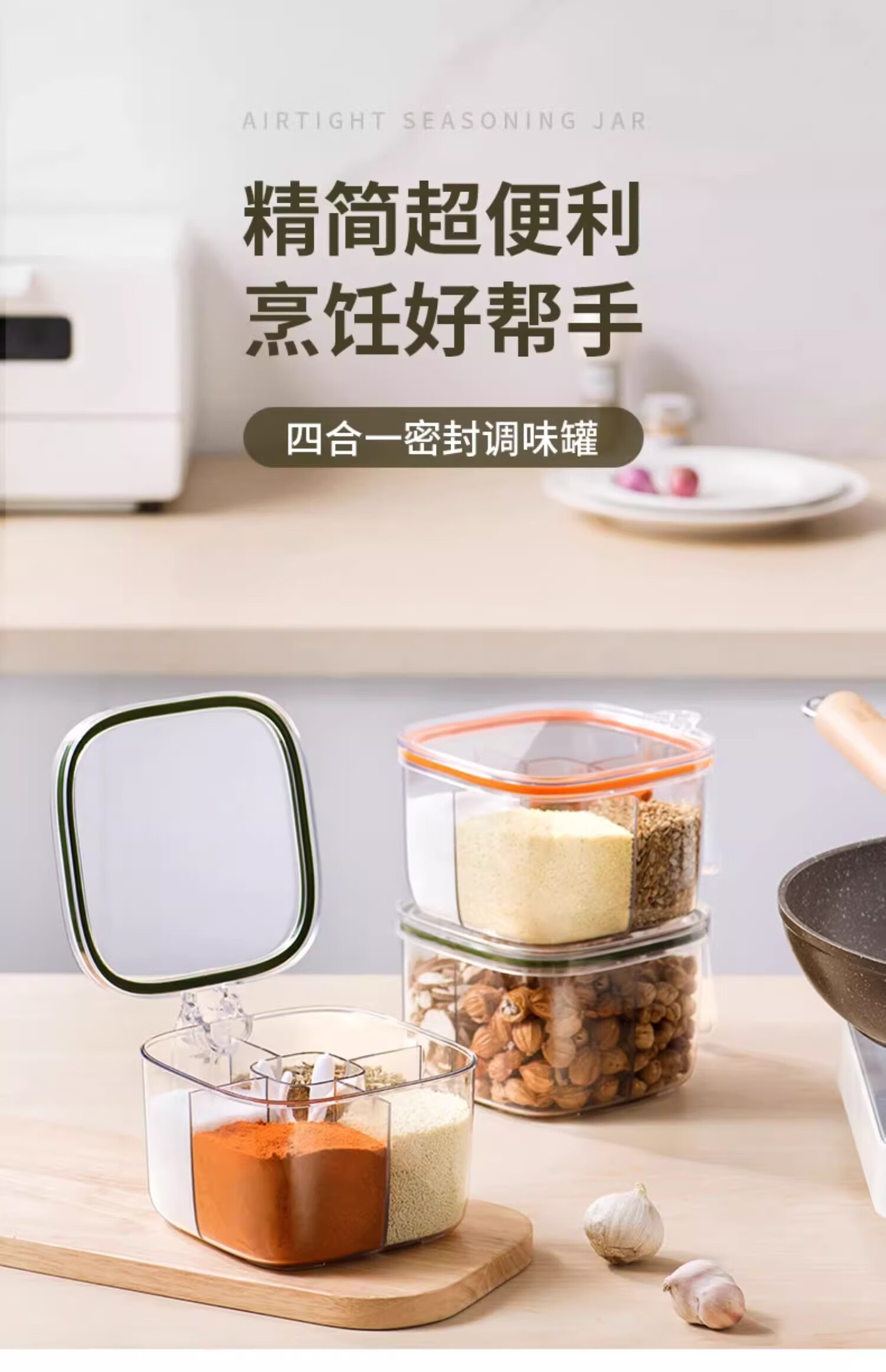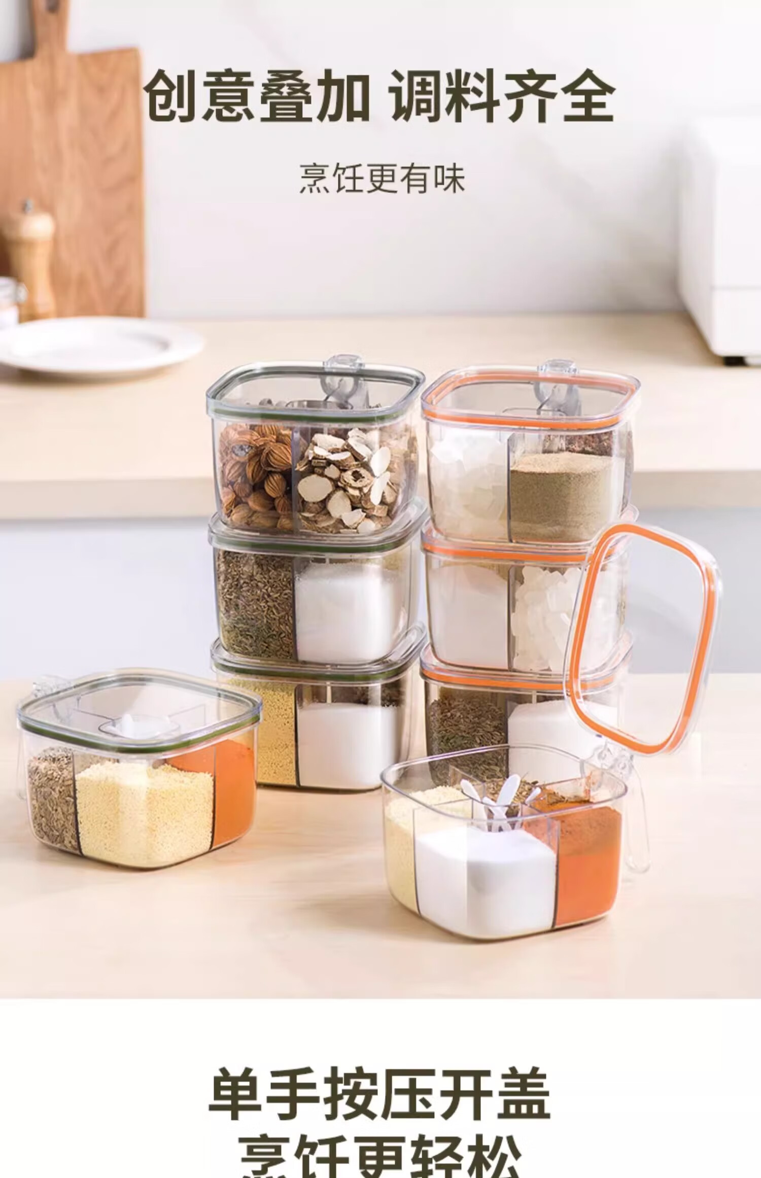Youqin seasoning box household kitchen seasoning jar combination set one-piece multi-grid salt, MSG and pepper storage condiment seasoning bottle Vibrant orange multi-grid/independent spoon slot