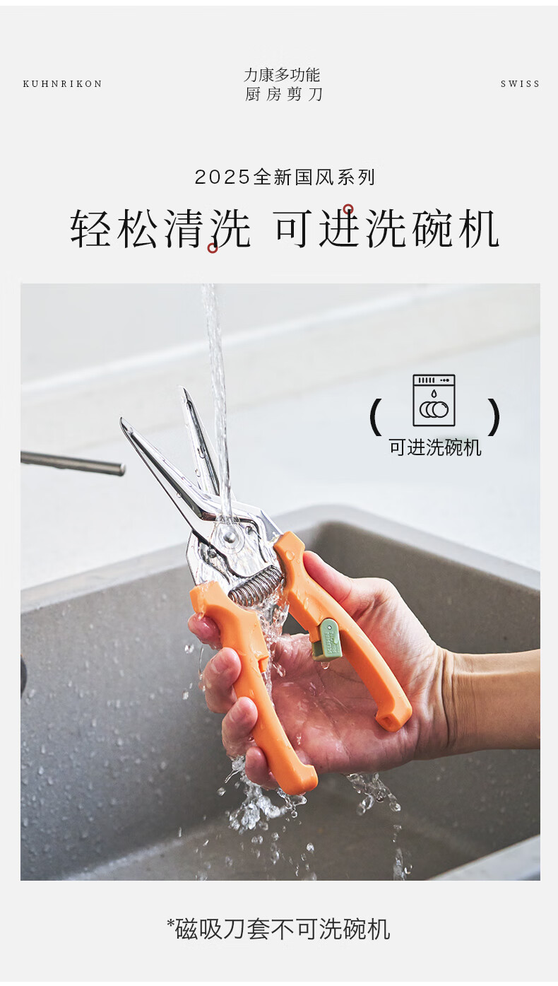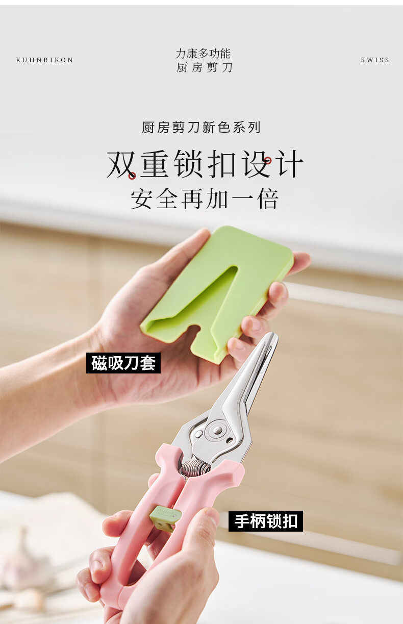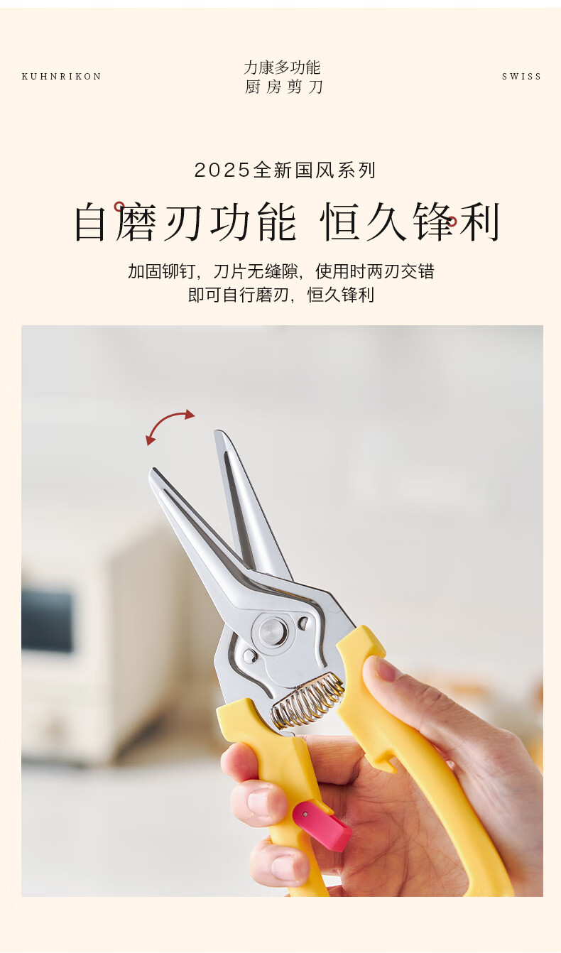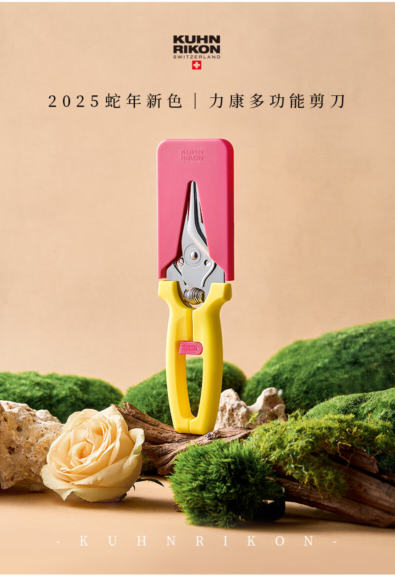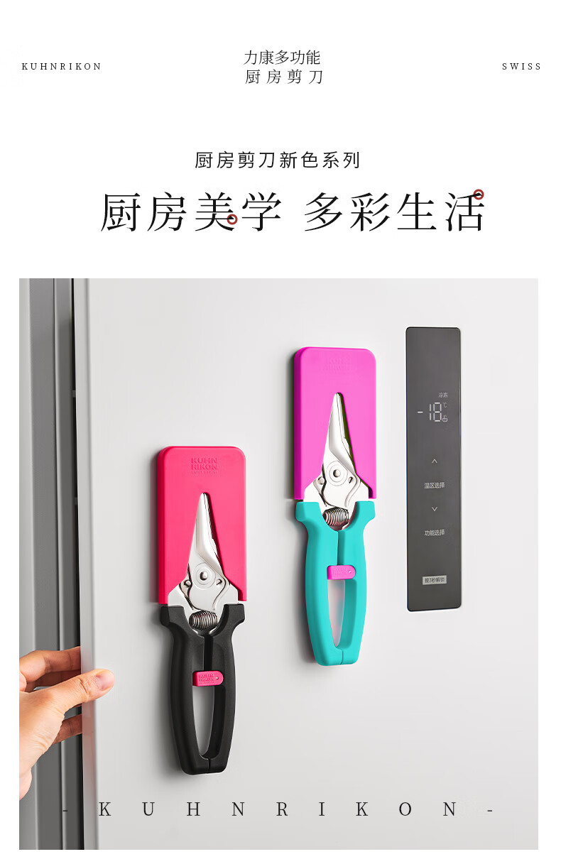 瑞士力康(KUHN RIKON)【2025新品】瑞士力康磁吸厨房剪刀家用强力鸡骨剪食物剪刀蛇年款 黄亦玫红 2025蛇年新色