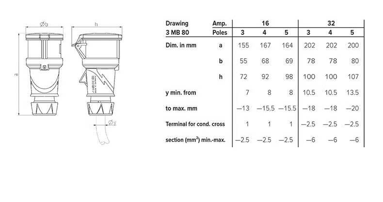 MENNEKES16A 32A 380V industrial connector waterproof and dustproof aviation plug male and female docking 3409 3416 32A-5P-3416