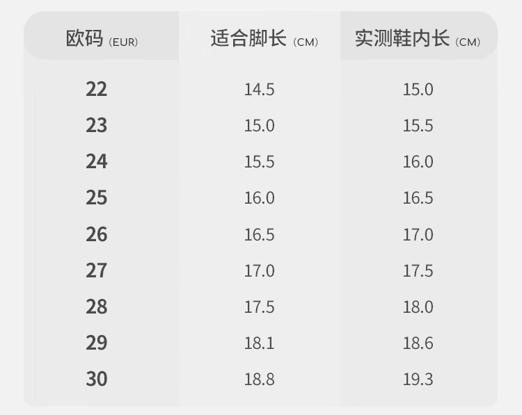 Length (cm) 22.8 23.1 23.5 24.1 24.5 25.1 25.7 26 26.7 27.3 27.9 28.6 29.2