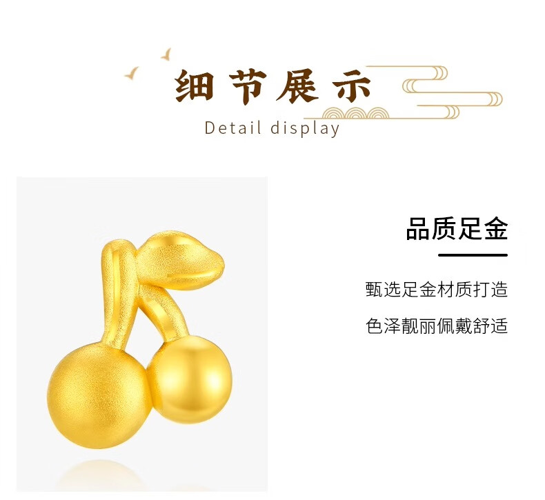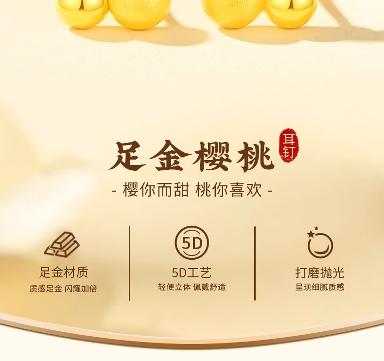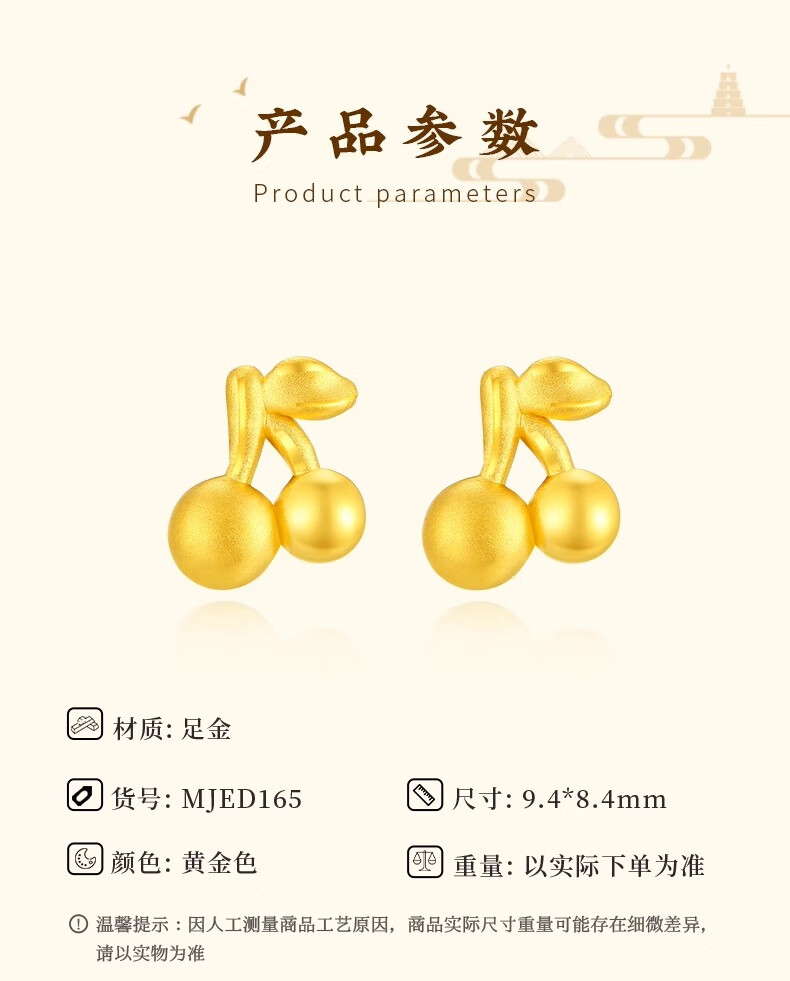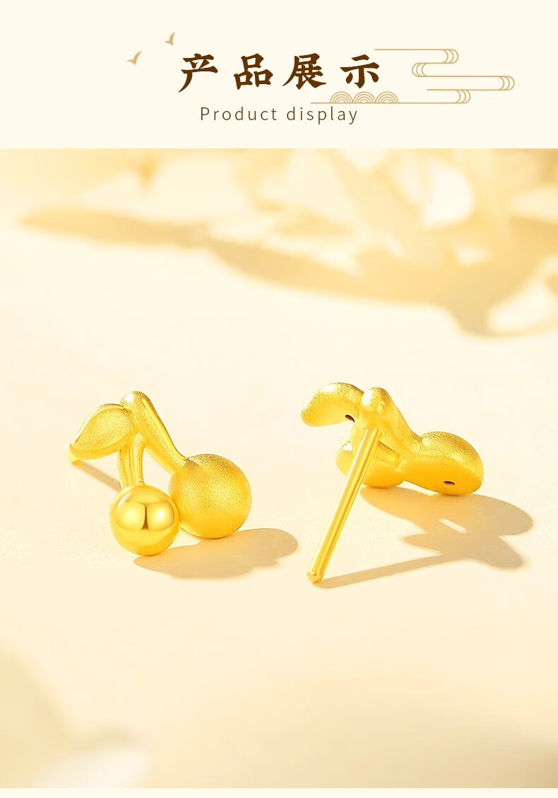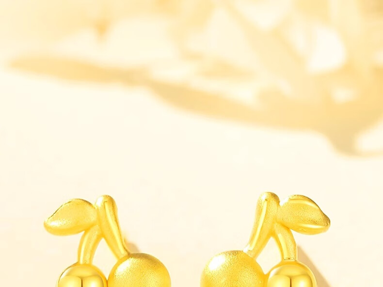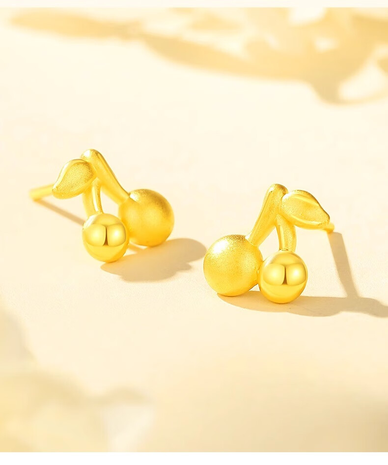 CHINA GOLD Cherry Gold Earrings for Women 999 Pure Gold Earrings Birthday Gift for Girlfriend and Wife Pure Gold Earrings (gold weighs about 1.1g)