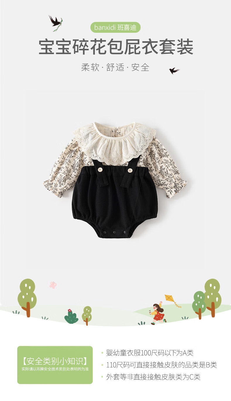 Banxidi baby clothes autumn clothing infant jumpsuit baby floral bag fart overalls suit small month old outing clothes beige 80cm