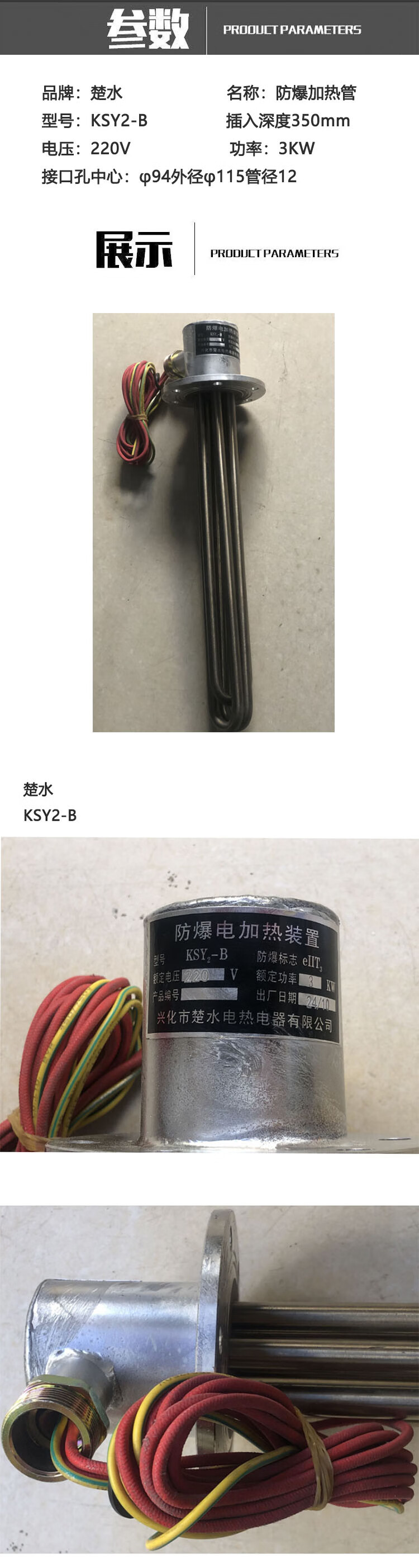 Chushui KSY2-B explosion-proof heating pipe 220V/3KW/depth 350/interface hole center 94 outer diameter 115 pipe diameter 12 units pieces