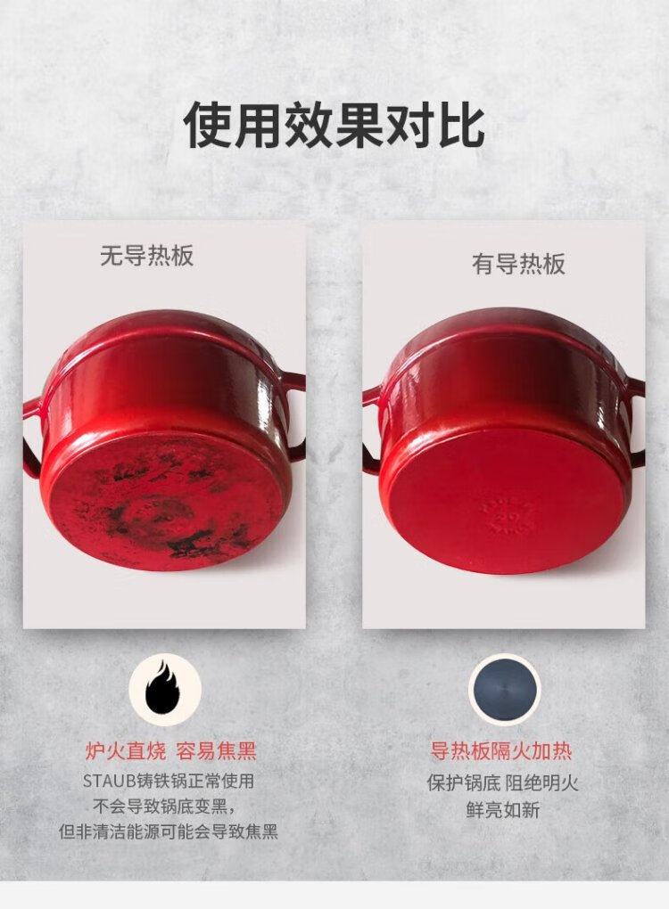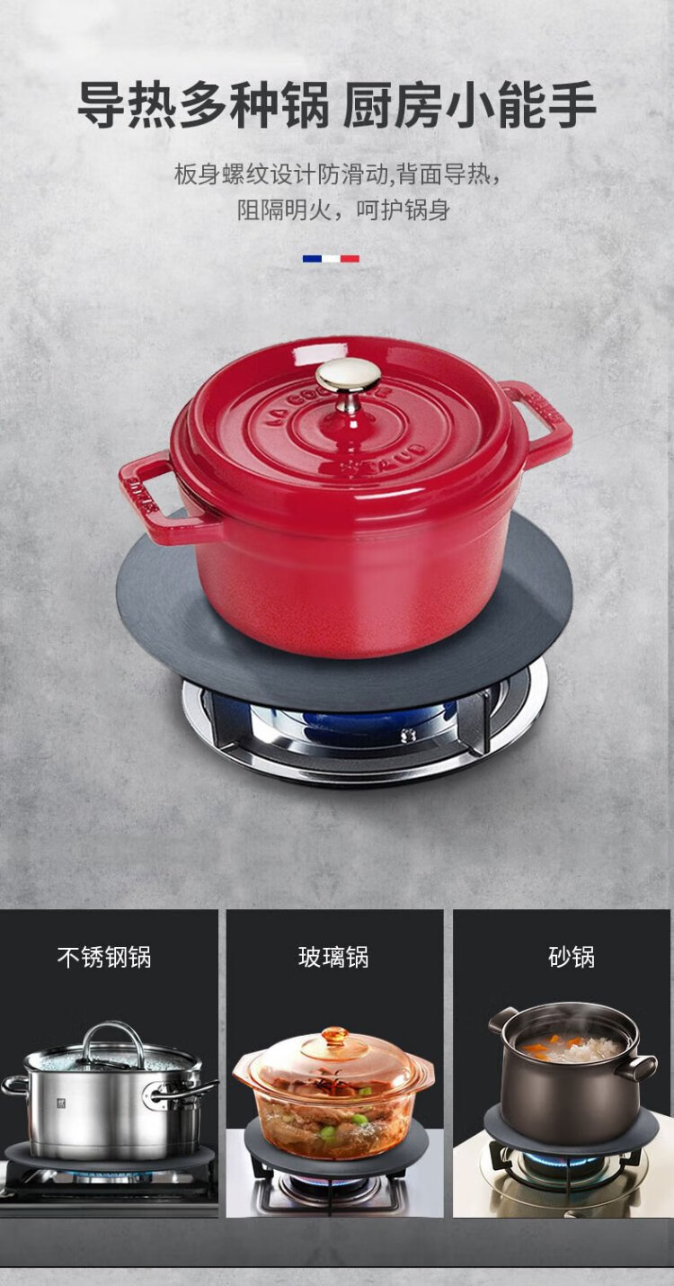 Staub energy-saving heat conduction plate enamel pot heat conduction plate protects the bottom of the pot and prevents discoloration Thermal conduction pot quick thawing plate Thermal conduction thawing plate 24cm