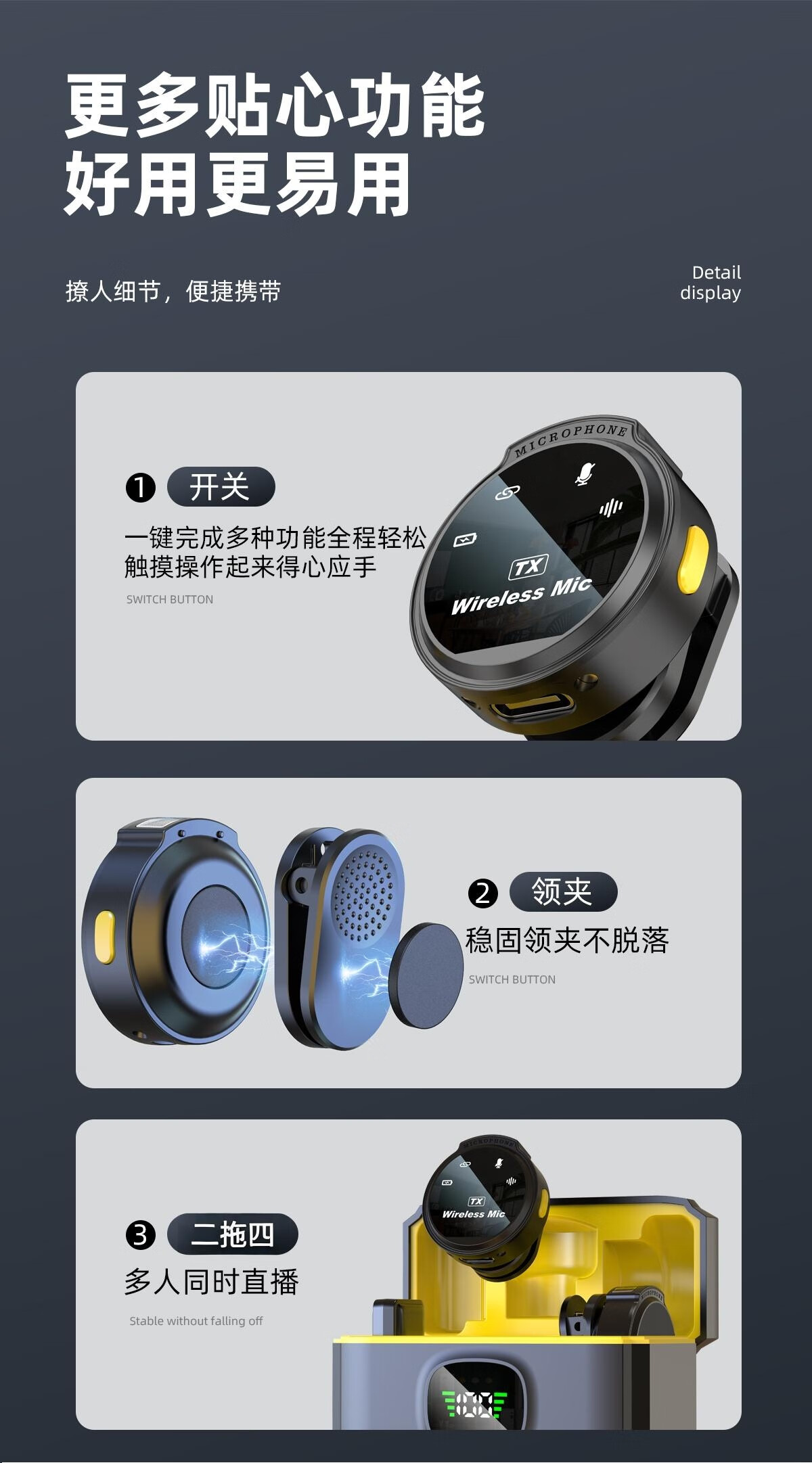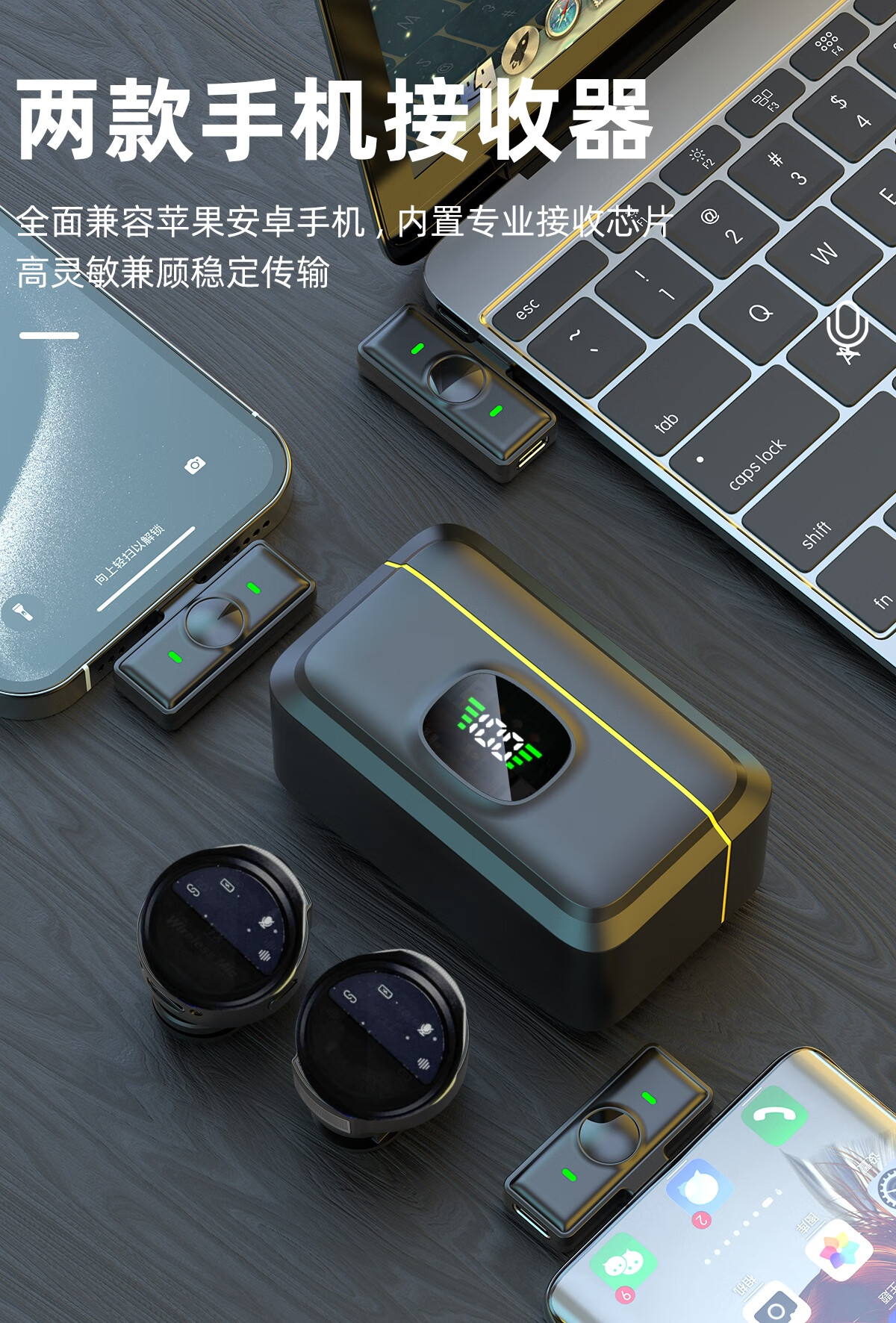 Yingyinda's new 2-mic, 4-harvest multi-platform live broadcast wireless lavalier mic with magnetic noise reduction, suitable for Apple, Android, mobile phones and computers, multi-camera radio, universal charging compartment for charging while using, 2 mics and 2 mics (two mobile phones for live broadcast). Please note the mobile phone interface when placing an order.