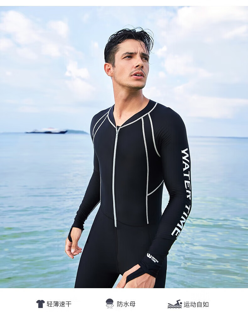 WATERTIME wetsuit men's jellyfish suit snorkeling suit sun protection waterproof mother cold one-piece long-sleeved swimsuit swimming surfing equipment black S (height 160-165 weight 50-55kg)