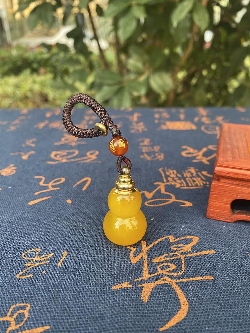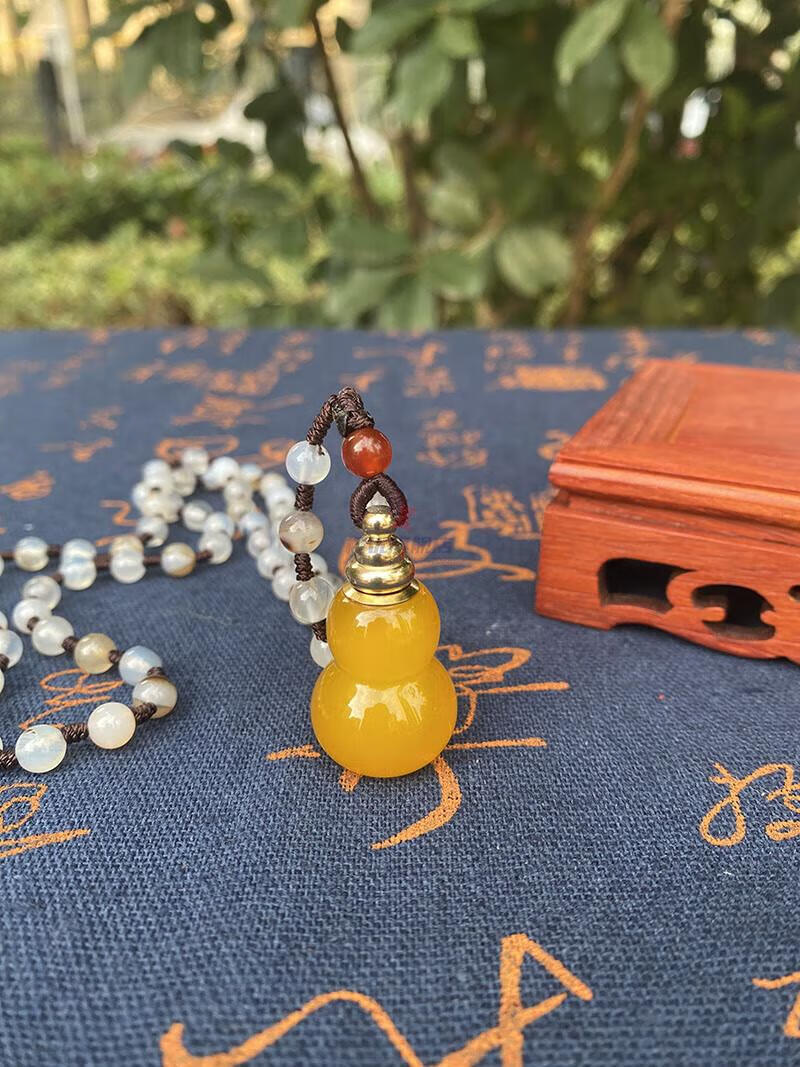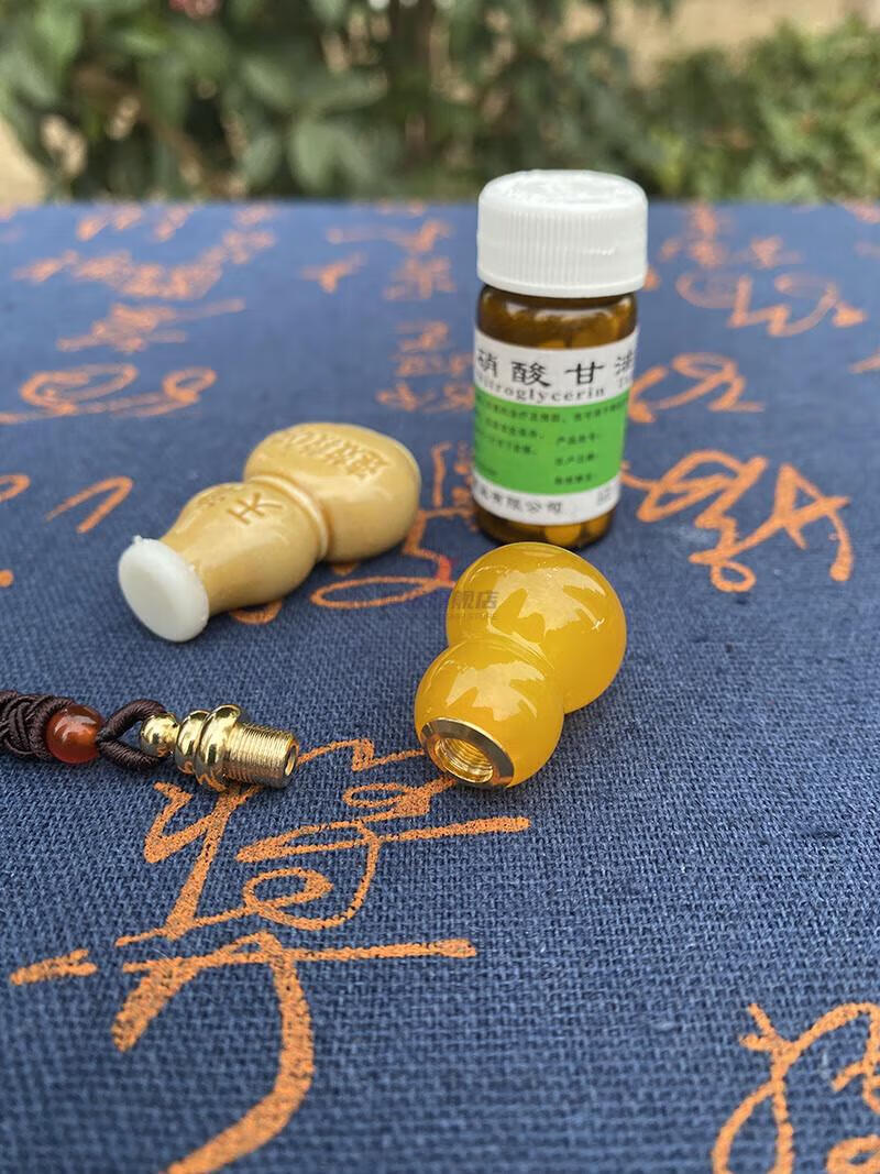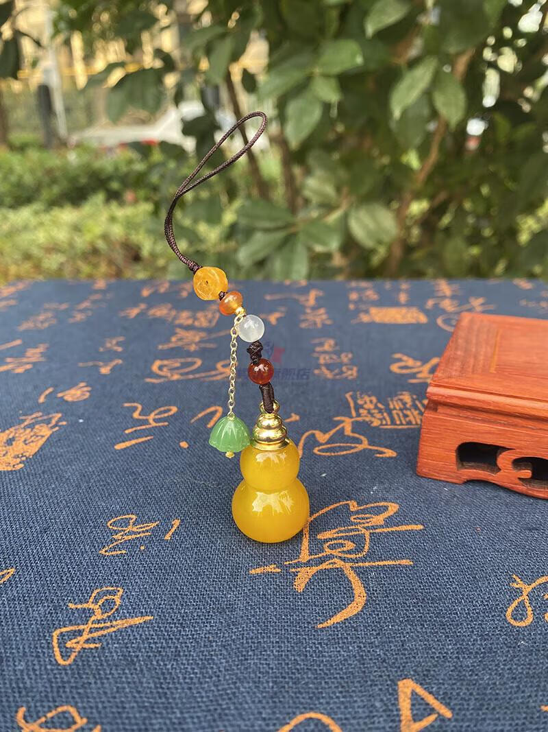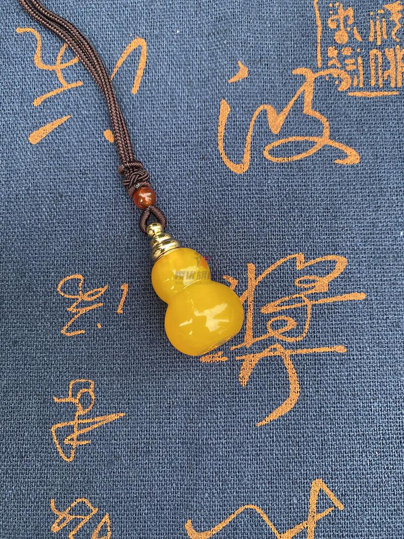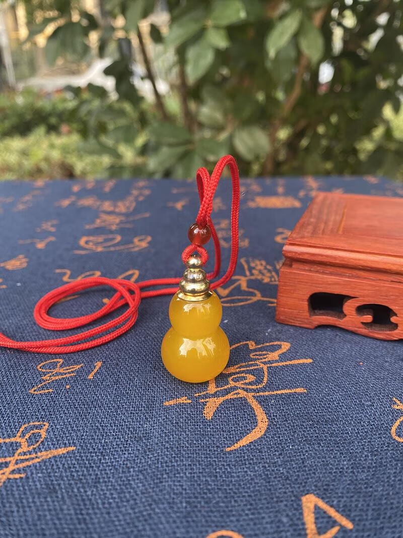 Yingyou natural jade hollow pendant can be opened to hold quick-acting heart-saving pills, cinnabar mobile phone chain, small medicine box, bottle hanging neck piece, yellow agate gourd bead chain style
