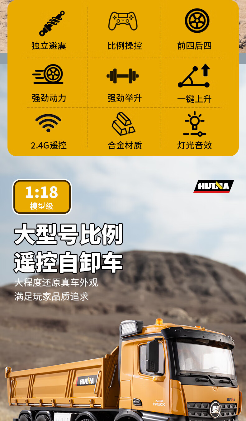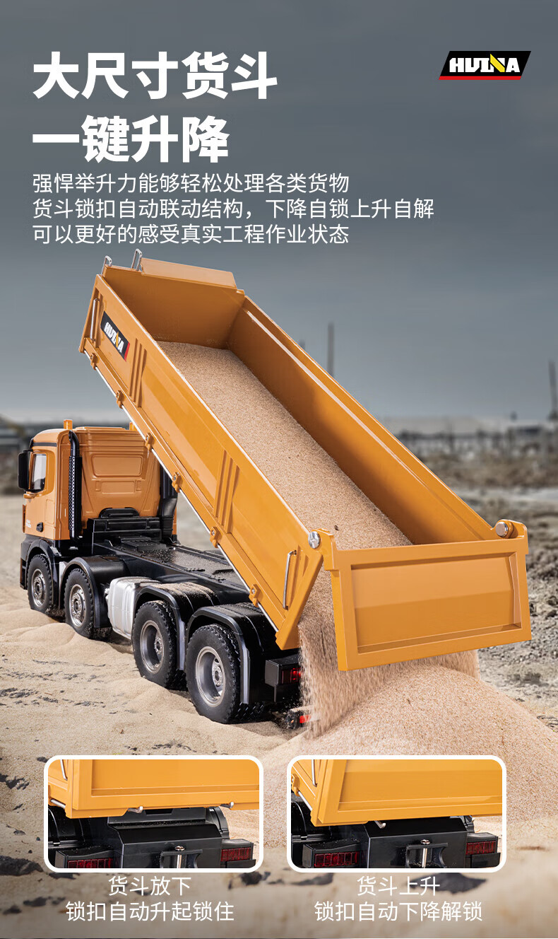 Remote control engineering dump truck toy dump truck eight-wheel heavy alloy truck truck gift for children aged 6-8-14 years old